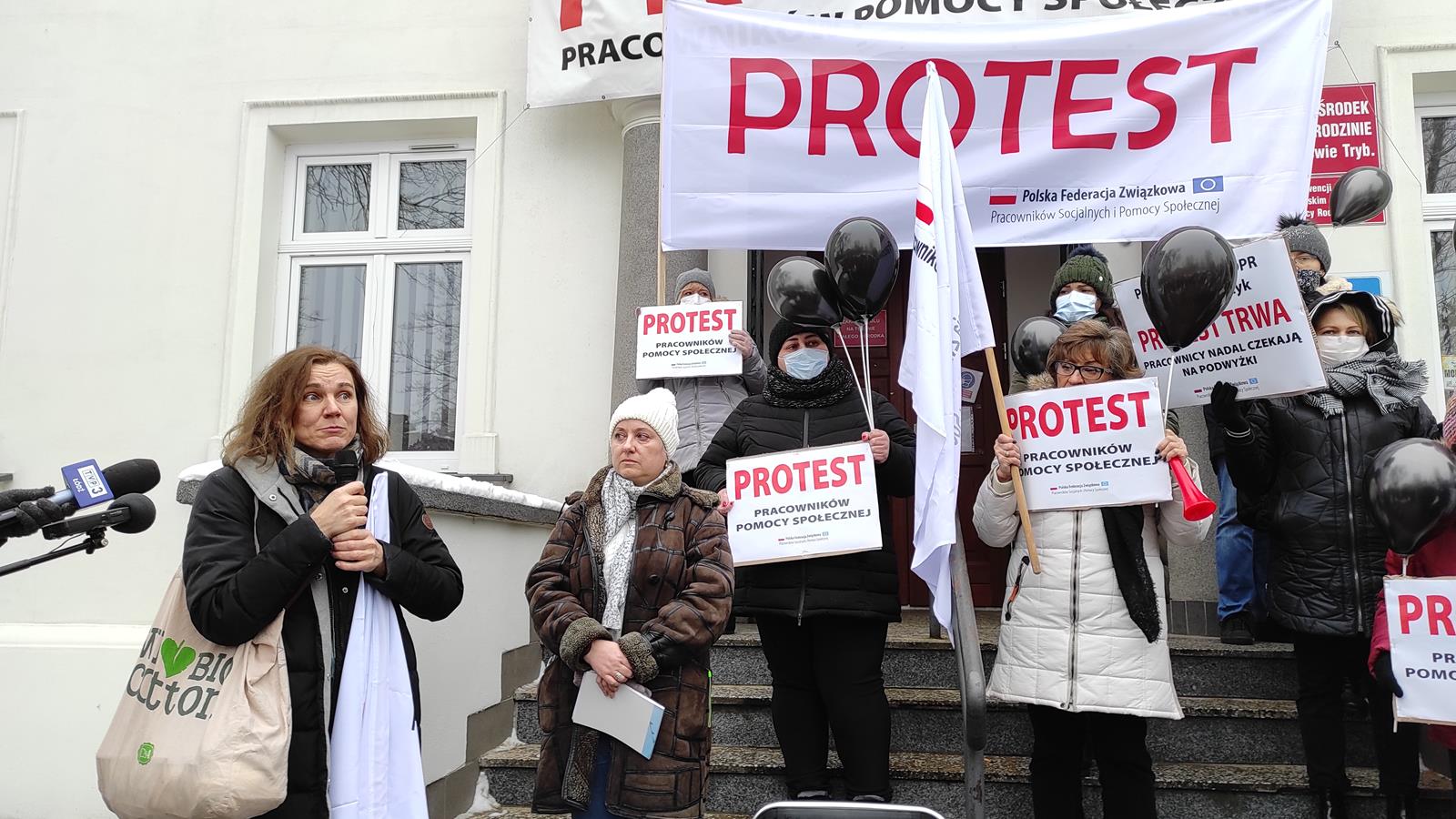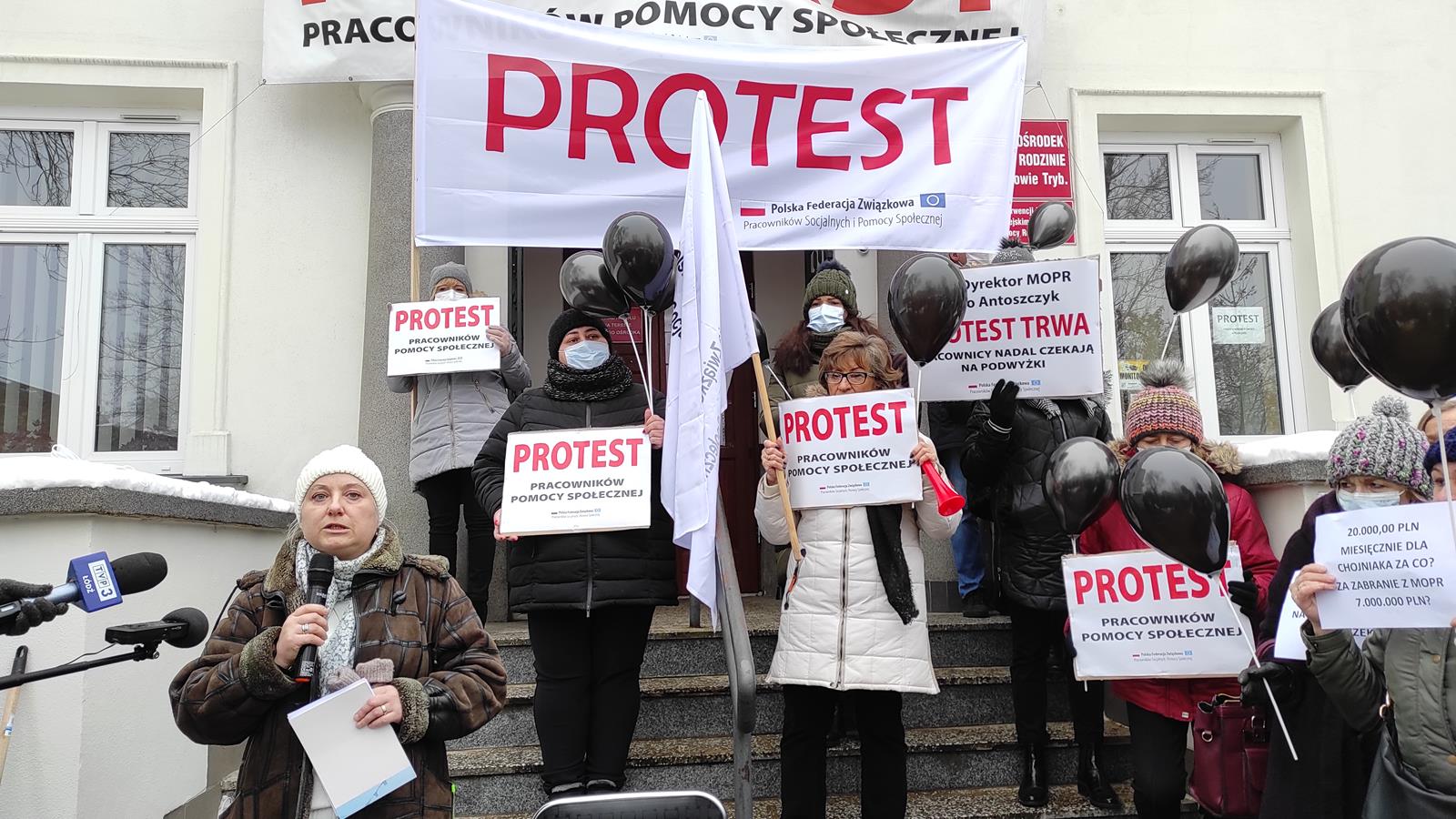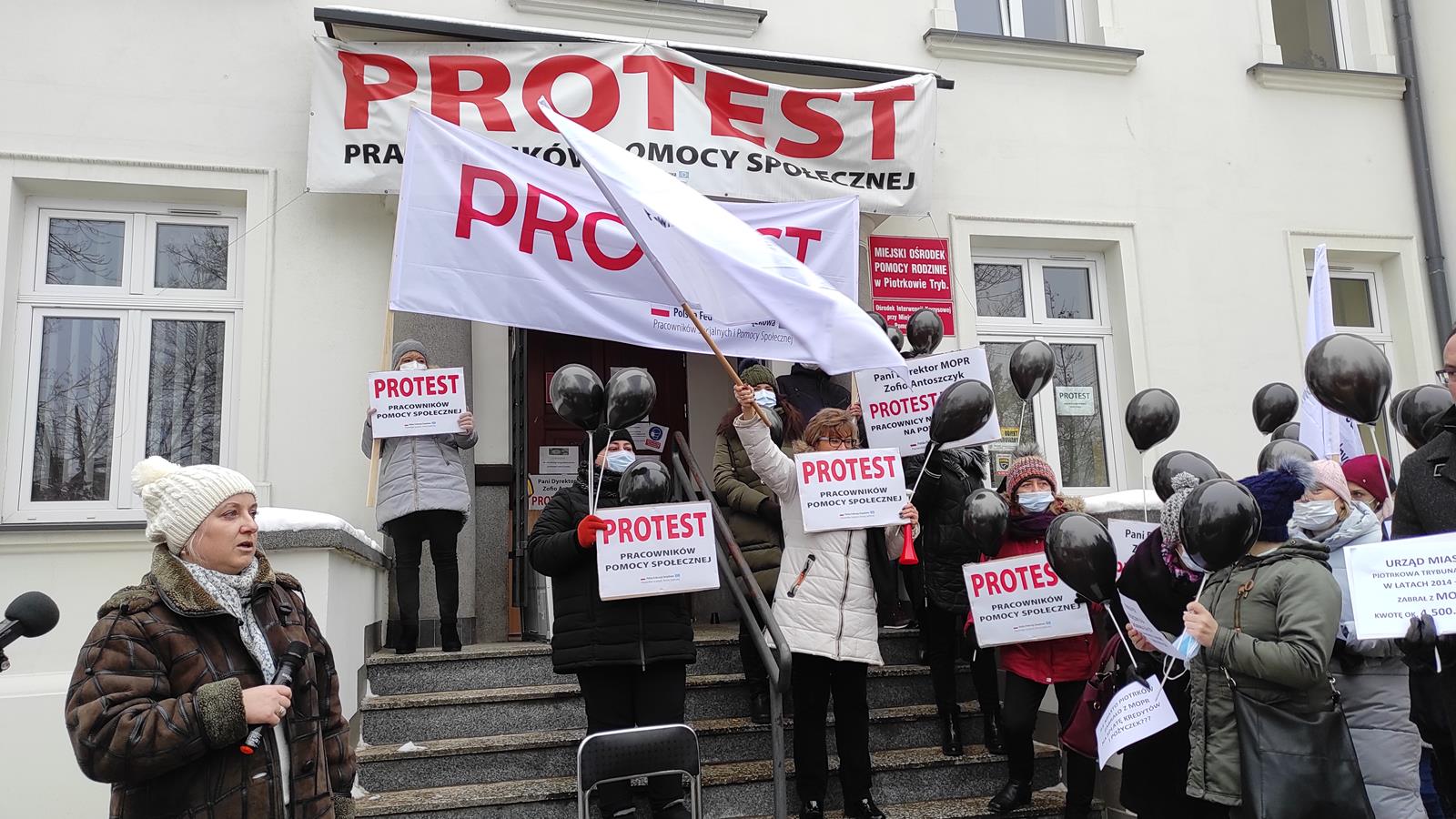 Mają dość pracy za głodowe ich zdaniem pensje, dlatego przystąpili dziś (14.12) do strajku ostrzegawczego. Pracownicy socjalni odeszli od swoich biurek by walczyć o podwyżki w wysokości 600 złotych dla każdego pracownika. – Walczymy o godną pensję nie tylko dla siebie, ale i dla każdego pracownika. My zrobimy wywiad środowiskowy, ale ktoś musi wydrukować decyzję czy wypłacić pieniądze. – mówi Ewa Kłaniecka, przewodnicząca związku zawodowego w piotrkowskim MOPR.