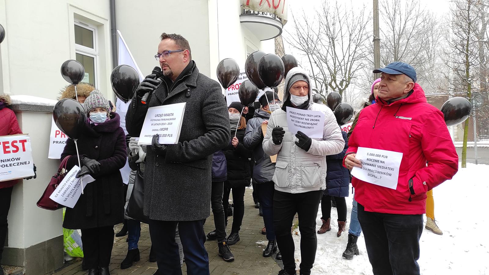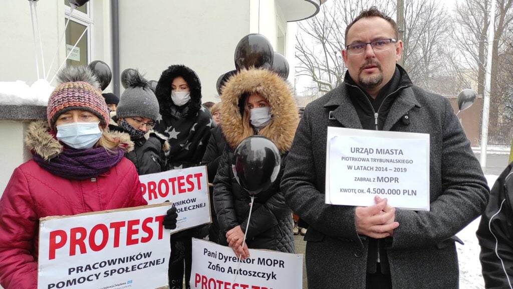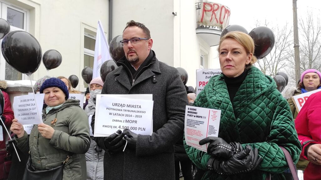 – Czytam że prezydent miasta Krzysztof Chojniak zarabia 20 tys. zł miesięcznie. Moim zdaniem takie stawki dla prezydenta miasta w którym ludzie którzy są na pierwszej linii frontu walki z biedą, walki z epidemią, i ludzie zarabiają 3 tysiące a on 20, to jest po prostu plucie ludziom w twarz. W związku z tym, uważam, że tak naprawdę pracownicy tego ośrodka, którzy chcą podwyżki 600 złotych, to jest w gruncie rzeczy przysługa dla miasta, że tak małych podwyżek chcą. Przecież 600 zł dzisiaj to są gorsze. Co to jest to 600 złotych, skoro ceny rosną 7-10%, a dla osób o najniższych dochodach nawet więcej. Cóż to jest za sytuacja, w której klienci tego ośrodka, często zarabiają więcej od pracowników. To kto powinien być czyim klientem? Właściwie wkrótce dojdzie do sytuacji, że pracownicy socjalni będą klientami samych siebie. Pracownicy socjalni, będą obsługiwać pracowników socjalnych. To jest jakaś kpina z polskiego państwa. Według mnie, to jest to plucie ludziom twarz, bo jeżeli samorządowcy podnieśli sobie o 60%, to również tyle należy się pracownikom socjalnym. – grzmiał Piotr Szumlewicz, przewodniczący Związku Zawodowego Związkowa Alternatywa do którego należą pracownicy piotrkowskiego MOPR.