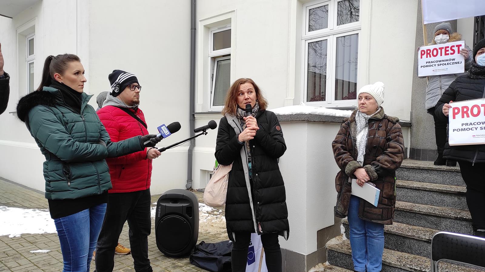 – Od 2019 roku jesteśmy w sporze zbiorowym z pracodawcą. Dlaczego on powstał? Dlatego że Urząd Miasta wyróżnił jedną jednostkę pomocową w czerwcu 2019 roku, i przyznał tym pracownikom podwyżki. Dobrze że przyznano, bo ludzie ciężko pracują a mało zarabiają. My zwróciliśmy się w czerwcu do pani dyrektor z prośbą o podwyżki za naszych pracowników. Były rozmowy, były nadzieje, jednak we wrześniu 2019 roku odmówiono nam jakichkolwiek podwyżek. Nie dano żadnej propozycji rozwiązania, dlatego podjęliśmy decyzję o rozpoczęciu sporu zbiorowego, w którym niestety jesteśmy to dzisiaj. Niestety, ponieważ nikt z nami nie podejmuje dialogów. Odbywają się spotkania, jednak nie jest to dialog. Słyszymy monotonnie, że nie ma pieniędzy. Ciągle jest to nam powtarzane, a wiemy że sytuacja wygląda zupełnie inaczej. Jeżeli nasze miasto jest tak biedne jak o tym się mówi, jak nam się sygnalizuje, to dlaczego nasi radni wykorzystali możliwość podniesienia swoich diet o 100% a nie na przykład o 60? Skąd miasto znalazło na to pieniądze? – dopytywała szefowa związku zawodowego. – Są to pytania które nas nurtują, ponieważ my za swoją ciężką pracę mamy niskie płace. Jesteśmy sami w trudnej sytuacji. Czekamy na pomoc, na wsparcie i na podanie propozycji rozwiązania tej trudnej sytuacji.- dodała Ewa Kłaniecka.