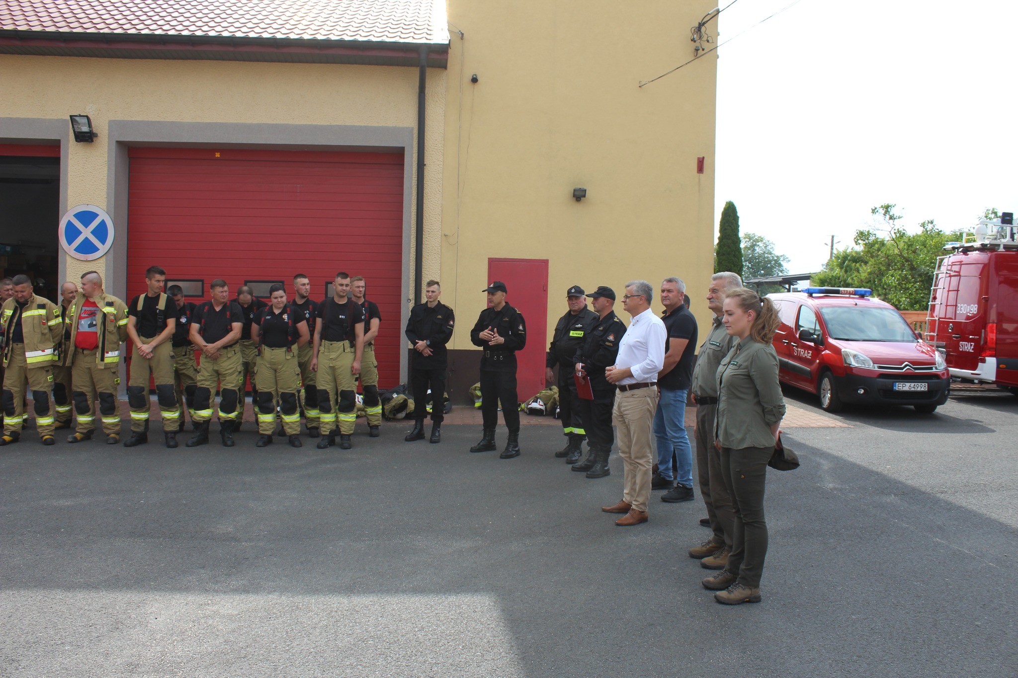 Ćwiczenia obserwowali: Dariusz Magacz – wicestarosta powiatu piotrkowskiego, Krzysztof Kuliński – wójt gminy Grabica oraz przedstawiciele Nadleśnictwa Kolumna.