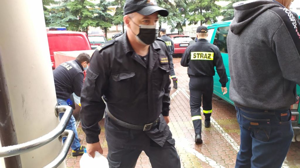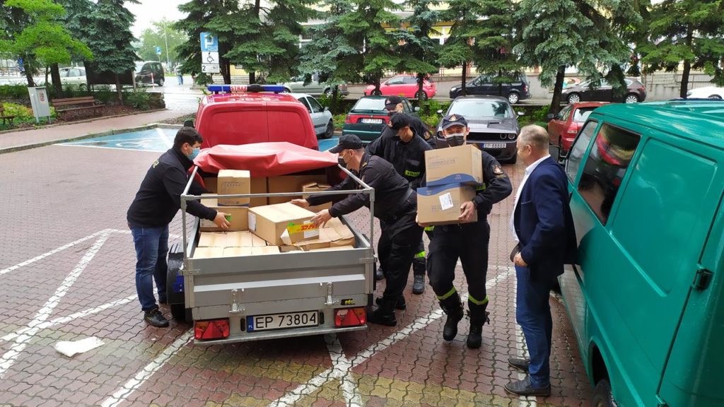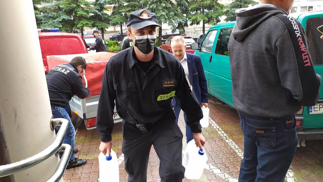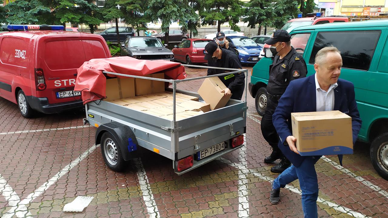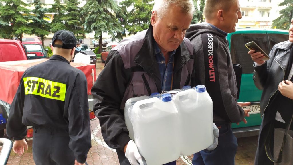 – Zostaliśmy zobligowani do tego by dostarczyć do organizatorów wyborów prezydenckich, czyli do jednostek samorządowych, płynów dezynfekujących, maseczek, przyłbic dla członków Obwodowych Komisji Wyborczych – informuje mł. bryg. Wojciech Pawlikowski oficer prasowy Komendanta Miejskiego PSP w Piotrkowie. – Płyny odebraliśmy w zeszłym tygodniu, dziś dostarczamy je do piotrkowskiego magistratu i do Urzędu Gminy w Aleksandrowie. Reszta urzędów odebrała płyny bezpośrednio z naszej komendy – dodał rzecznik.