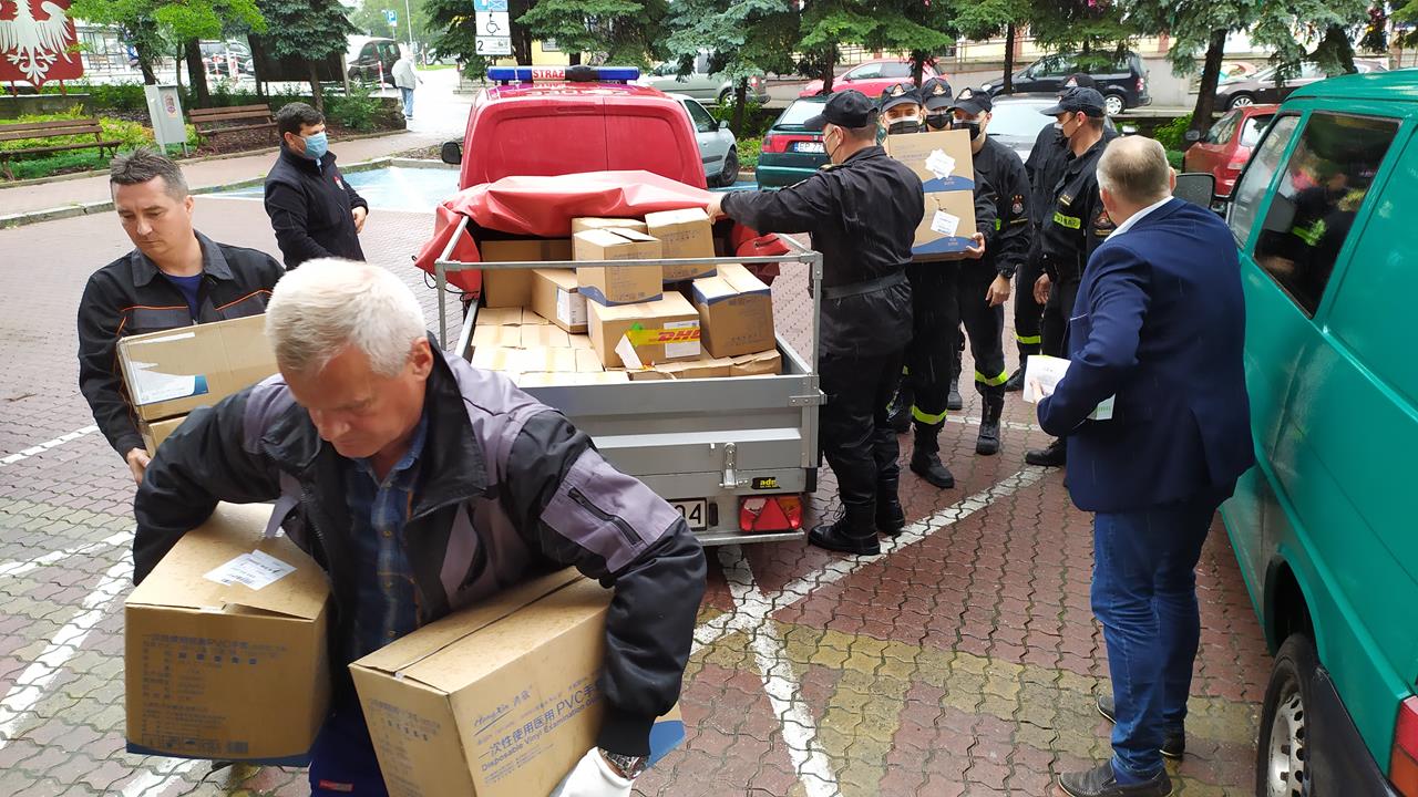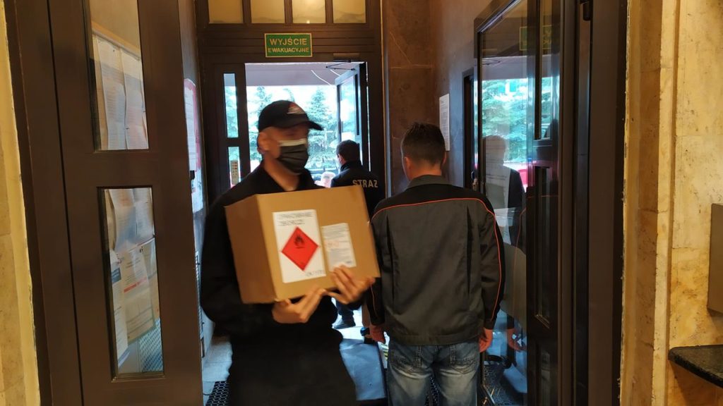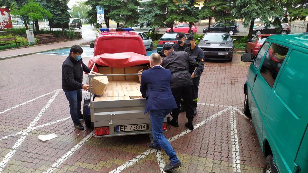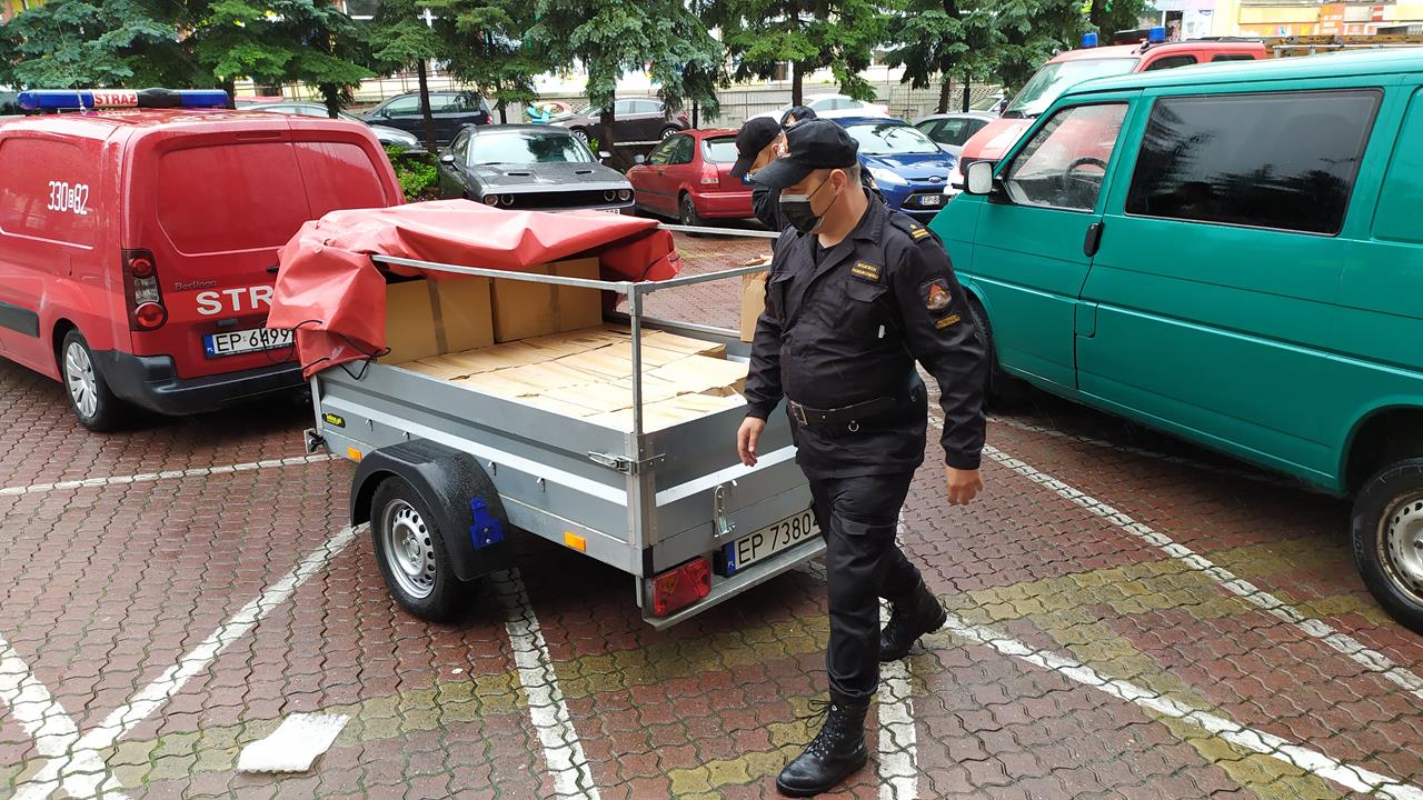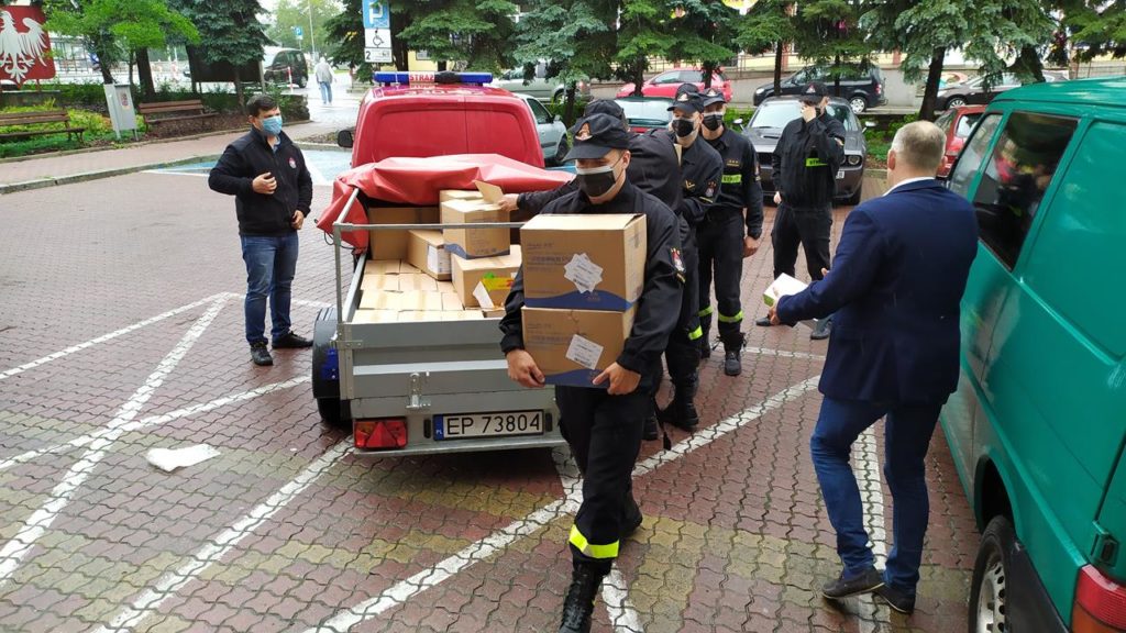 – Zostaliśmy zobligowani do tego by dostarczyć do organizatorów wyborów prezydenckich, czyli do jednostek samorządowych, płynów dezynfekujących, maseczek, przyłbic dla członków Obwodowych Komisji Wyborczych – informuje mł. bryg. Wojciech Pawlikowski oficer prasowy Komendanta Miejskiego PSP w Piotrkowie. – Płyny odebraliśmy w zeszłym tygodniu, dziś dostarczamy je do piotrkowskiego magistratu i do Urzędu Gminy w Aleksandrowie. Reszta urzędów odebrała płyny bezpośrednio z naszej komendy – dodał rzecznik.