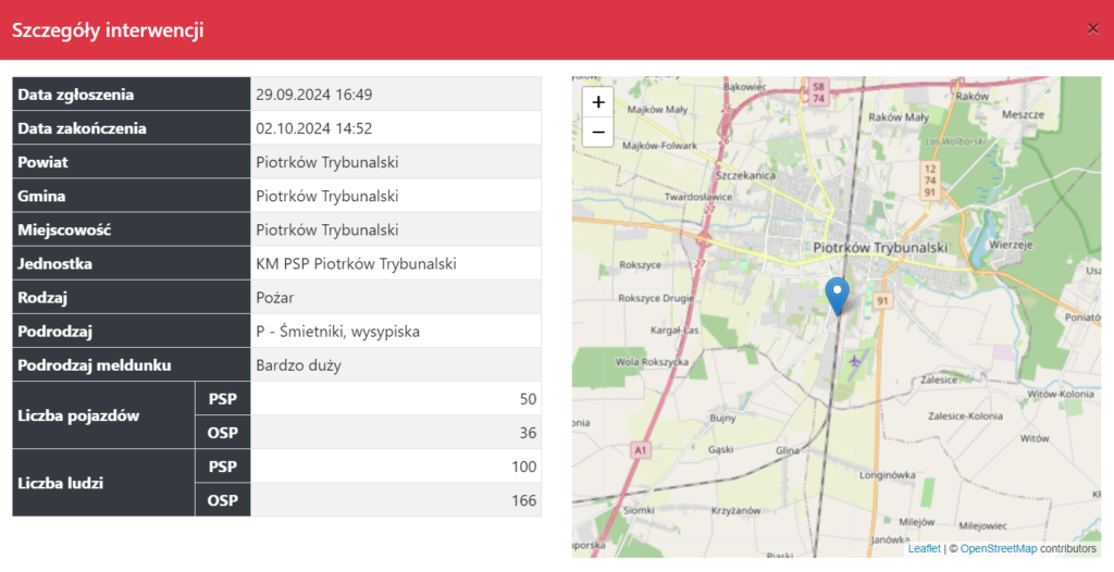W 2024 roku w Piotrkowie Trybunalskim zanotowano 164 pożary. Niewątpliwie najpoważniejszą akcją było gaszenie składowiska odpadów na ulicy Żelaznej. Przypomnijmy, że do zdarzenia doszło pod koniec września. Pożarem objętych było wtedy nawet 6 000 metrów sześciennych składowanych odpadów – głównie plastiku. Z żywiołem walczyło wtedy 86 zastępów strażaków z PSP i OSP, co dało 266 ratowników. Pisaliśmy o tym tutaj i tutaj.