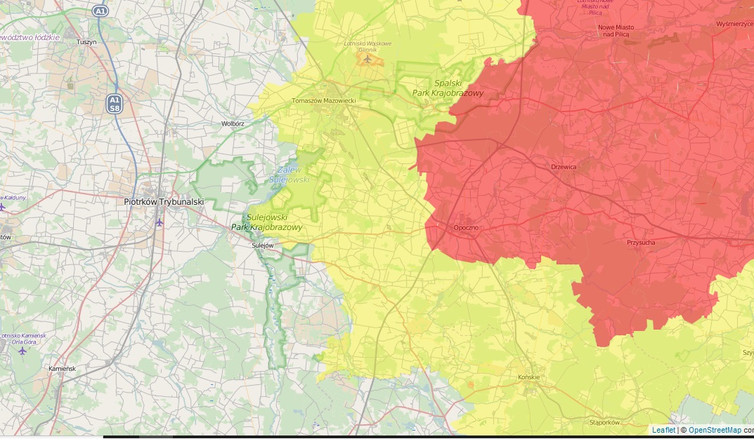 Szczegółowa mapę stref zagrożenia, można zobaczyć TUTAJ.