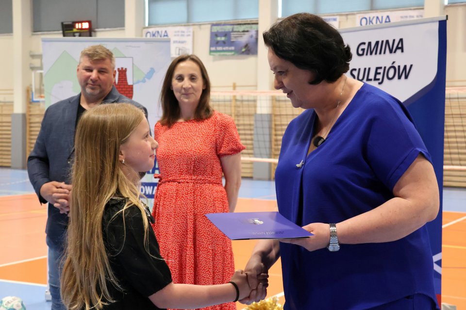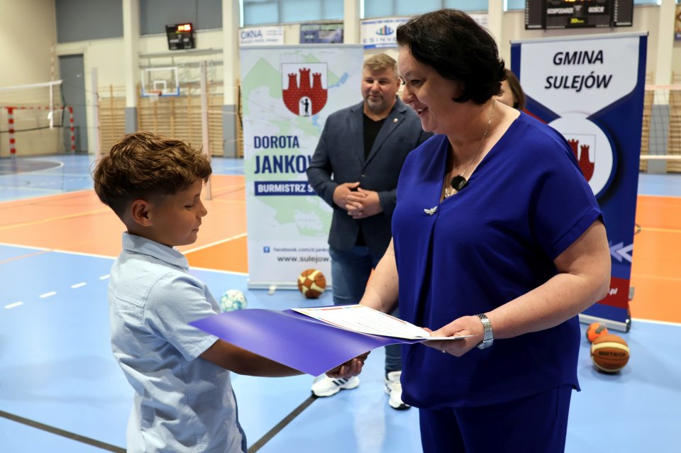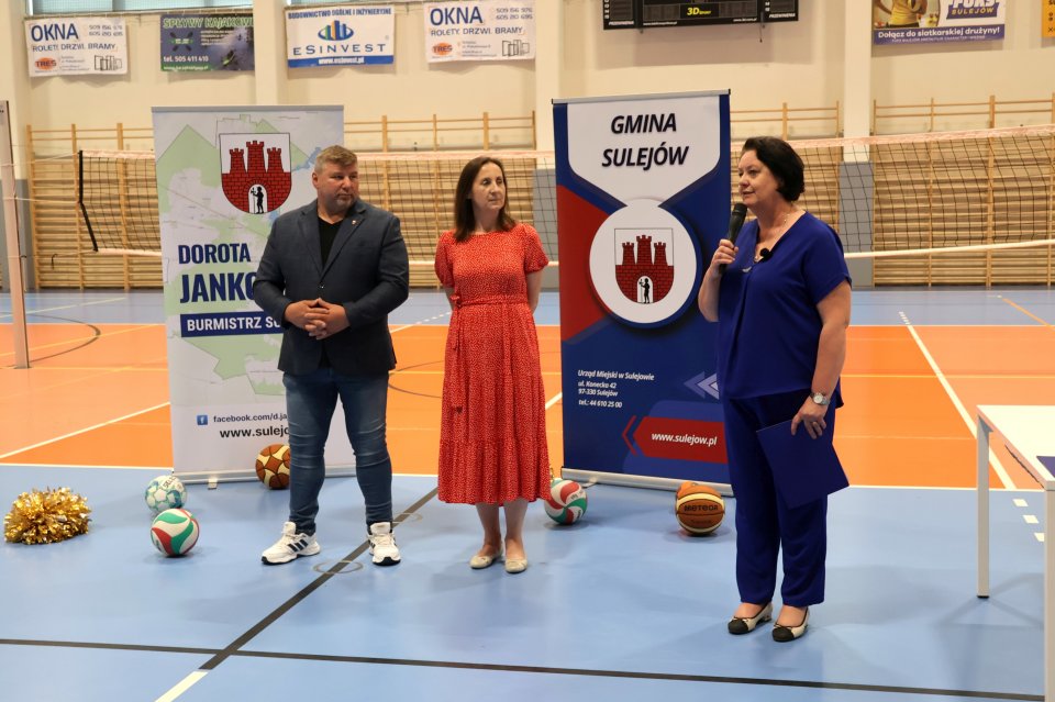 – Od wielu lat, widząc jak się rozwijają nasze młode talenty, widać było, że potrzeba synergii działania. Nie tylko rodziców i opiekunów, nie tylko szkoły, ale i samorządu, który dawałby motywację, dawałby środki, ale też dbał o to, żeby duma narodowa, jaką jest nasza młodzież, miała dobre warunki do rozwoju. Moim celem było to, żeby pobudzić wolę rozwoju, żeby dać jasny dowód na to, że w gminie Sulejów są wyjątkowe talenty sportowe, ale też, żeby tej młodzieży się chciało. To jest w tej chwile nie takie oczywiste, a nam bardzo zależy na tym, żeby się młodzieży chciało, żeby się realizować w sporcie, żeby aktywny tryb życia dawał z kolei motor do rozwoju naszej gminy poprzez osiągnięcia sportowe, bo to też ogromny element promocyjny – powiedziała Dorota Jankowska, burmistrz Sulejowa, której towarzyszyli Rafał Kulbat, przewodniczący Rady Miejskiej w Sulejowie oraz radna Barbara Kamasińska-Jarmuszkiewicz.