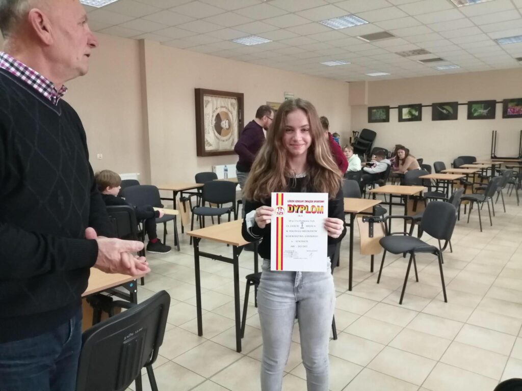 W rozegranych 13 grudnia półfinałach Województwa Łódzkiego w szachach, zawodnicy „trzynastki” zdobyli I miejsce, i będą reprezentować nasze miasto w finale wojewódzkim, który odbędzie się 17 grudnia w Zgierzu. Zwycięska drużyna w składzie: Daria Nowak, Damian Góra, Maks Olczyk oraz Piotr Michalski, wygrała wszystkie swoje pojedynki, tylko raz przegrywając i raz remisując na jednej planszy.