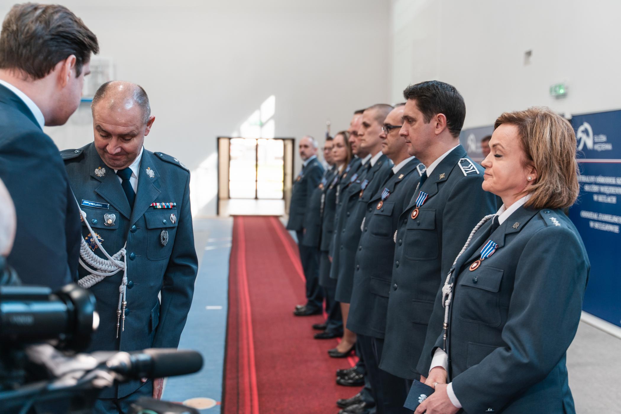 Następnie Dyrektor Generalny Służby Więziennej wraz z dyrektorem okręgowym Służby Więziennej w Łodzi wręczyli obecnym funkcjonariuszom okręgu łódzkiego akty nadania wyższych stopni służbowych. W korpusie oficerskim awansowano dwóch funkcjonariuszy, w korpusie chorążych ośmiu, a w korpusie podoficerskim osiemnastu. Jedenastu funkcjonariuszy otrzymało awans na stopień starszego szeregowego.