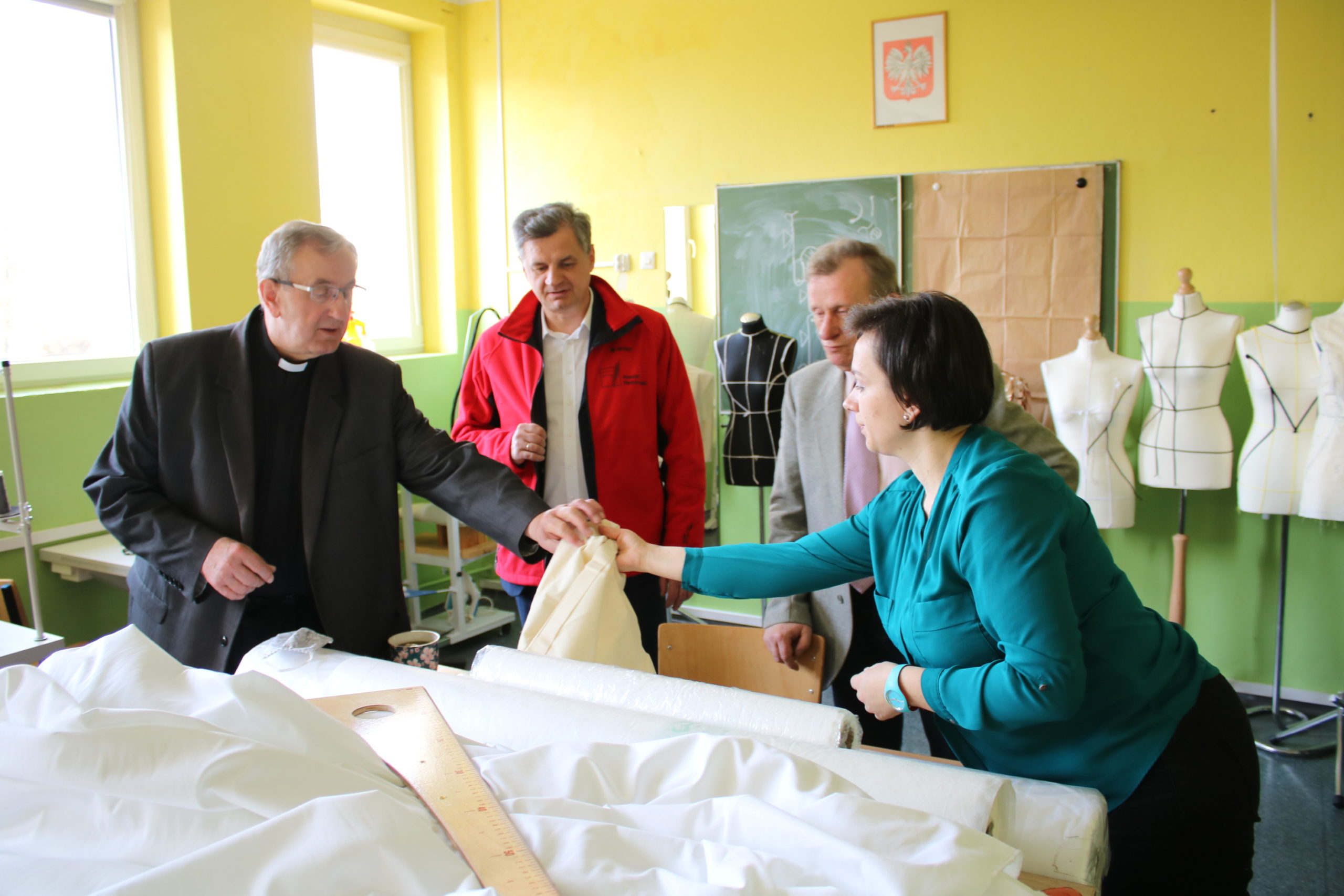 Oddolna inicjatywa dyrektora szkoły Stanisława Bóla i ks. Kazimierza Kurka, w co zaangażowano nauczyciela zawodu krawiec i technik przemysłu mody Renatę Dominowską, właśnie ruszyła – a już jutro – pierwsza partia trafi do Grupy Widzialna Ręka, która zajmie się dystrybucją maseczek. Warto dodać, że materiały potrzebne do uszycia maseczek, przekazała wspomniana Grupa Widzialna Ręka.