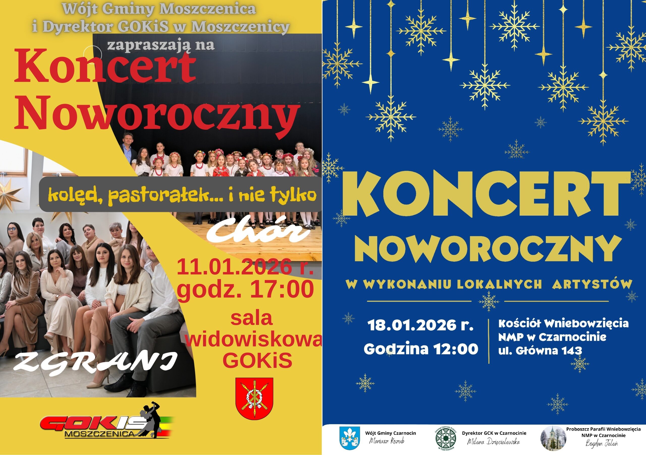 W imieniu organizatorów zapraszamy na koncerty noworoczne w Moszczenicy i Czarnocinie.