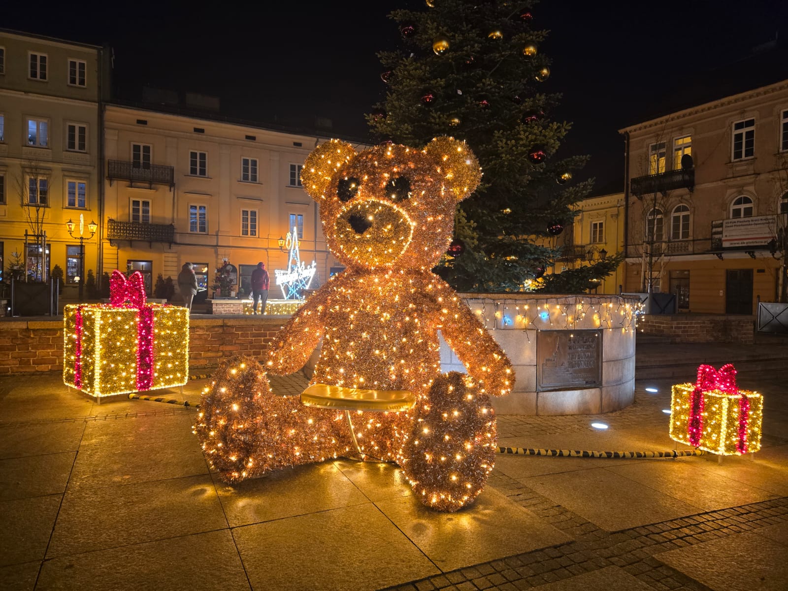Od czwartku serce Piotrkowa bije w rytmie świąt. Na Rynku Trybunalskim pojawił się nowy, wyjątkowy gość – ogromny, świetlny miś. Instalacja błyskawicznie stała się główną atrakcją starówki, przyciągając tłumy spacerowiczów, którzy chcą poczuć magię nadchodzącego Bożego Narodzenia. Obok niego stoi także udekorowana żywa choinka, ale ta, rozbłyśnie dopiero jutro – w Mikołajki.