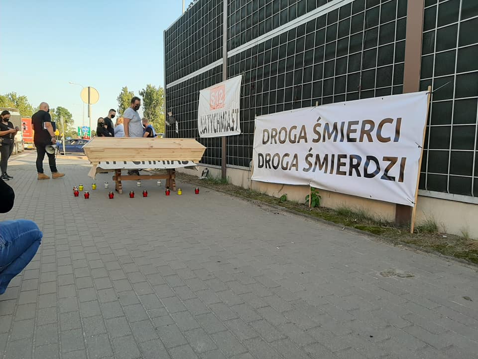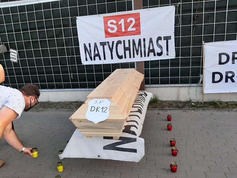 Symbolicznego pogrzebu krajowej „dwunastki” dokonali w poniedziałek (21.09) mieszkańcy i członkowie stowarzyszenia S12 natychmiast. – Dziś kolejna akcja, pogrzeb DK12, zdaje się jednak że jest to pogrzeb wszystkich mieszkańców. Pogrzebanie rozwoju, przyszłości, szans – mówią organizatorzy happeningu.