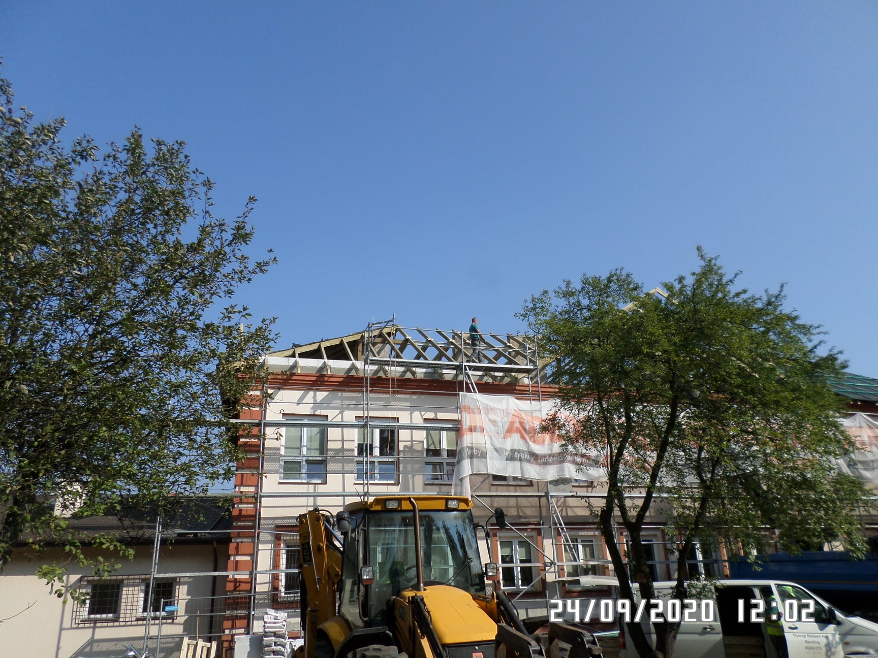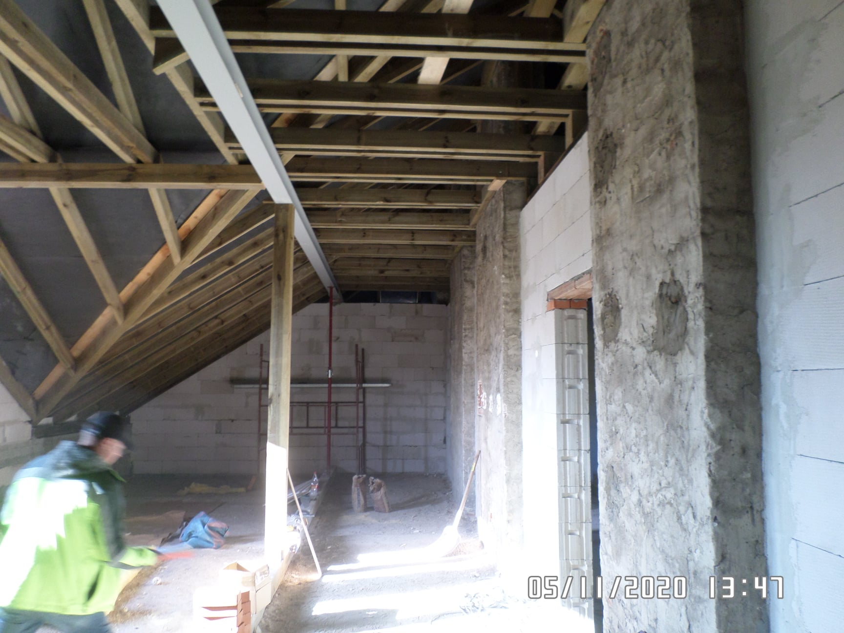 Zakres prac obejmował rozbiórkę istniejącego pokrycia, rozbiórkę części kominów oraz demontaż zużytej konstrukcji dachu. W związku z planowaną adaptację poddasza na cele edukacyjne, podwyższone zostały ścianki kolankowe, wykonane wieńce żelbetowe oraz wymurowane nowe lukarny, które będą doświetlały pomieszczenia poddasza. Ponadto wykonana została nowa konstrukcja dachu, przemurowano i wybudowano nowe kominy ponad połaciami dachowymi, wykonano pokrycie, nowe obróbki blacharskie, rynny i rury spustowe.