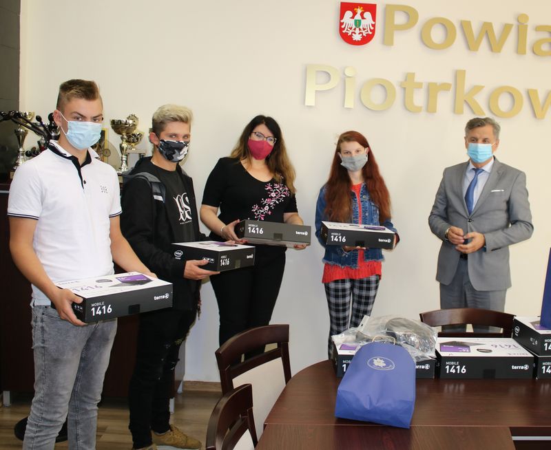 Samorząd Powiatu Piotrkowskiego dokonał zakupu sprzętu komputerowego niezbędnego do prowadzenia zdalnych zajęć lekcyjnych. Laptopty oraz modemy umożliwiające dostęp do internetu zostały rozdysponowane i przekazane dyrektorom szkół przez wicestarostę Dariusza Magacza.