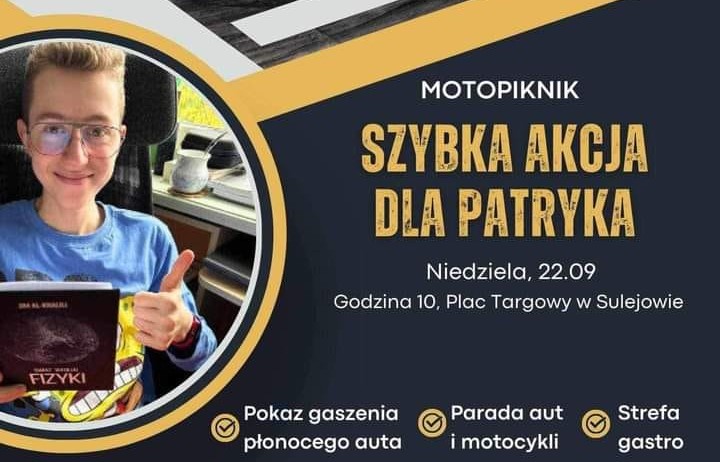 Wielokrotnie na naszym portalu informowaliśmy o chorobie Patryka Wysmyka. Ten młody mieszkaniec Piotrkowa cierpi na neuroblastomę. Aktualnie choroba uderza kolejny raz. To piąty nawrót wyjątkowo złośliwego nowotworu. – Po wielu latach niesamowicie trudnej i wyczerpującej walki z nowotworem mój syn miał wejść w dorosłość zdrowy. Zostawić za sobą okrutną diagnozę. Zapisał się na prawo jazdy, miał rozpocząć przygotowania do matury. Ale neuroblastoma miała dla nas inne plany. Przerażający nowotwór znowu powrócił! – mówi mama Patryka.