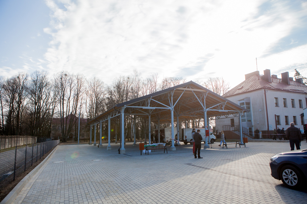 Targowisko posiada 16 dużych stanowisk handlowych pod wiatą oraz możliwość handlu na pozostałym placu. Cały teren jest utwardzony, oświetlony oraz wyposażony w elementy małej architektury takie jak ławki, kosze, tablice informacyjne oraz stojak na rowery. Istnieje możliwość rezerwacji stanowiska. Całkowity koszt realizacji tego przedsięwzięcia to według ceny po przetargowej prawie 1,2 miliona złotych.