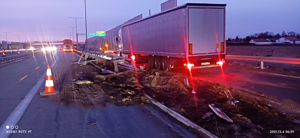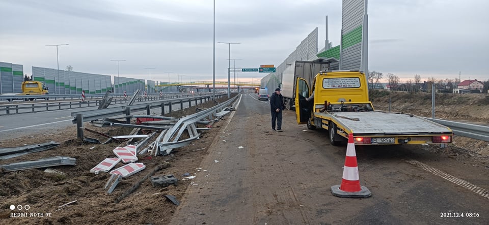 W sobotę wczesnym porankiem ciężarówka wpadła na bariery energochłonne. Uszkodzeniu uległy także ekrany dźwiękochłonne. Do zdarzenia doszło na przebudowywanej autostradzie A1 na zjeździe z węzła Piotrków Trybunalski-Południe w stronę Bełchatowa.