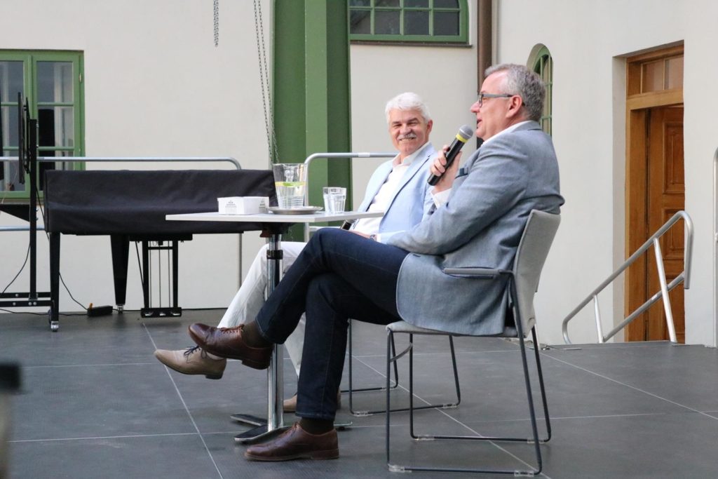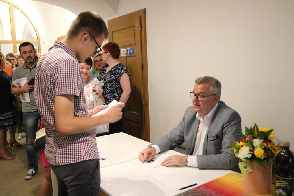 Dziedziniec Centrum Idei Ku Demokracji w Piotrkowie wypełniony był po brzegi. Organizatorzy przygotowali 500 miejsc siedzących a i tak wiele osób musiało stać – tak wyglądało czwartkowe spotkanie z Arturem Andrusem w ramach „Podwieczorku z gwiazdą”.