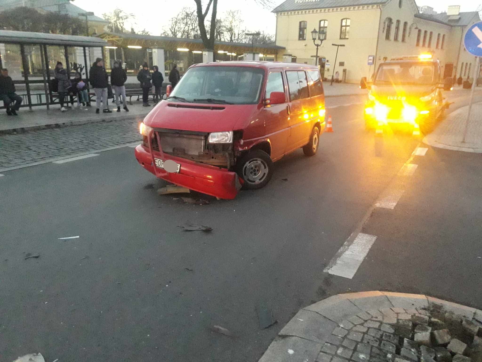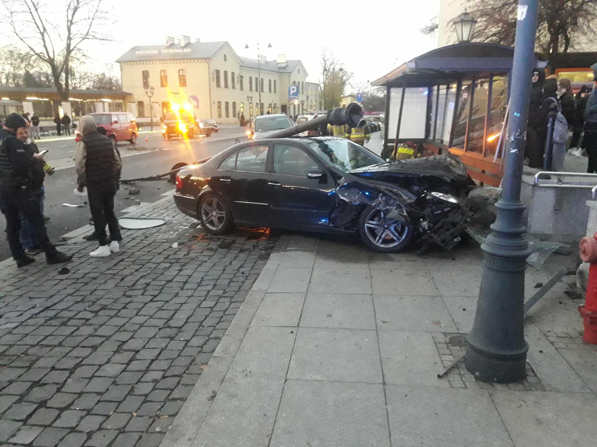 Do wypadku doszło w czwartek (21.11) na ulicy POW w Piotrkowie. W zatłoczony zazwyczaj w godzinach szczytu przystanek MZK, uderzył Mercedes. Pojazd ściął wcześniej latarnię uliczną. – Ze wstępnych informacji od policjantów będących na miejscu wynika, że kierujący Volkswagen T4 jadąc od strony ulicy Wojska Polskiego w kierunku Słowackiego, podczas nieprawidłowo wykonywanego manewru zawracania, doprowadził do zderzenia z Mercedesem. W wyniku uderzenia, osobowy Mercedes wjechał w latarnię, a następnie w przystanek autobusowy. Na szczęście była to jedynie bardzo groźnie wyglądająca kolizja. Nikt nie odniósł obrażeń w wyniku tego zdarzenia. Ratownicy udzielili jedynie pomocy kobiecie, która była świadkiem tego zdarzenia – relacjonuje asp. szt. Izabela Gajewska z KMP w Piotrkowie.