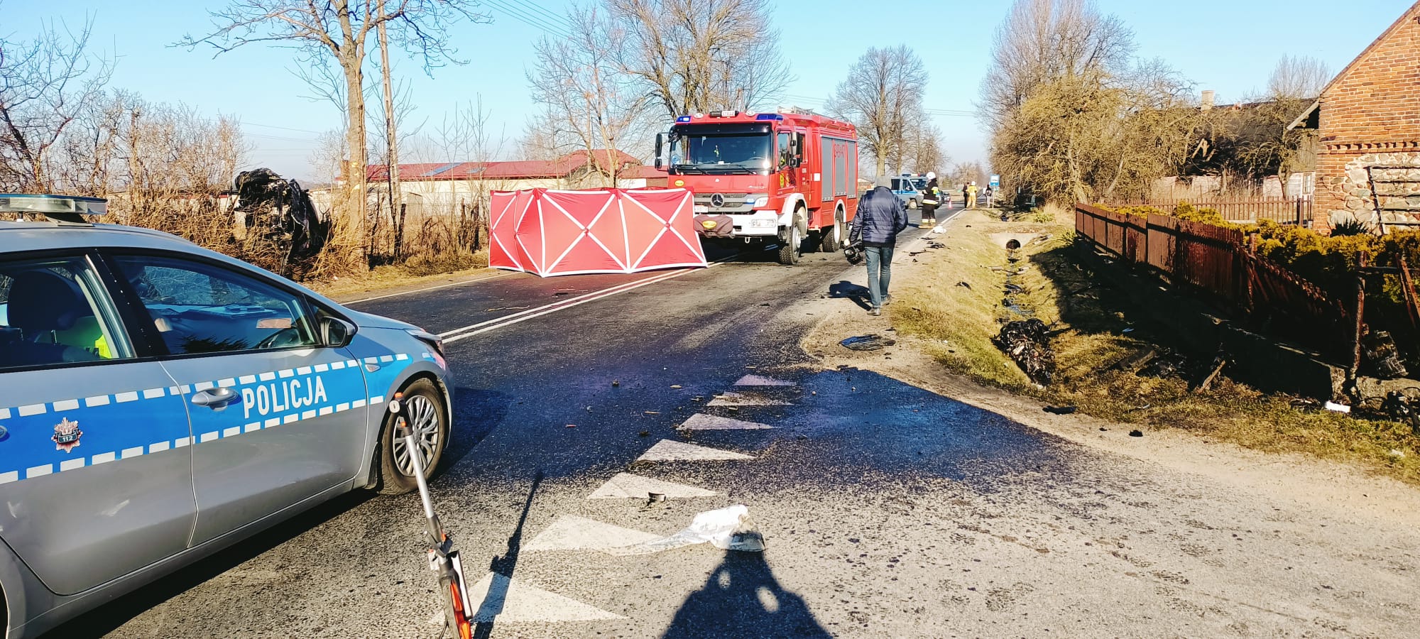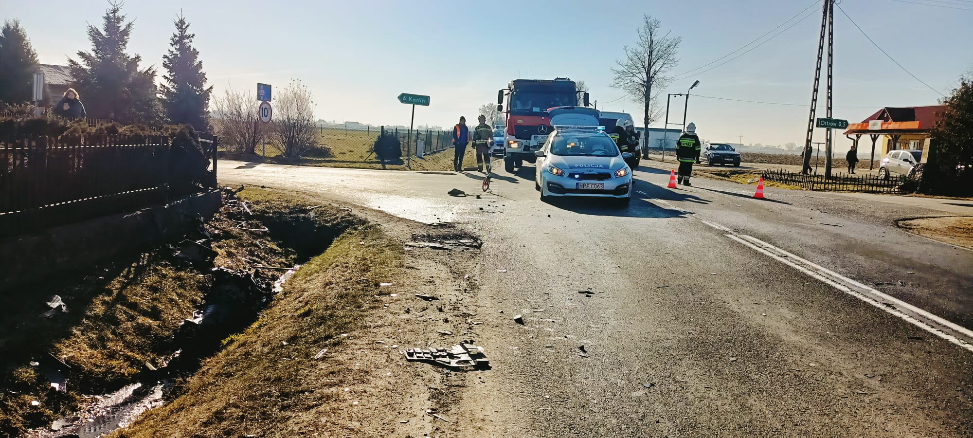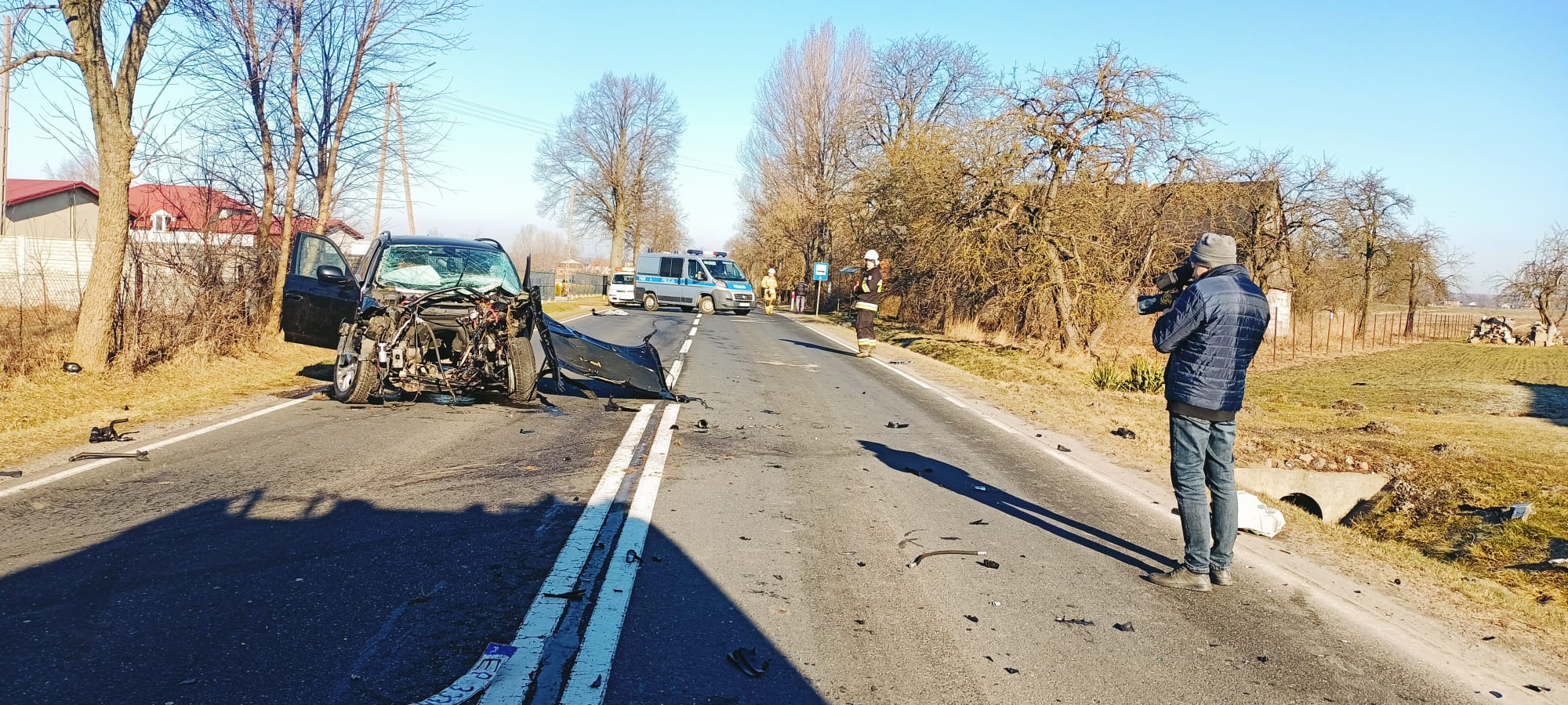 Jak widać na zdjęciach, siła uderzenia była trak duża, że silnik jednego z pojazdów został wyrwany z komory silnika, a drugi pojazd wypadł z drogi i zatrzymał się na drzewie. Na miejscu lądował śmigłowiec LPR.