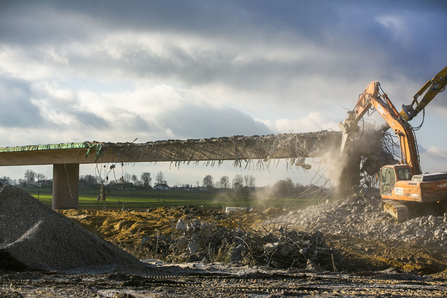 Cały czas trwają prace przy wyburzaniu wiaduktu u zbiegu S8 oraz A1 pod Piotrkowem Trybunalskim. Prace potrwają do poniedziałku do 6 rano. W sobotę dziennikarze mogli zwiedzać plac budowy i przyjrzeć się rozbiórce z bliska.