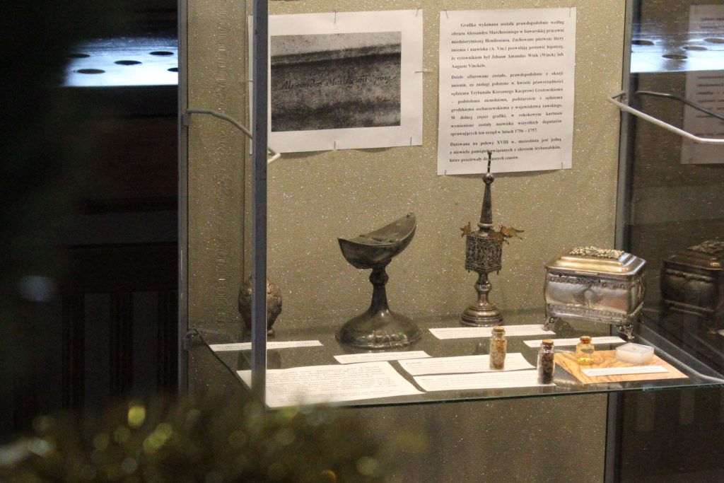 Dzięki uprzejmości Mateusza Danielczyka, pokazany został też srebrzony pojemnik na olejek mirrowy, płatki złota w butelce i samorodki złota, ziarna kadzidła – substancji otrzymywanej z krzewów występujących na terenie Afryki i Bliskiego Wschodu, a także mirra – wonna żywica otrzymywana z drzew i krzewów z rodzaju balsamowców, która do XIV w. była obok złota i drogich kamieni jednym z tradycyjnych podarków, jakie składali sobie królowie. Ponadto na wystawie zobaczyć można pochodzące ze zbiorów Muzeum w Piotrkowie Trybunalskim: kadzielniczkę, XVIII wieczną naviculę – naczynie na kadzidło, szkatułkę – puszkę na kosztowności.