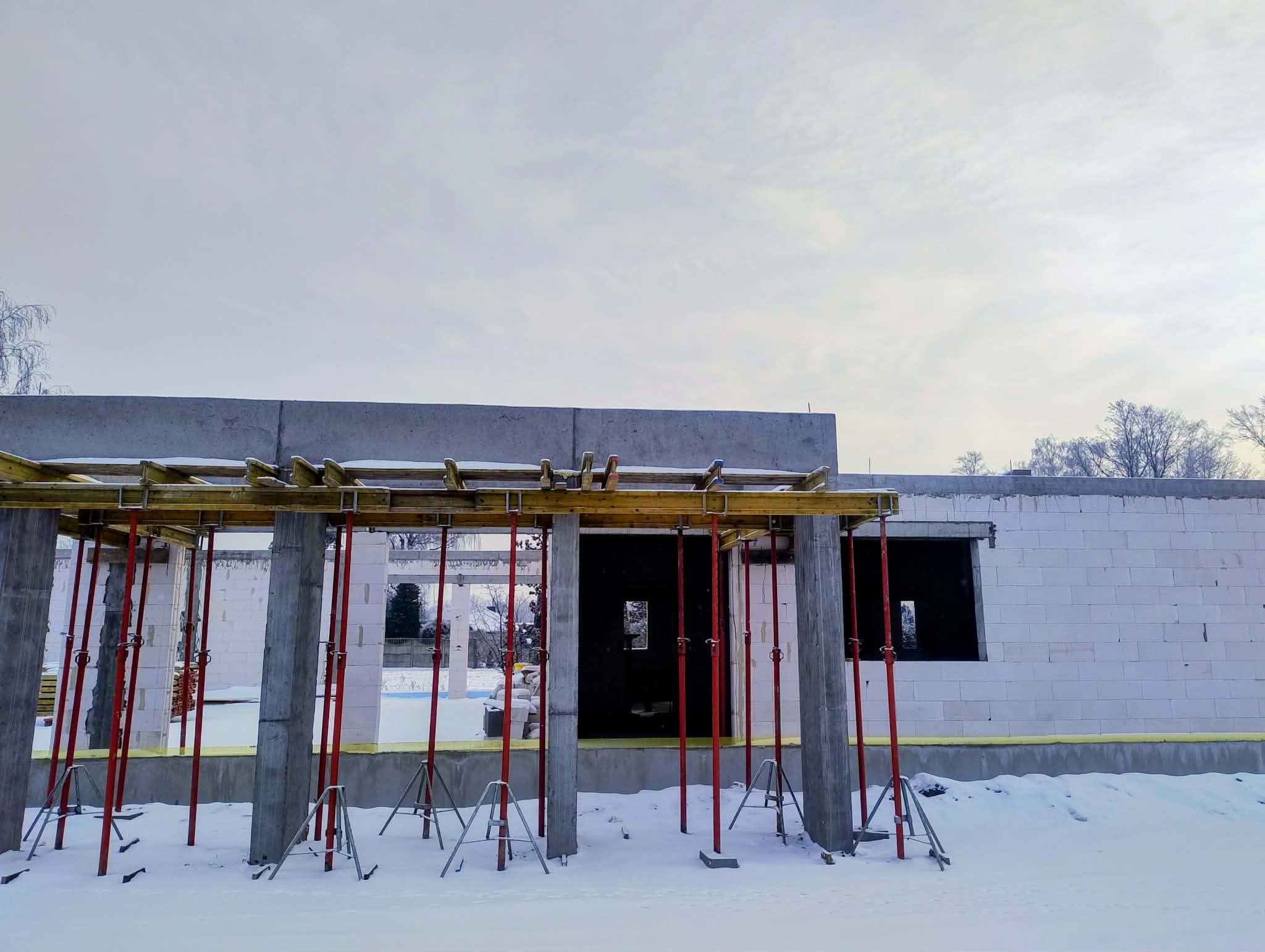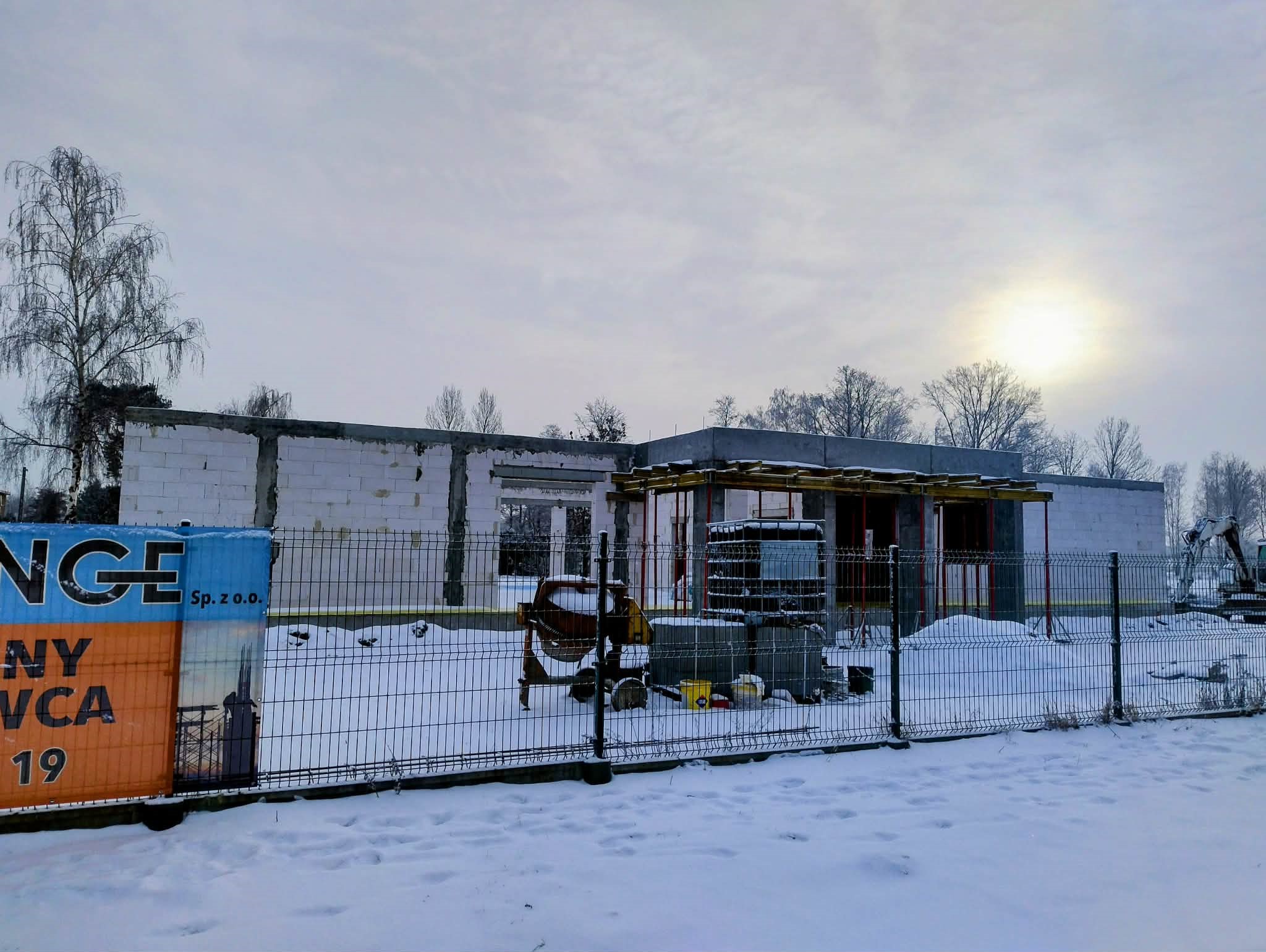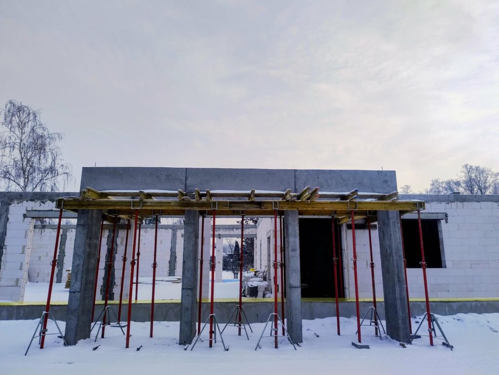 Pierwszy etap prac to podstawy budynku. Wykonano roboty ziemne, wylano fundamenty, wzniesiono ściany konstrukcyjne oraz zamontowano strop.