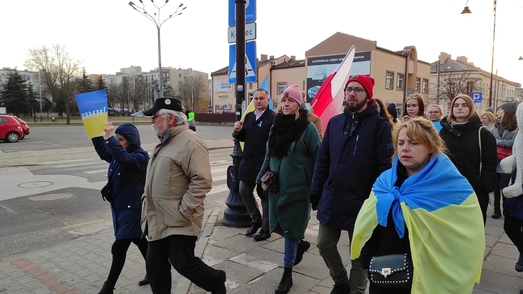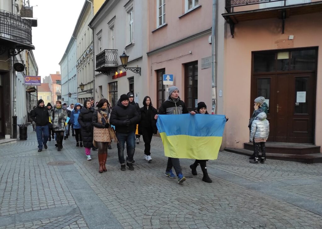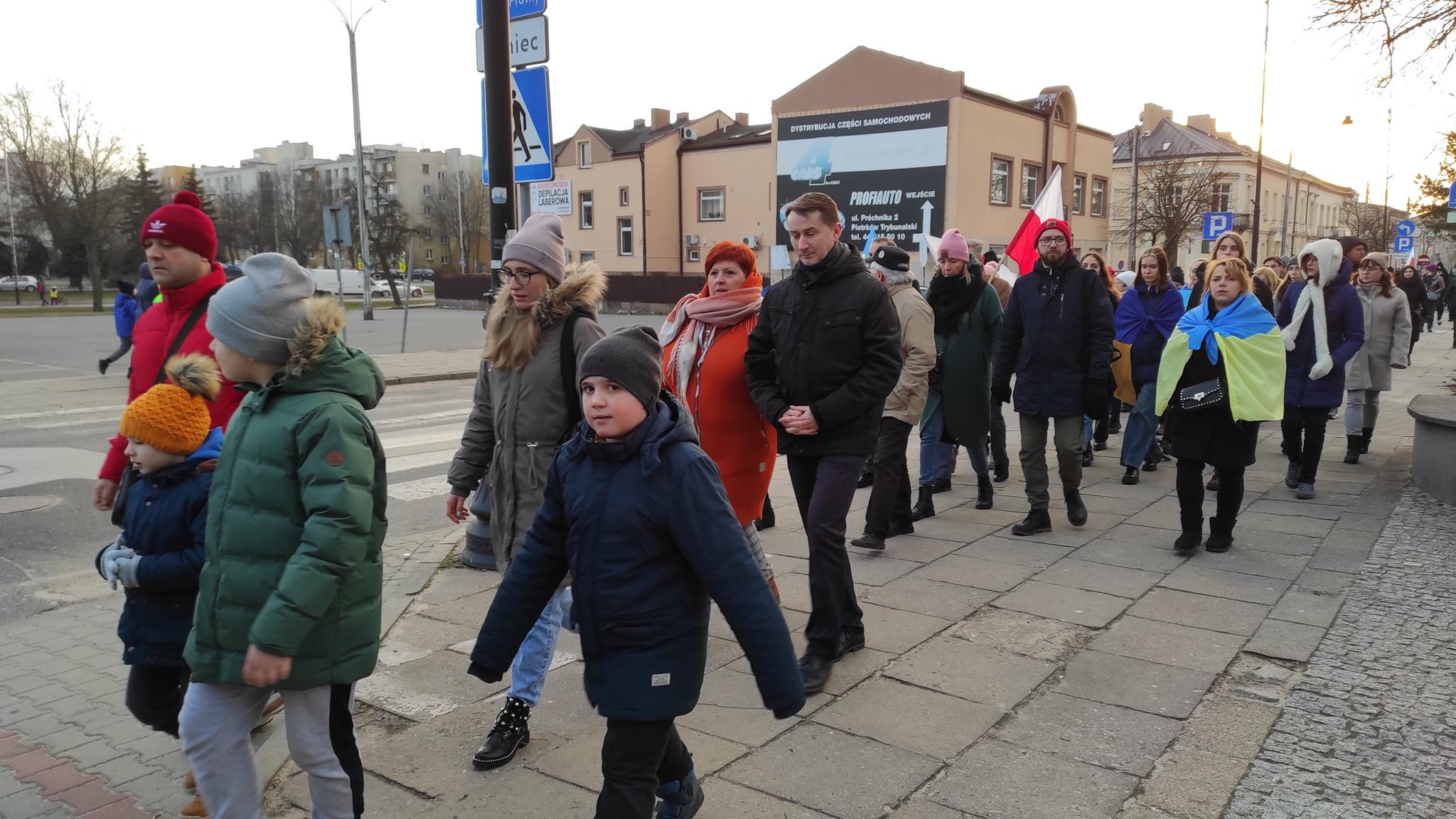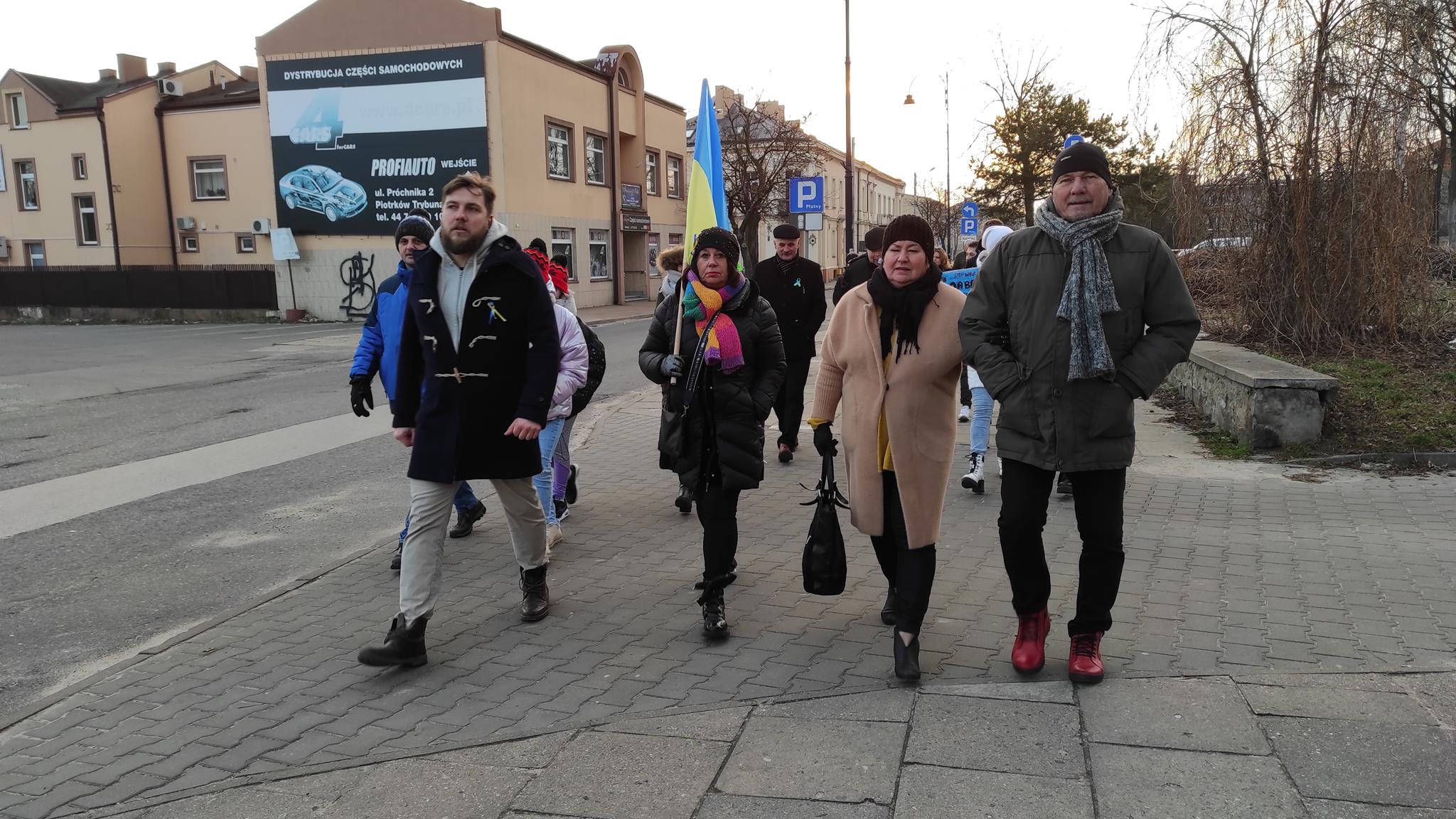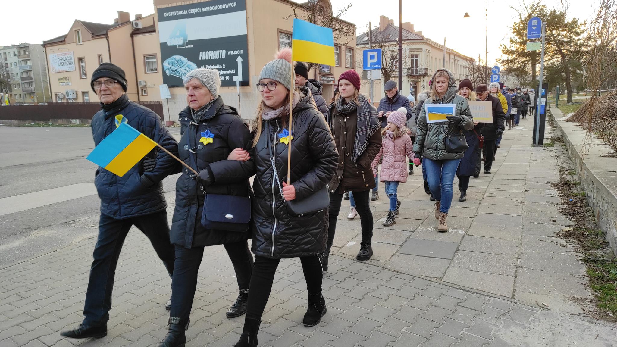 Podobnie jak poprzednio, oprócz Polaków, na starówce byli także Ukraińcy. Wielu z nich przyniosło narodowe flagi i własnoręcznie wykonane transparenty. Po krótkich przemówieniach i odśpiewaniu hymnów Ukrainy i Polski, kilkaset osób które zgromadziło się na Rynku, w milczeniu przeszło ulicą Sieradzką, Słowackiego, Sienkiewicza, Narutowicza i Szewską.