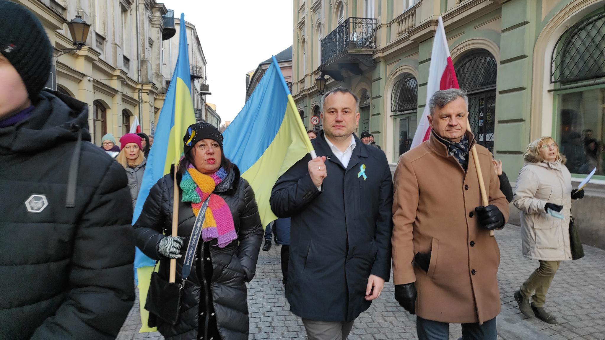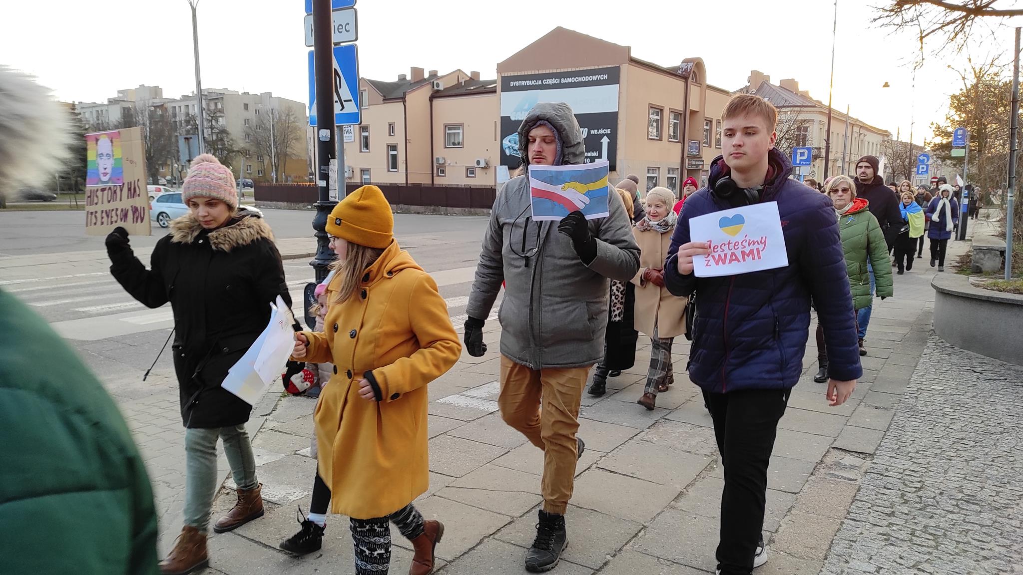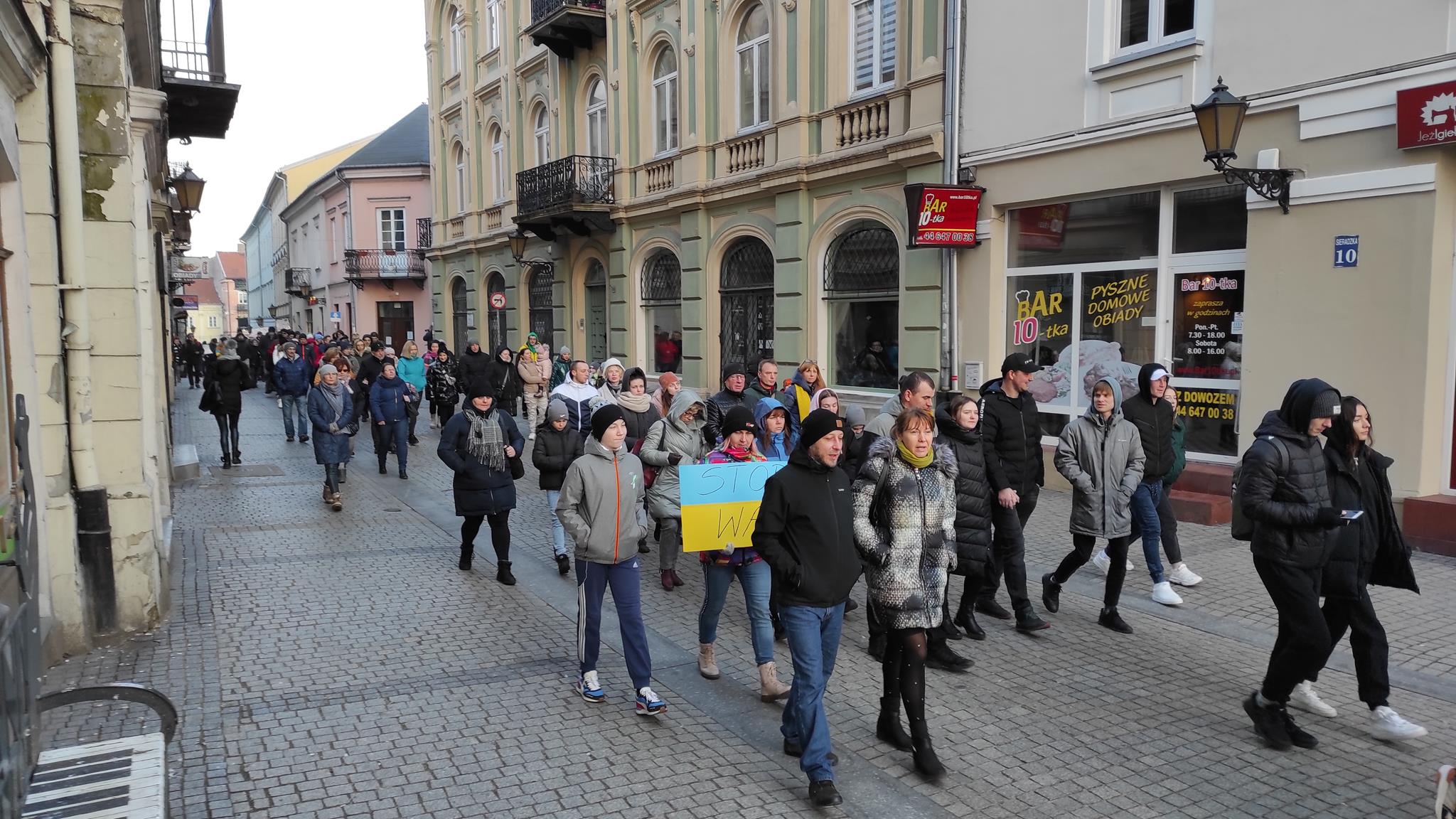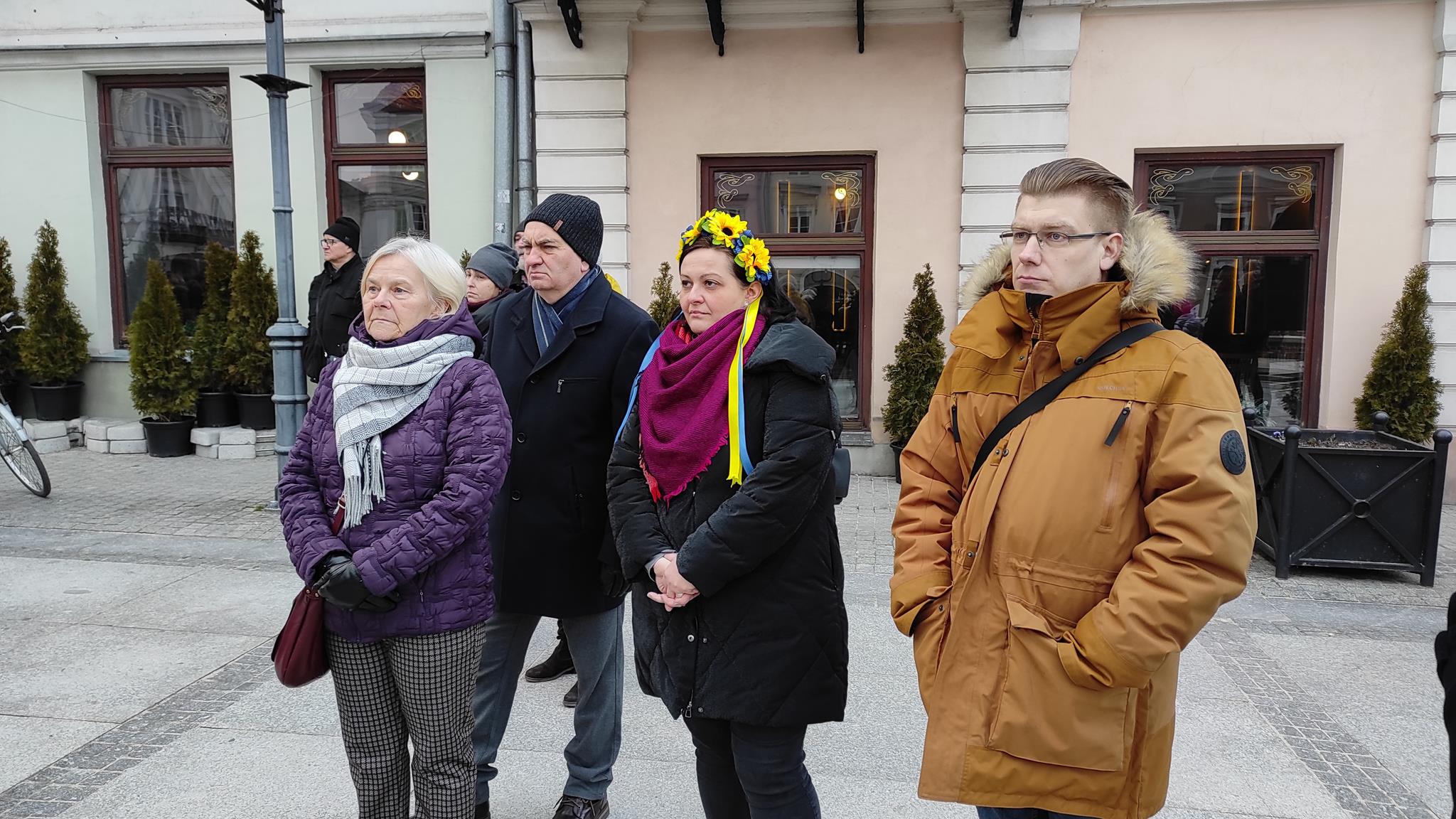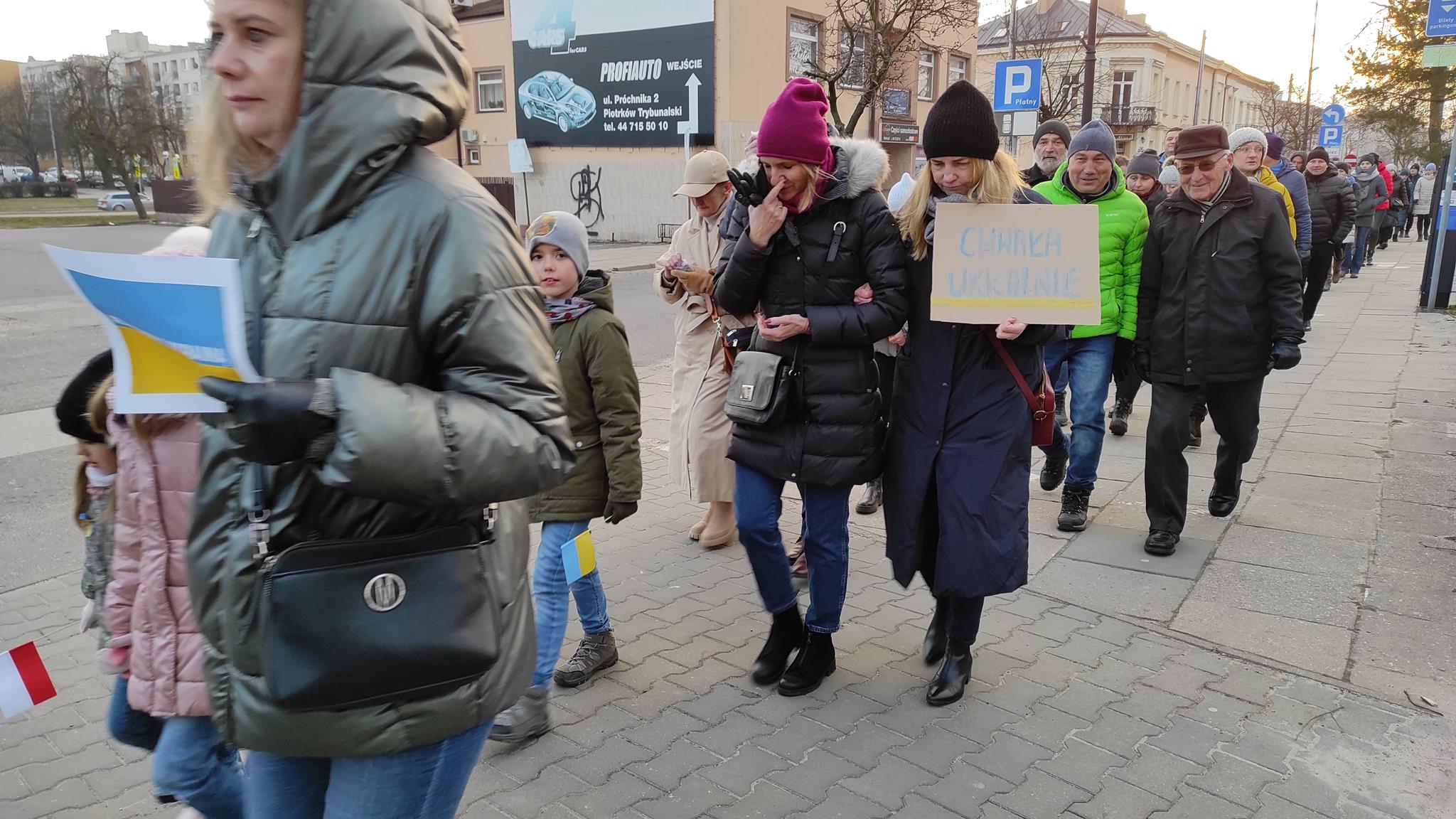 Podobnie jak poprzednio, oprócz Polaków, na starówce byli także Ukraińcy. Wielu z nich przyniosło narodowe flagi i własnoręcznie wykonane transparenty. Po krótkich przemówieniach i odśpiewaniu hymnów Ukrainy i Polski, kilkaset osób które zgromadziło się na Rynku, w milczeniu przeszło ulicą Sieradzką, Słowackiego, Sienkiewicza, Narutowicza i Szewską.