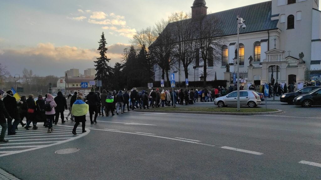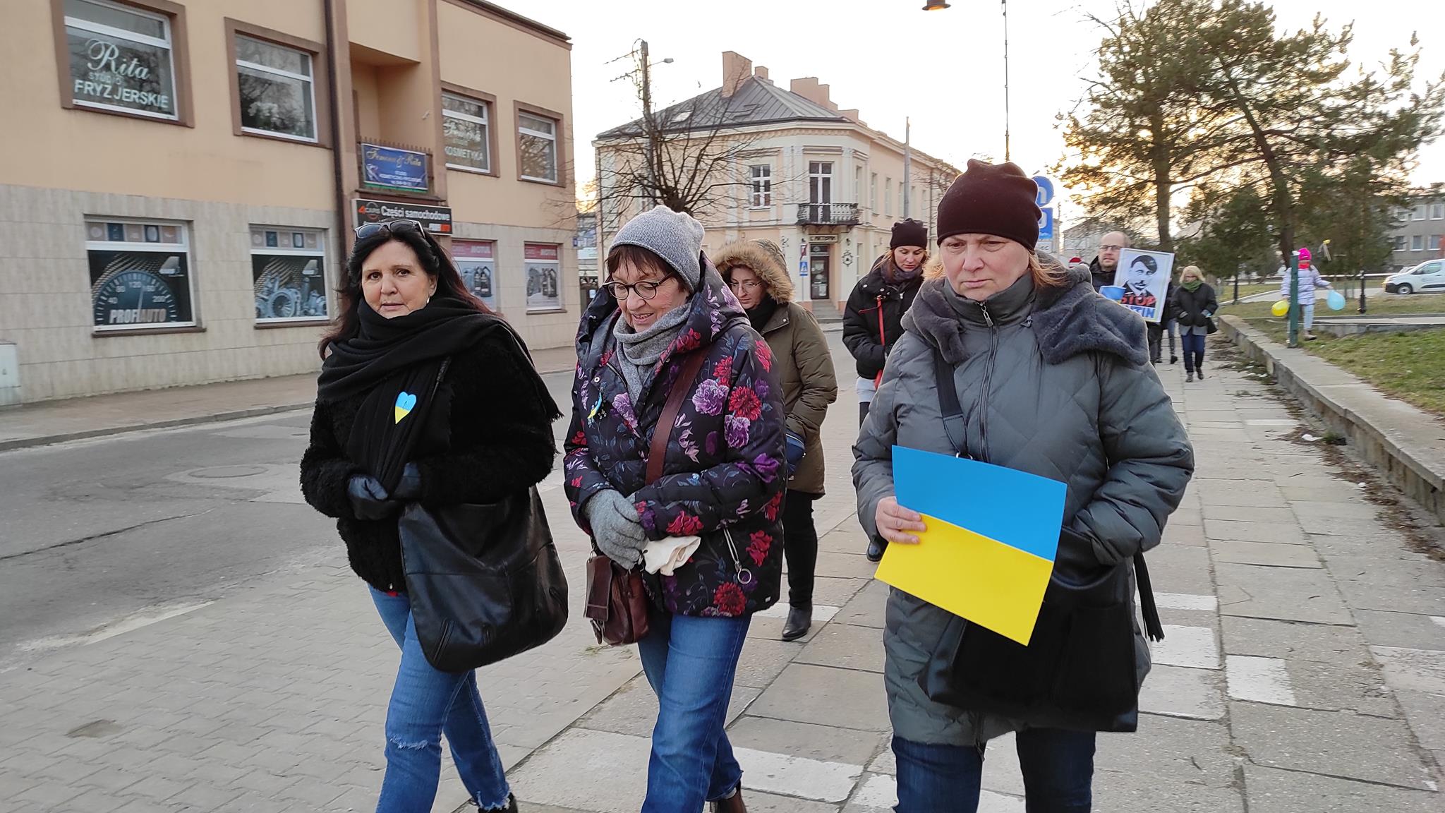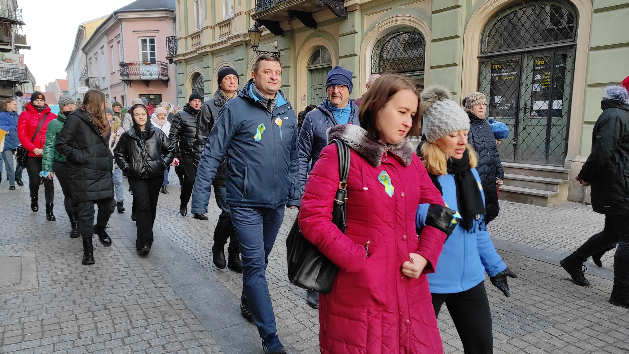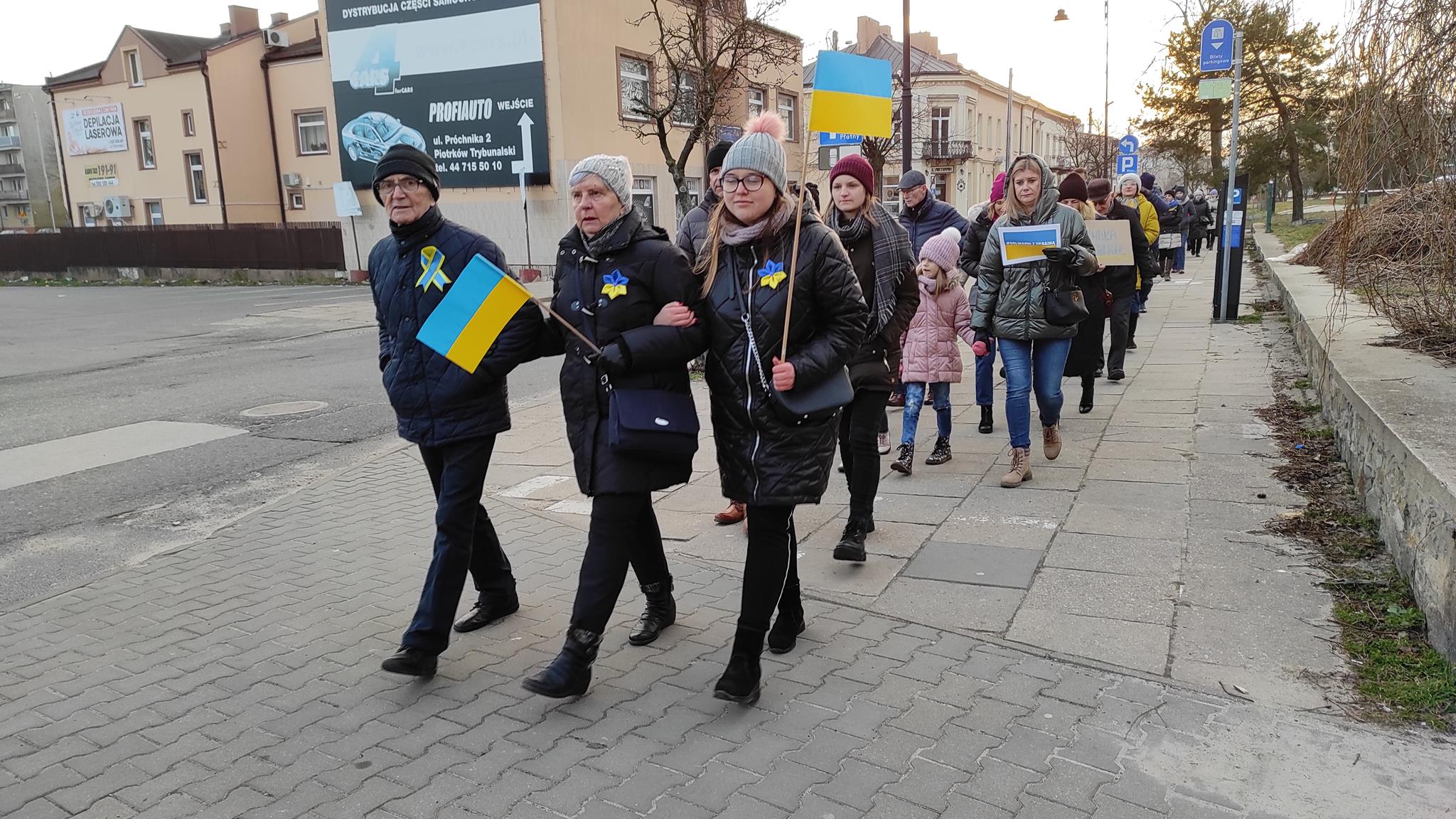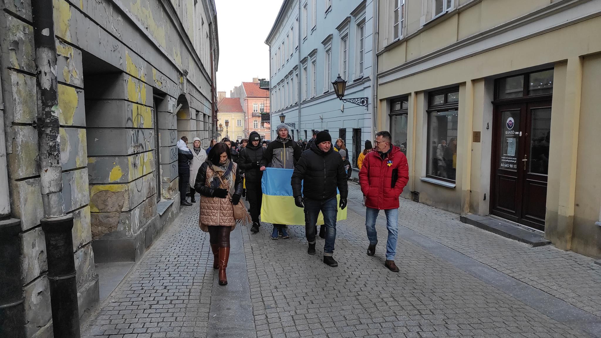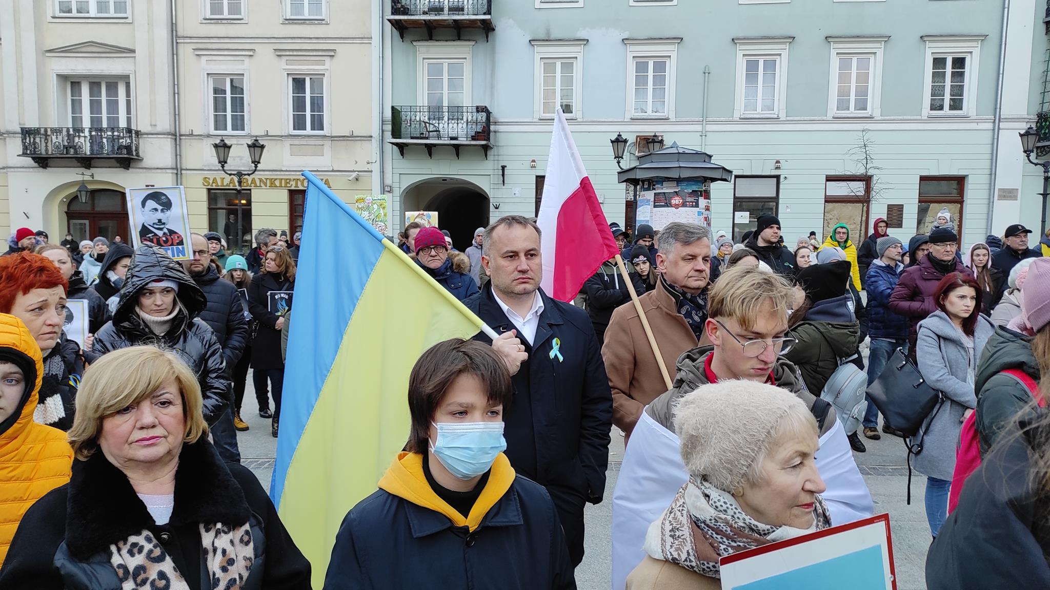 Podobnie jak poprzednio, oprócz Polaków, na starówce byli także Ukraińcy. Wielu z nich przyniosło narodowe flagi i własnoręcznie wykonane transparenty. Po krótkich przemówieniach i odśpiewaniu hymnów Ukrainy i Polski, kilkaset osób które zgromadziło się na Rynku, w milczeniu przeszło ulicą Sieradzką, Słowackiego, Sienkiewicza, Narutowicza i Szewską.