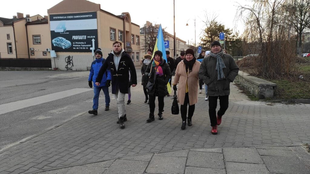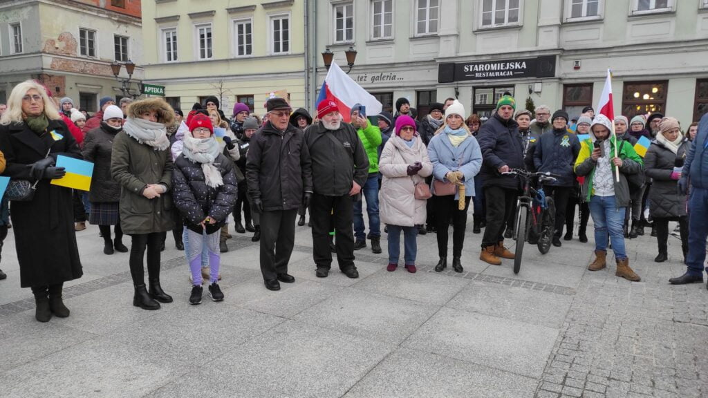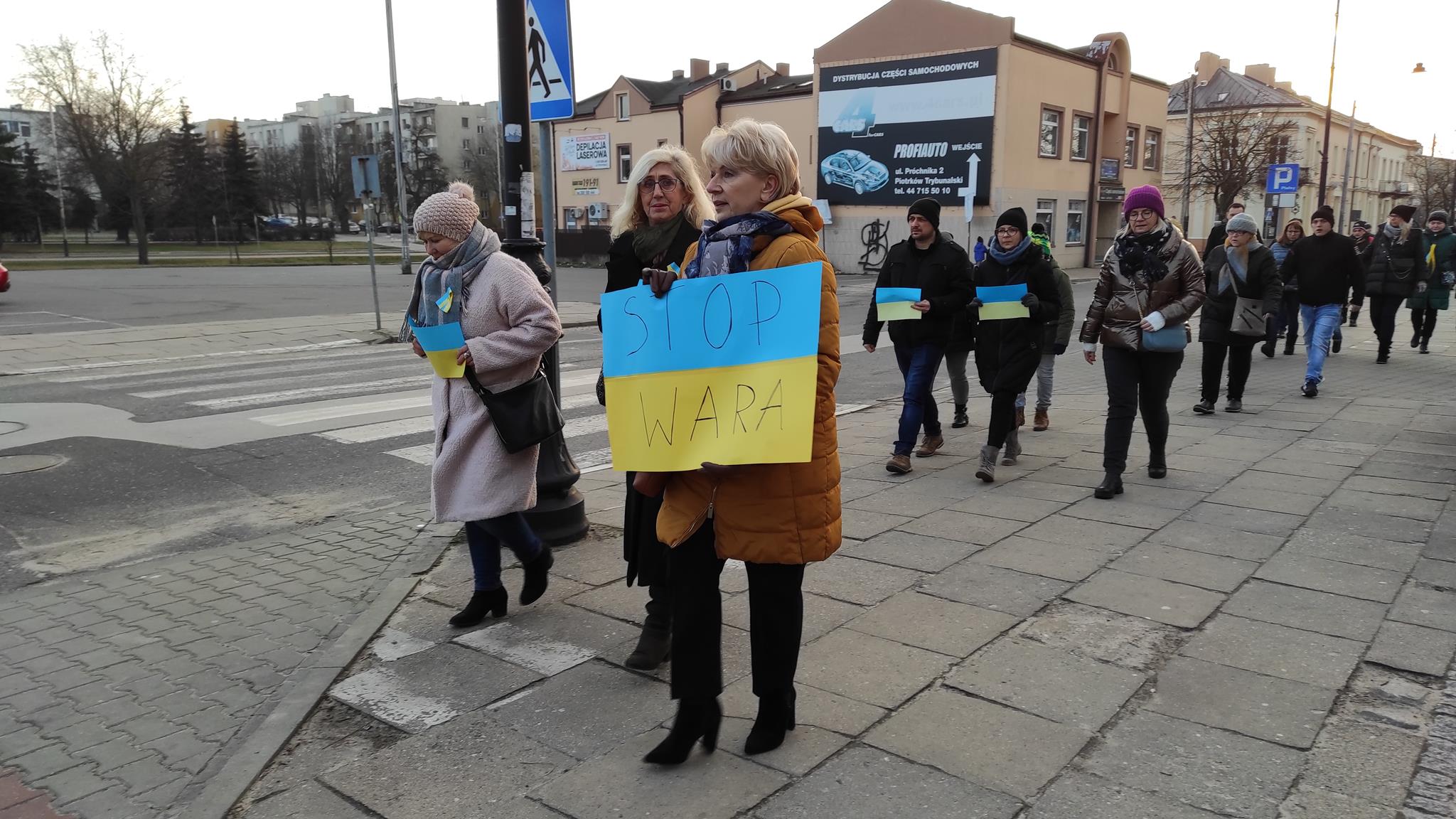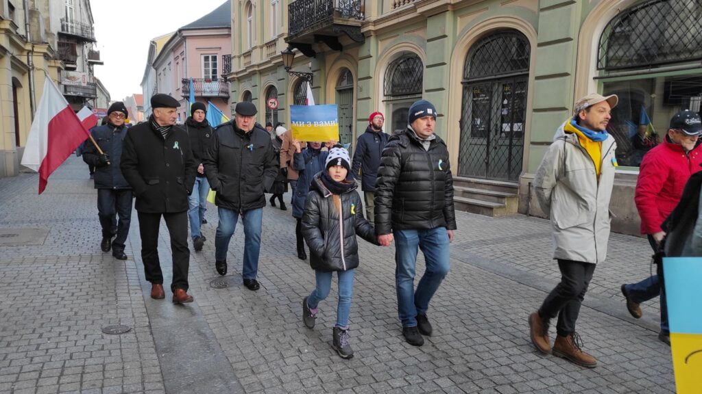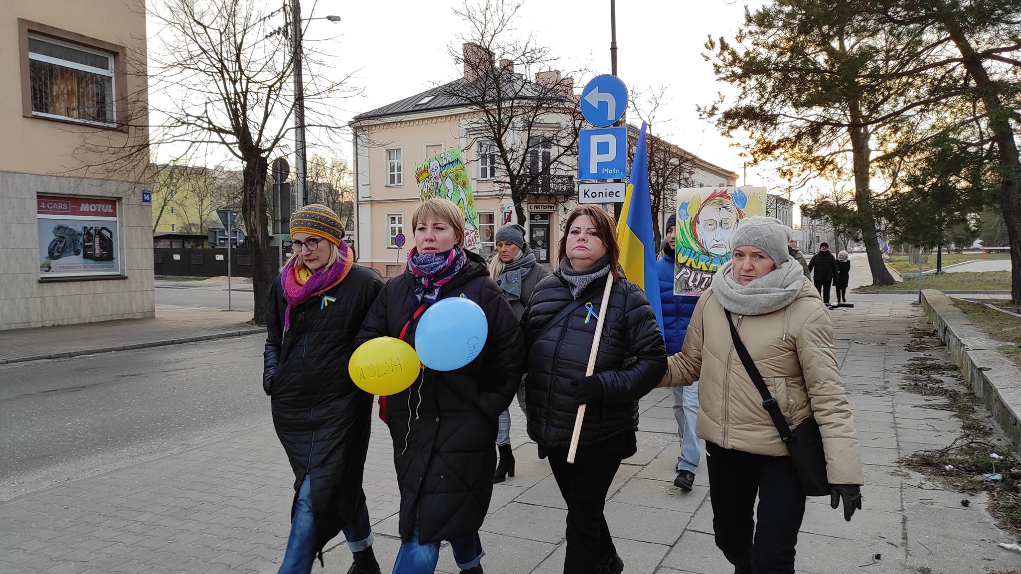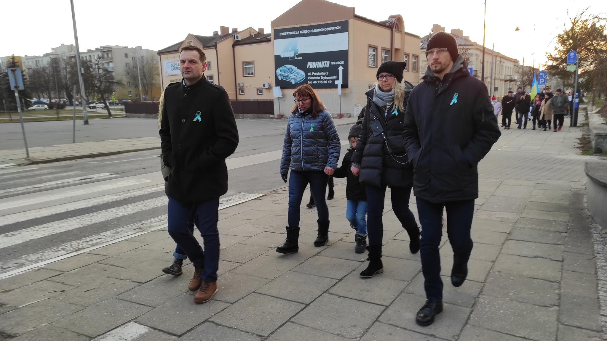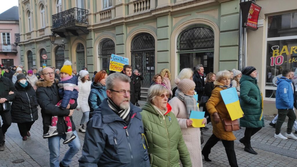 Podobnie jak poprzednio, oprócz Polaków, na starówce byli także Ukraińcy. Wielu z nich przyniosło narodowe flagi i własnoręcznie wykonane transparenty. Po krótkich przemówieniach i odśpiewaniu hymnów Ukrainy i Polski, kilkaset osób które zgromadziło się na Rynku, w milczeniu przeszło ulicą Sieradzką, Słowackiego, Sienkiewicza, Narutowicza i Szewską.