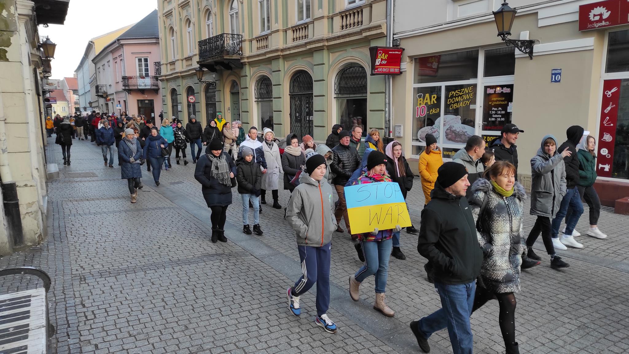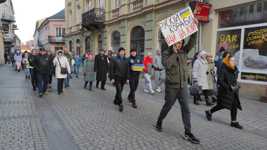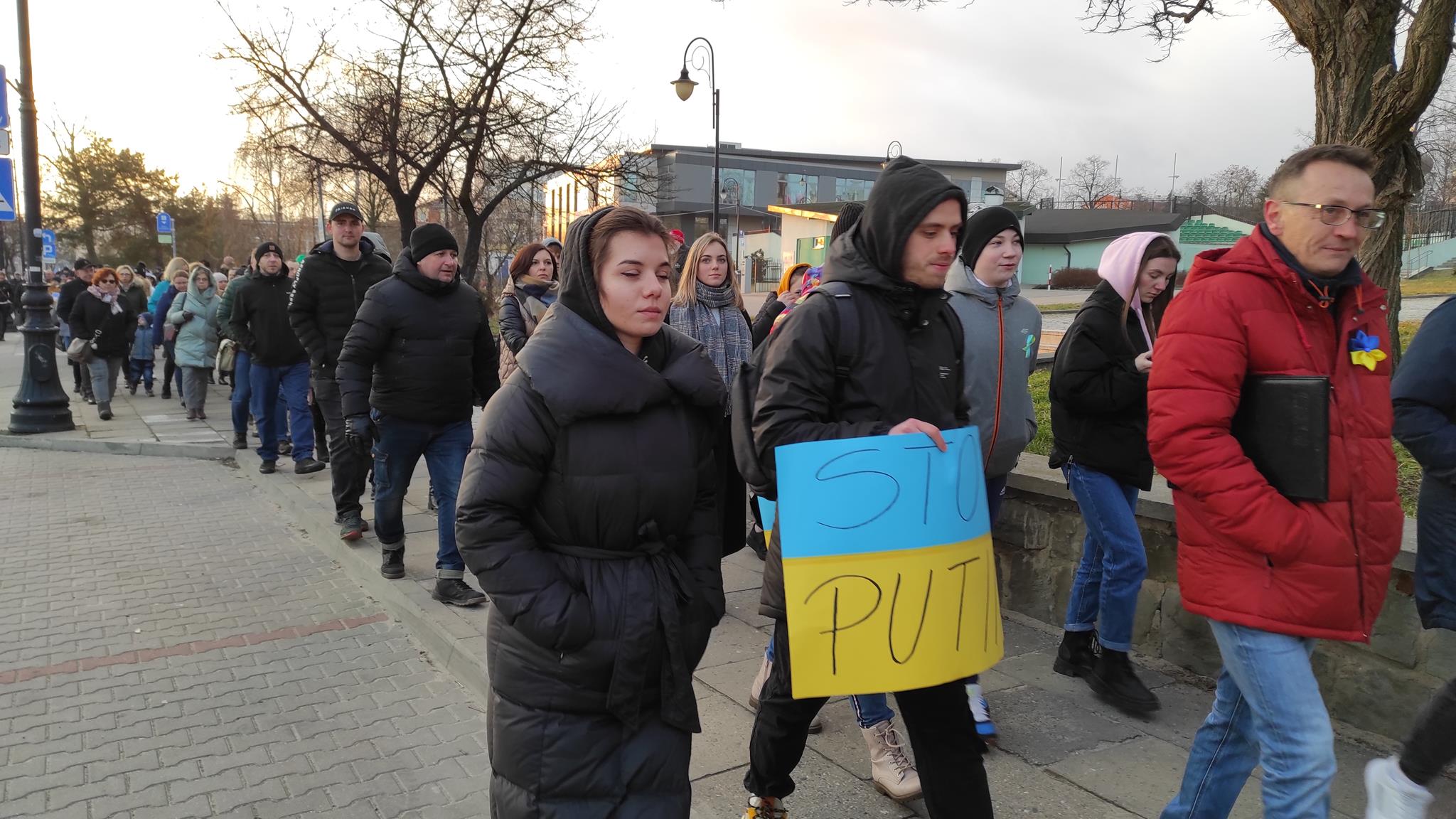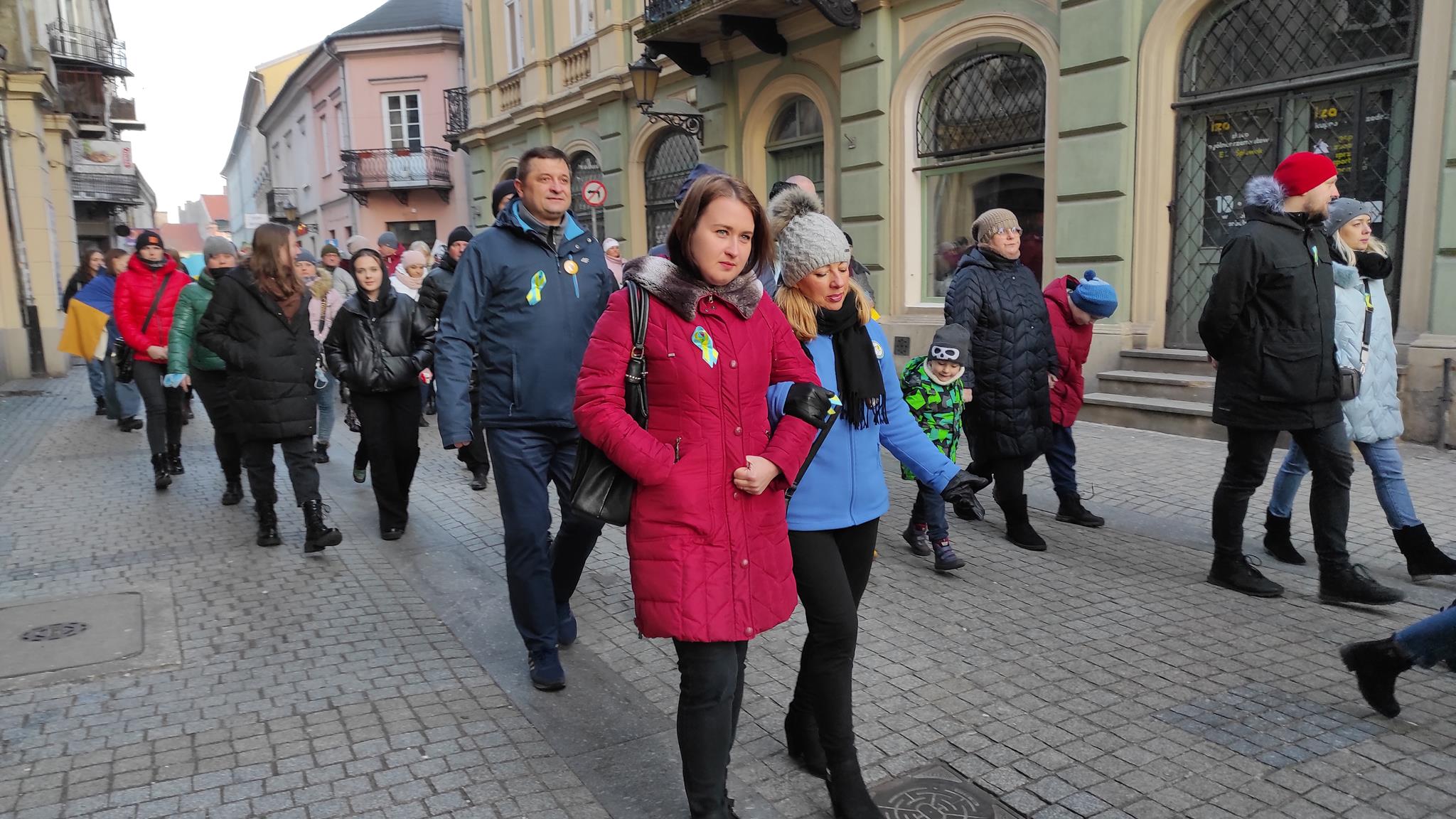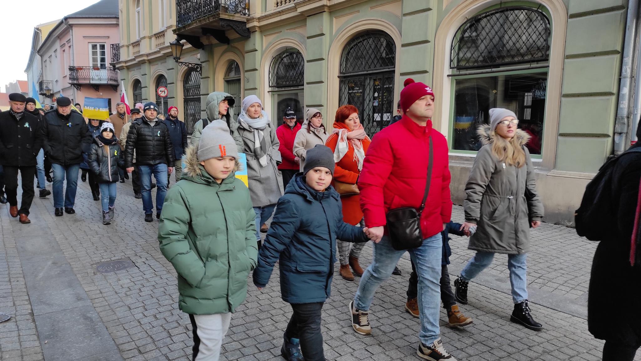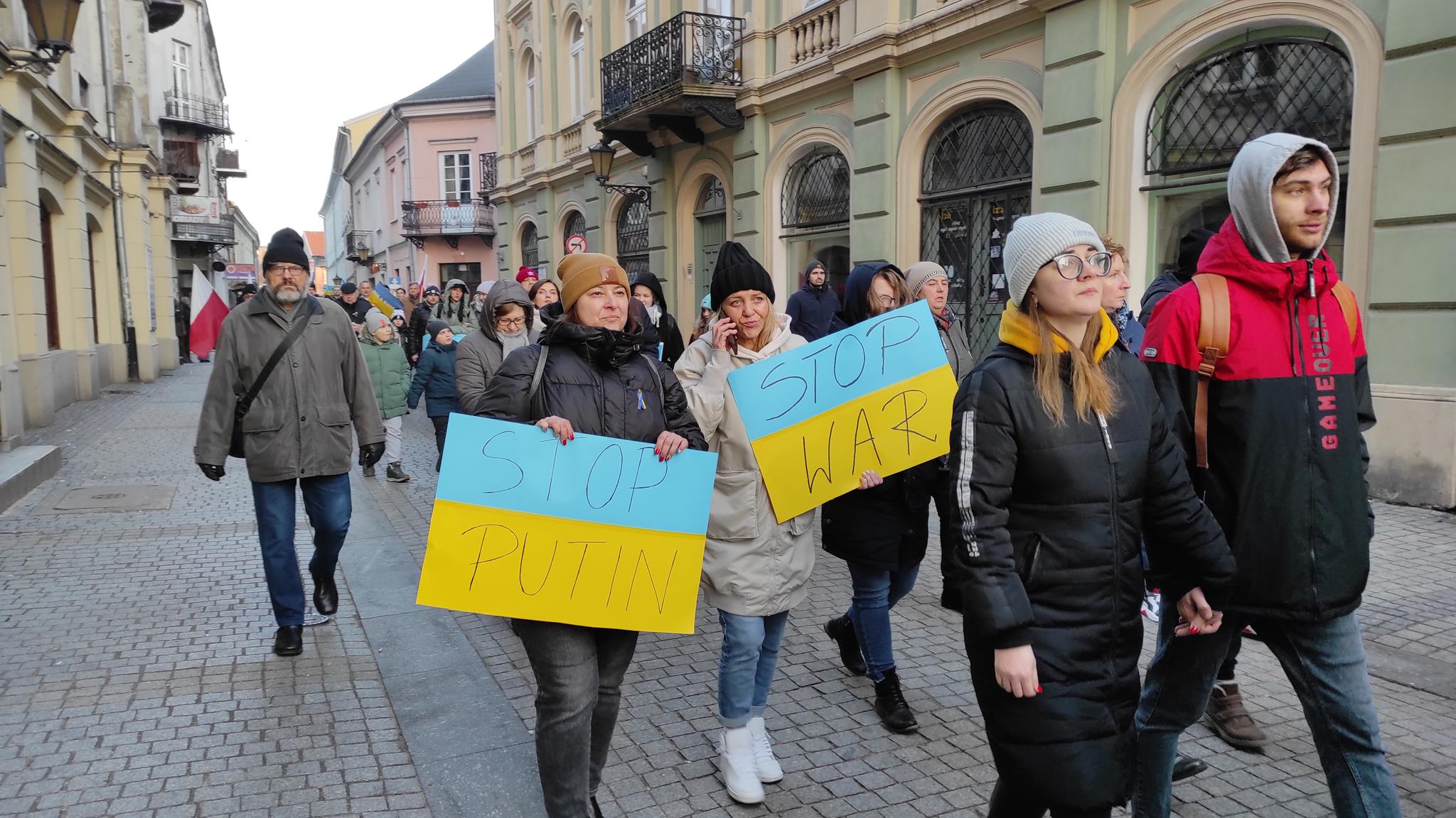 Podobnie jak poprzednio, oprócz Polaków, na starówce byli także Ukraińcy. Wielu z nich przyniosło narodowe flagi i własnoręcznie wykonane transparenty. Po krótkich przemówieniach i odśpiewaniu hymnów Ukrainy i Polski, kilkaset osób które zgromadziło się na Rynku, w milczeniu przeszło ulicą Sieradzką, Słowackiego, Sienkiewicza, Narutowicza i Szewską.
