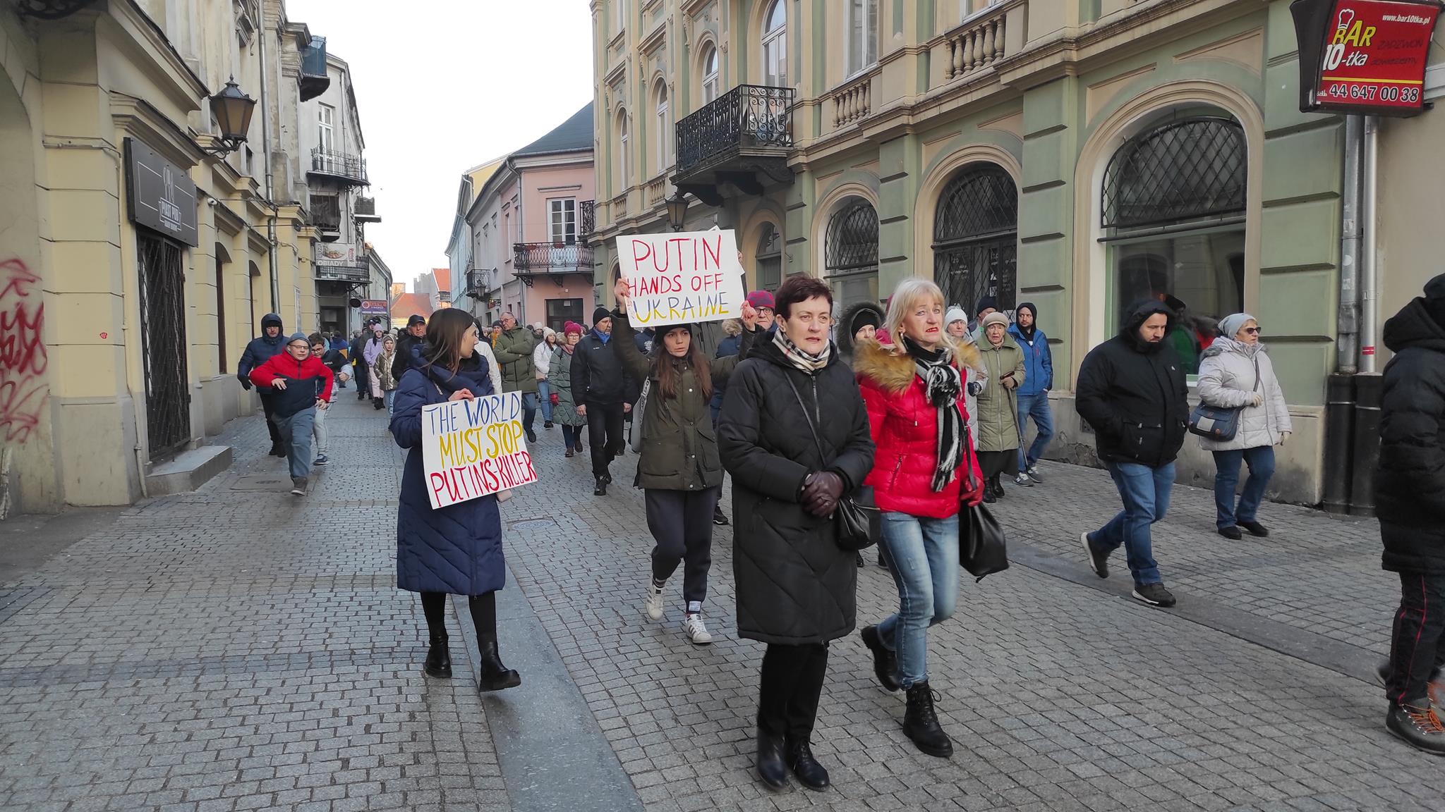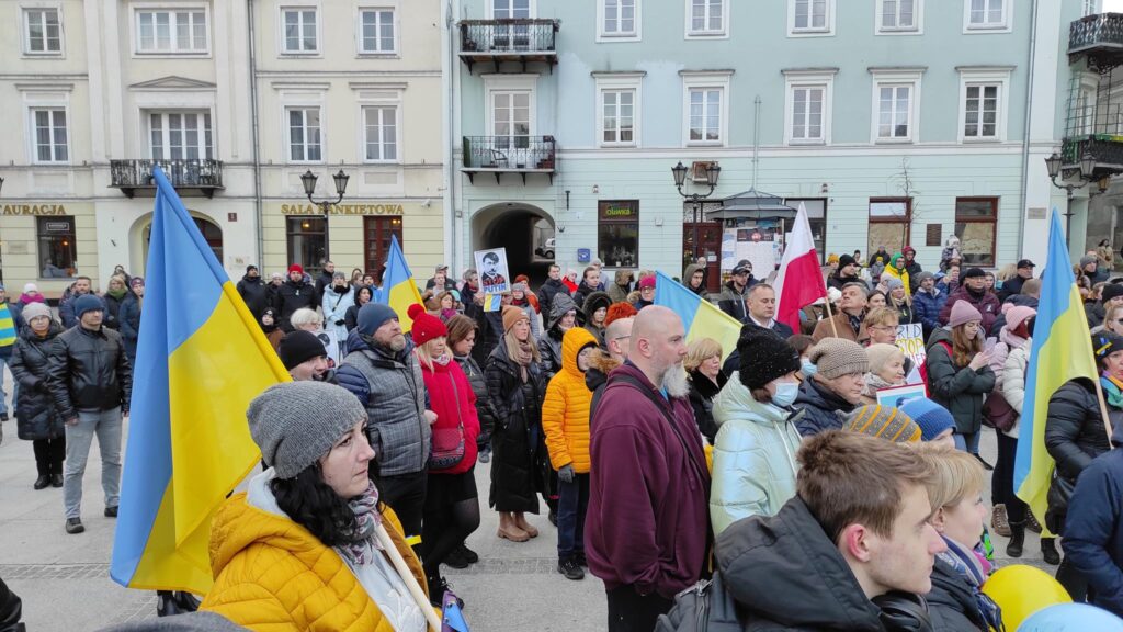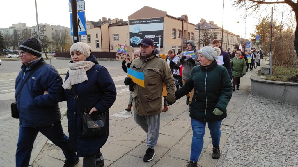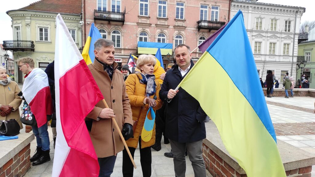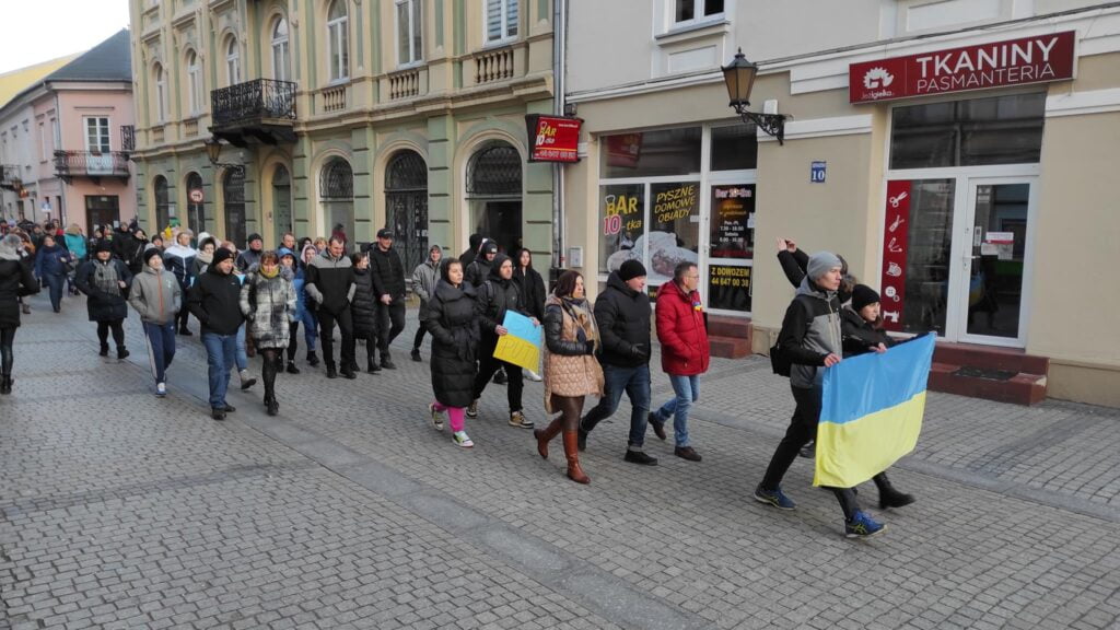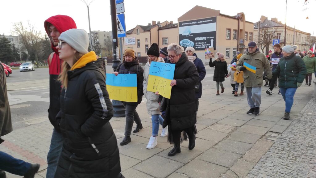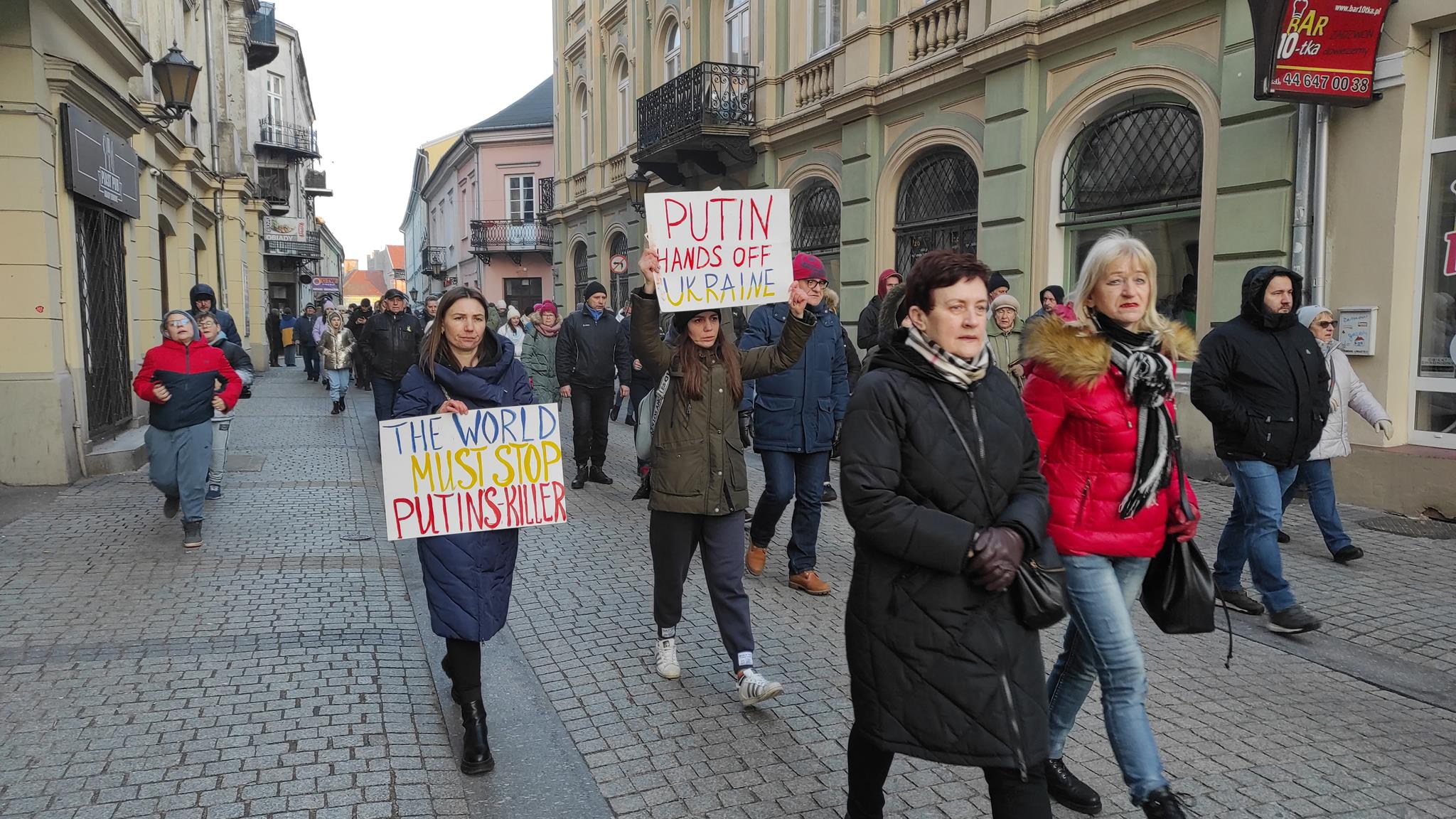 Podobnie jak poprzednio, oprócz Polaków, na starówce byli także Ukraińcy. Wielu z nich przyniosło narodowe flagi i własnoręcznie wykonane transparenty. Po krótkich przemówieniach i odśpiewaniu hymnów Ukrainy i Polski, kilkaset osób które zgromadziło się na Rynku, w milczeniu przeszło ulicą Sieradzką, Słowackiego, Sienkiewicza, Narutowicza i Szewską.
