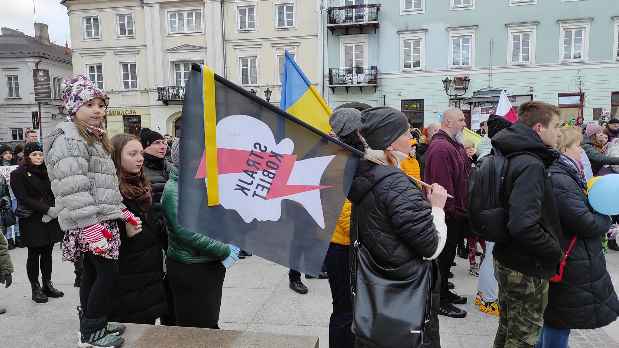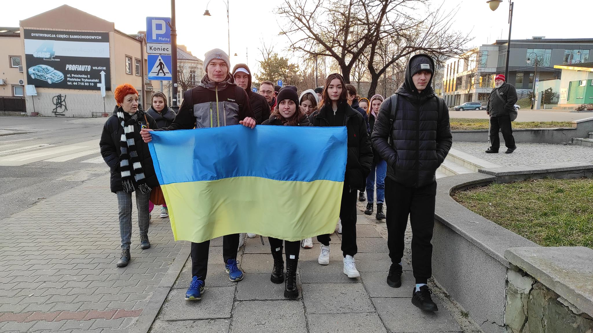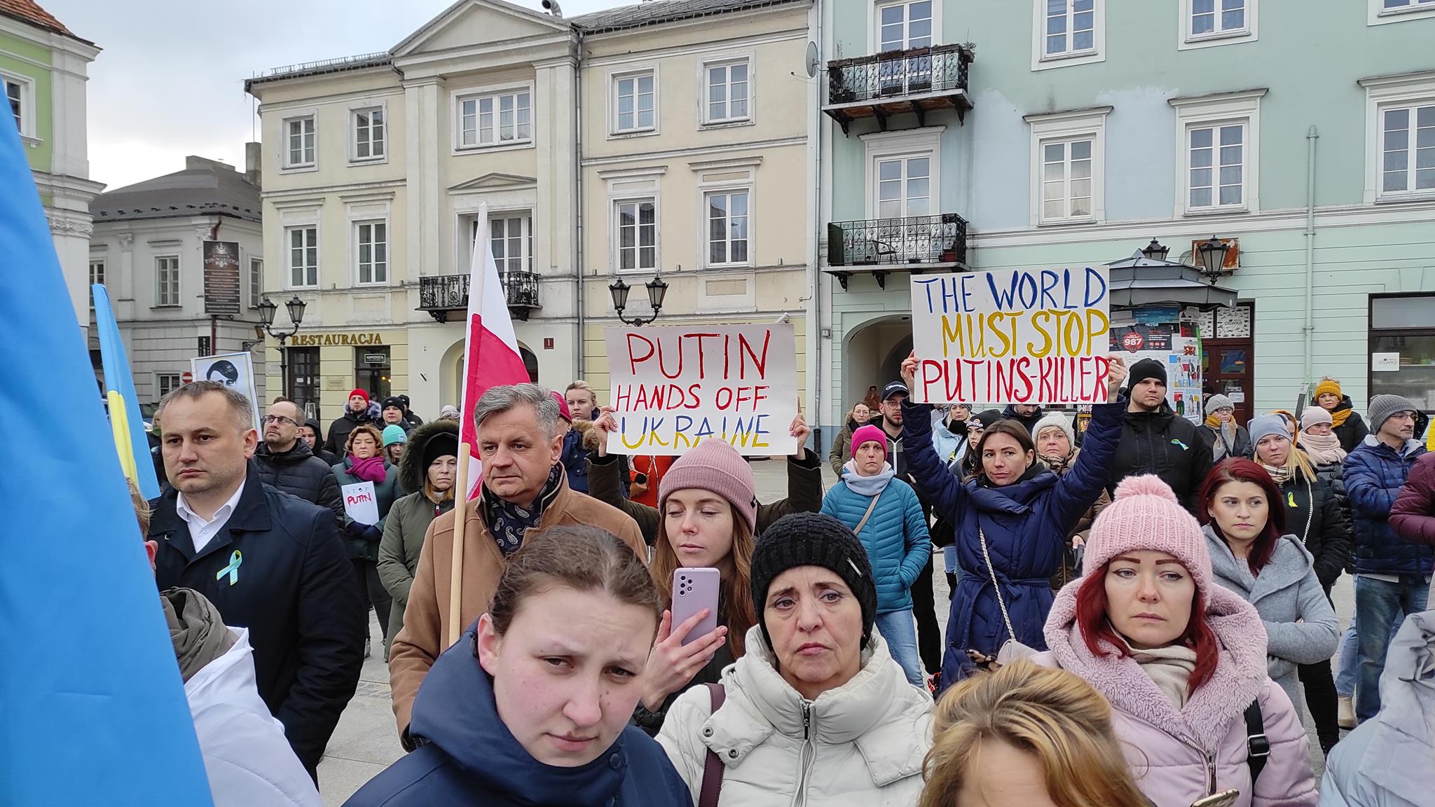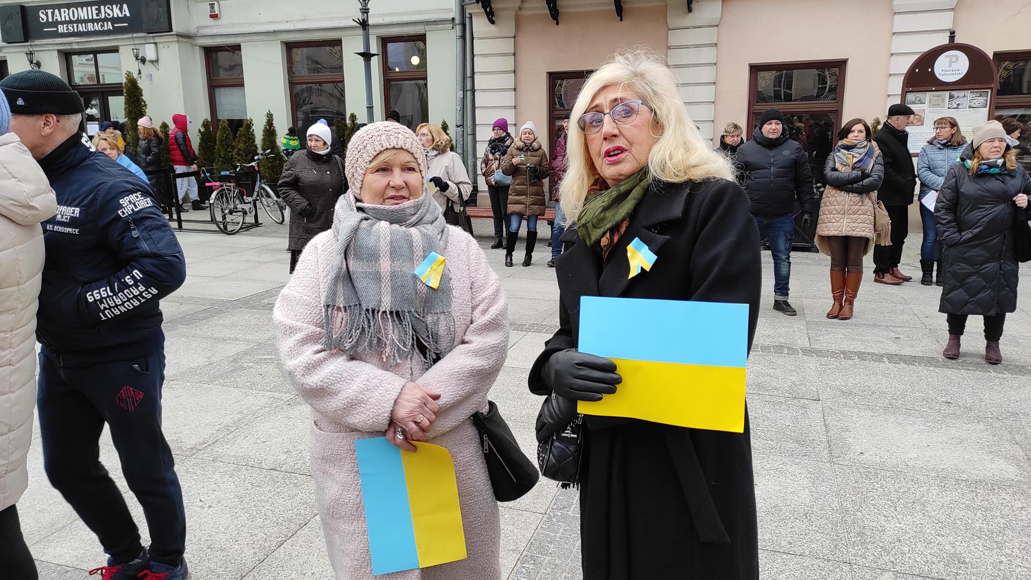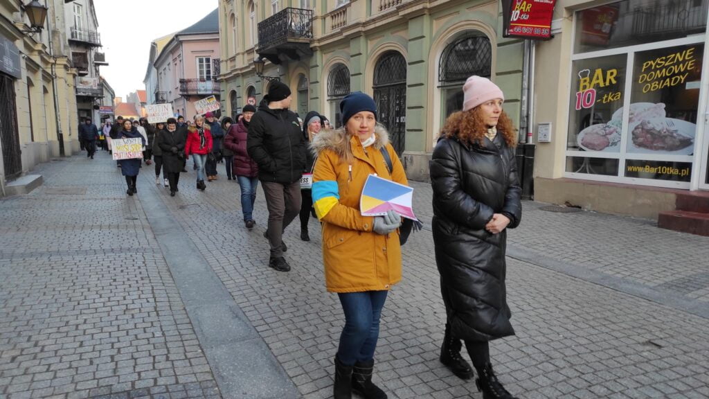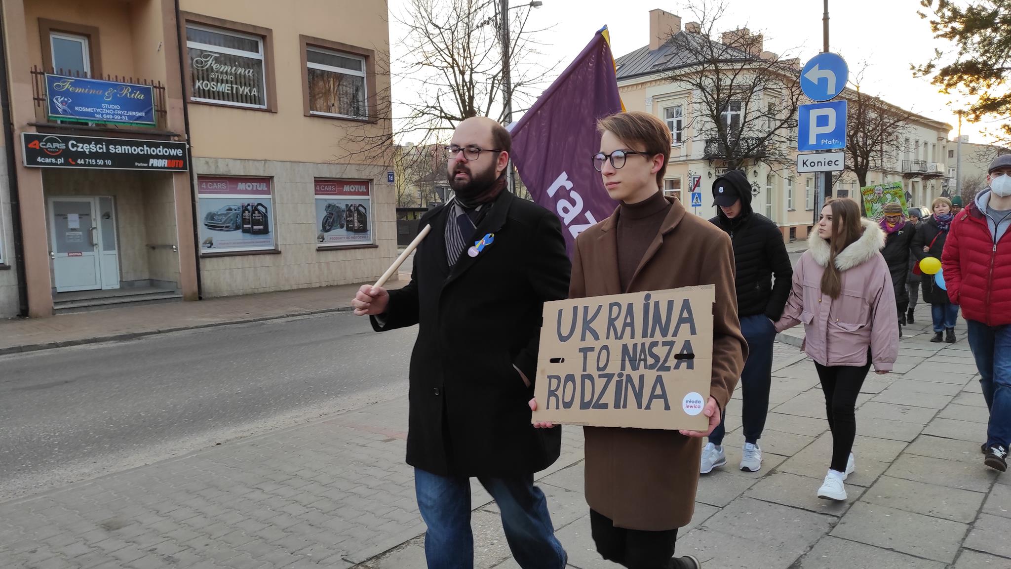 Podobnie jak poprzednio, oprócz Polaków, na starówce byli także Ukraińcy. Wielu z nich przyniosło narodowe flagi i własnoręcznie wykonane transparenty. Po krótkich przemówieniach i odśpiewaniu hymnów Ukrainy i Polski, kilkaset osób które zgromadziło się na Rynku, w milczeniu przeszło ulicą Sieradzką, Słowackiego, Sienkiewicza, Narutowicza i Szewską.