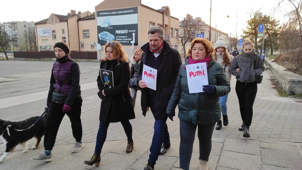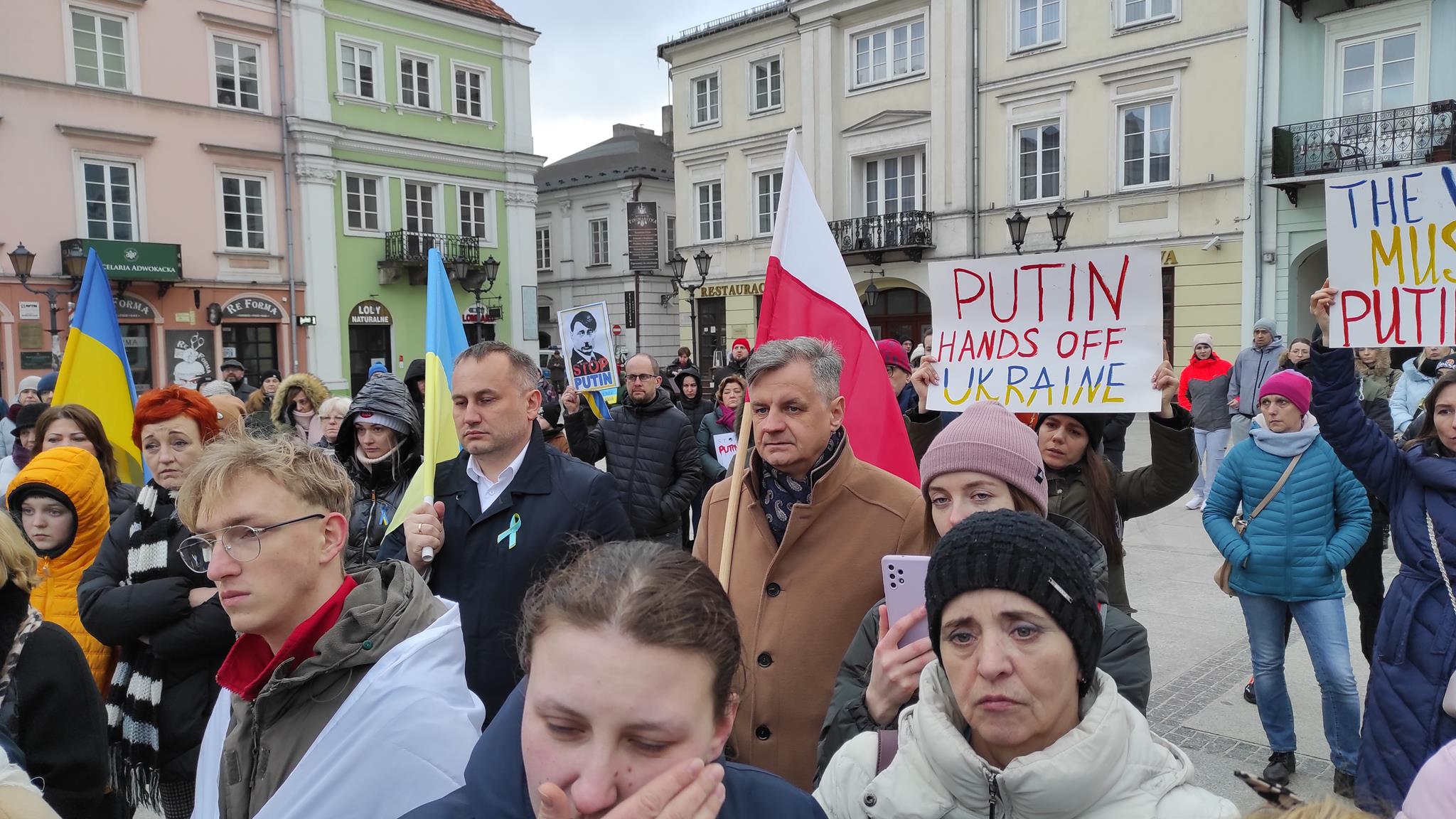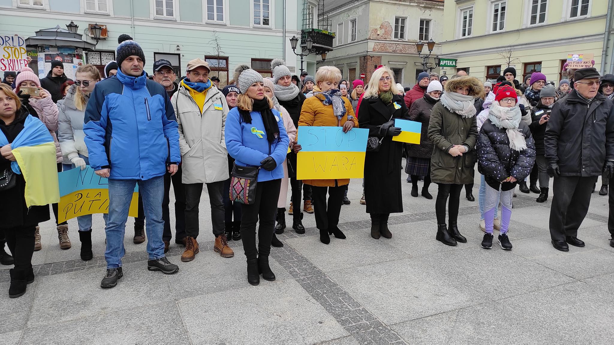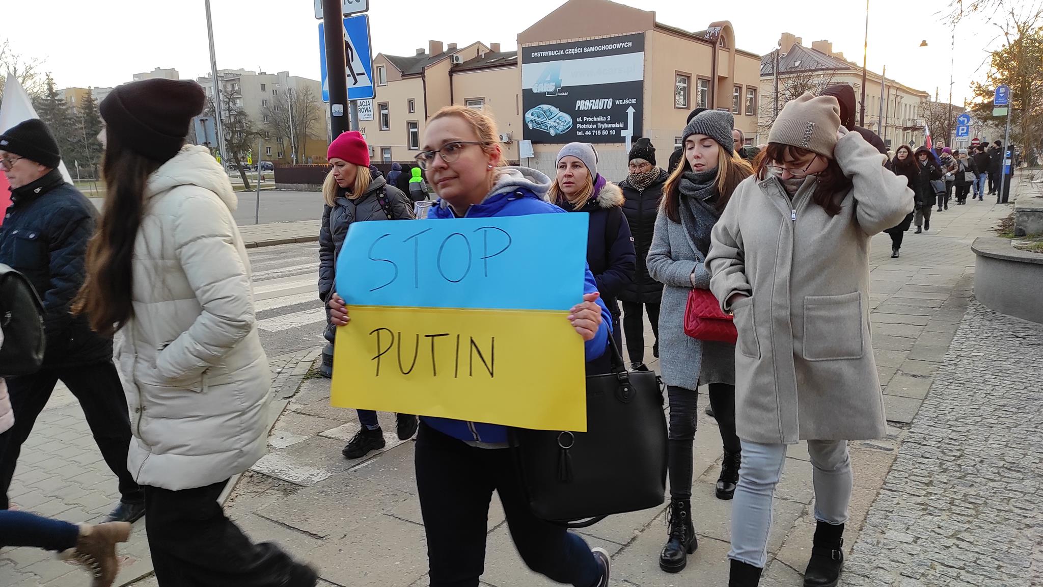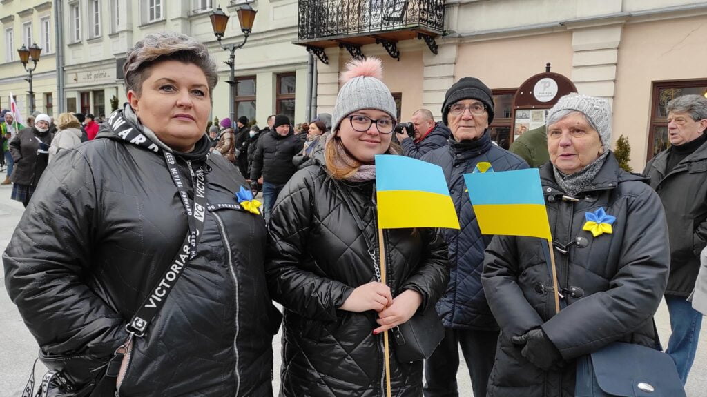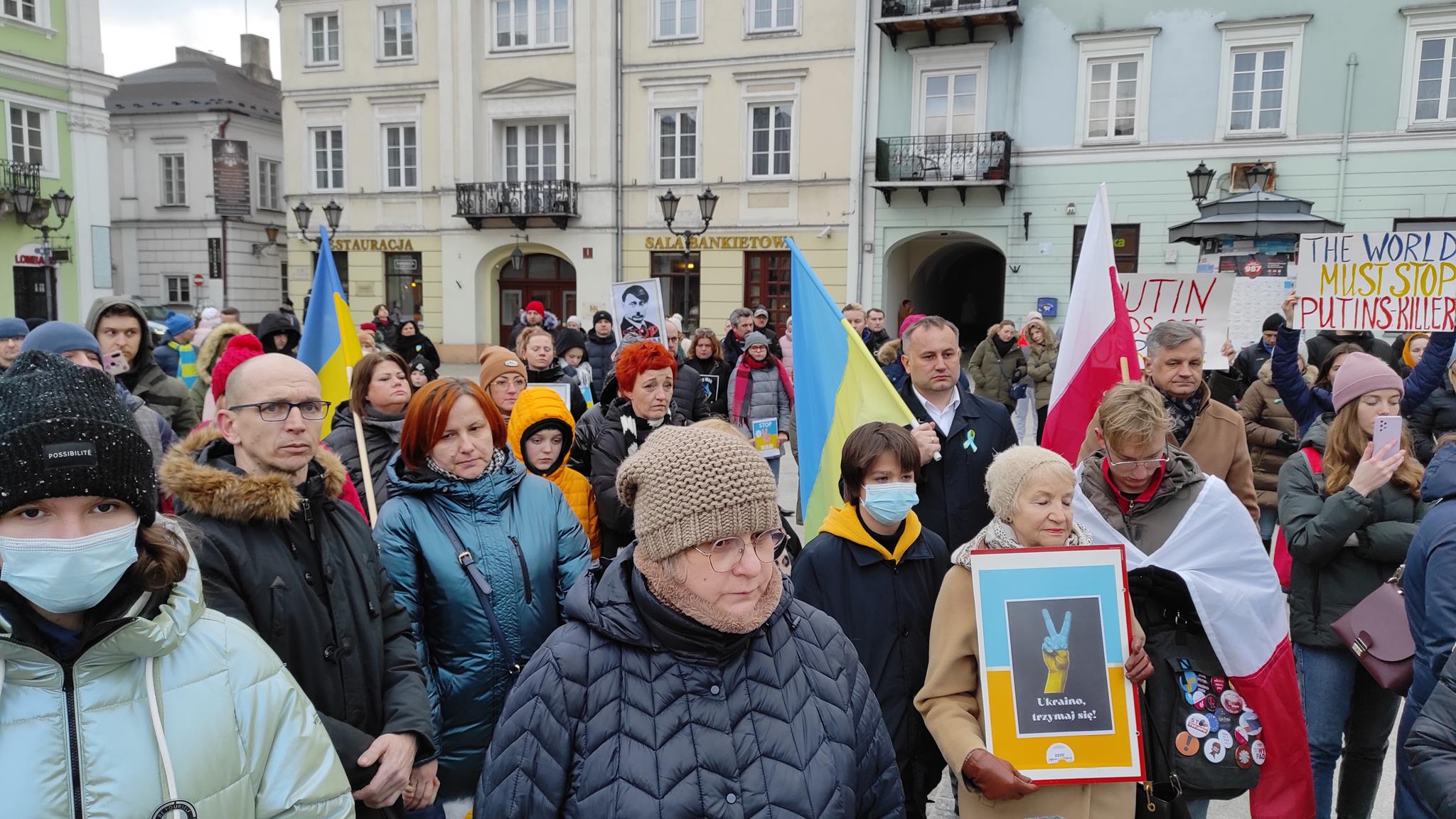 Podobnie jak poprzednio, oprócz Polaków, na starówce byli także Ukraińcy. Wielu z nich przyniosło narodowe flagi i własnoręcznie wykonane transparenty. Po krótkich przemówieniach i odśpiewaniu hymnów Ukrainy i Polski, kilkaset osób które zgromadziło się na Rynku, w milczeniu przeszło ulicą Sieradzką, Słowackiego, Sienkiewicza, Narutowicza i Szewską.