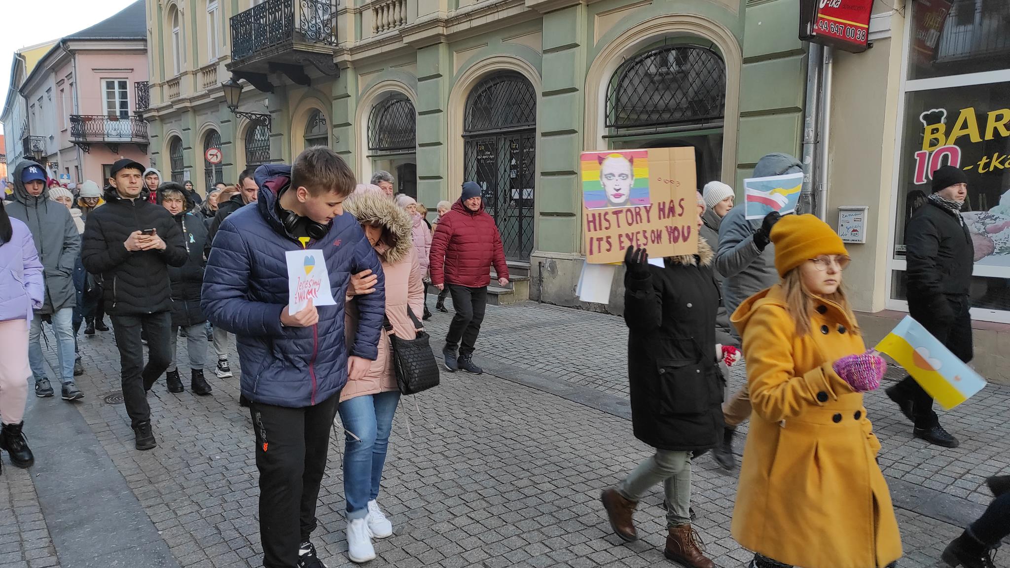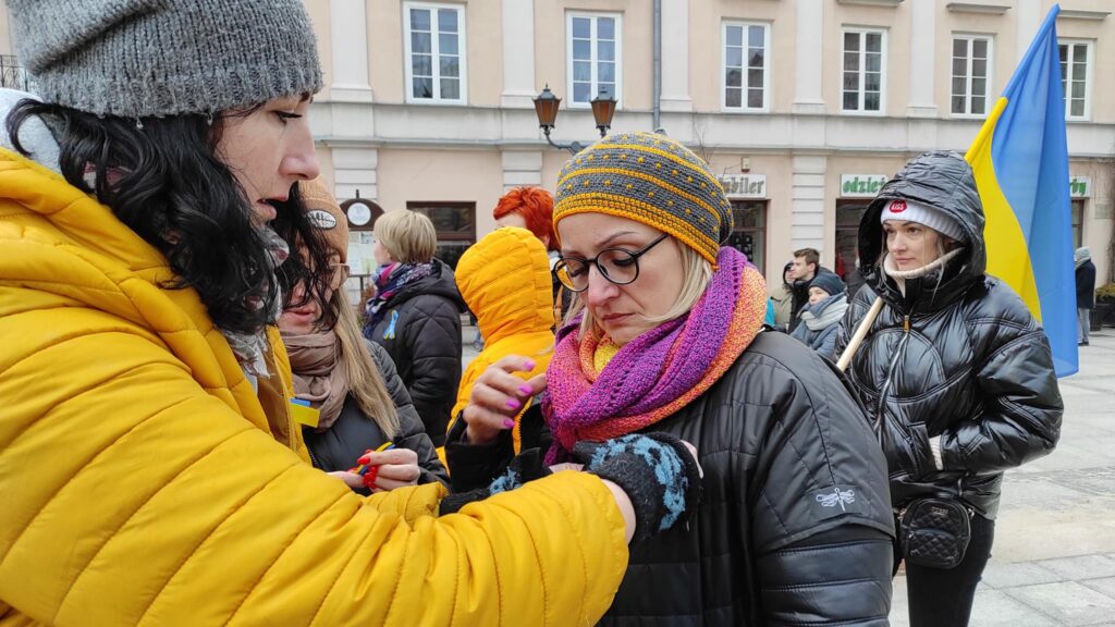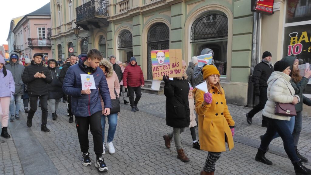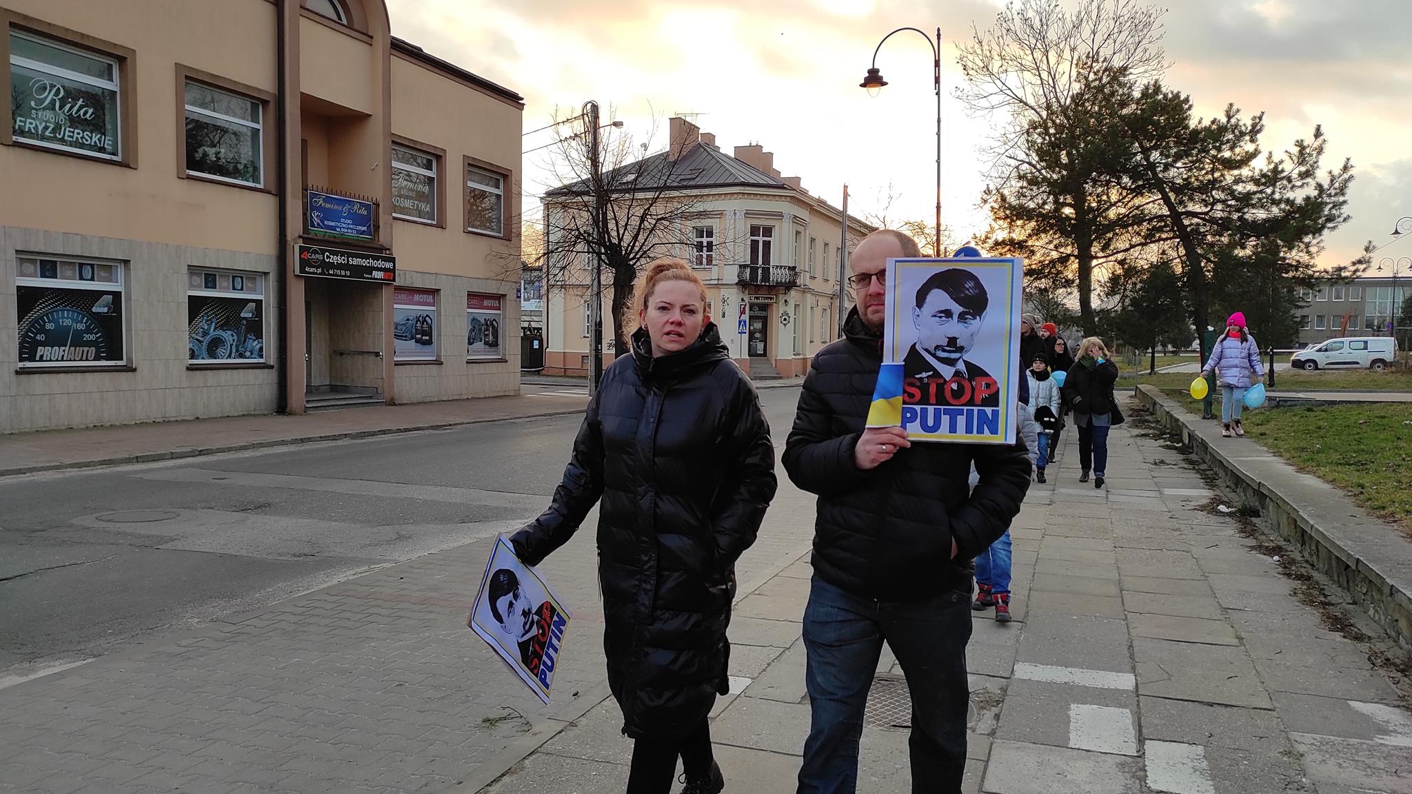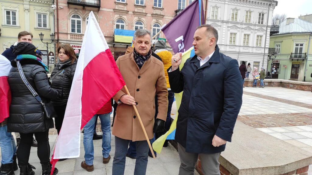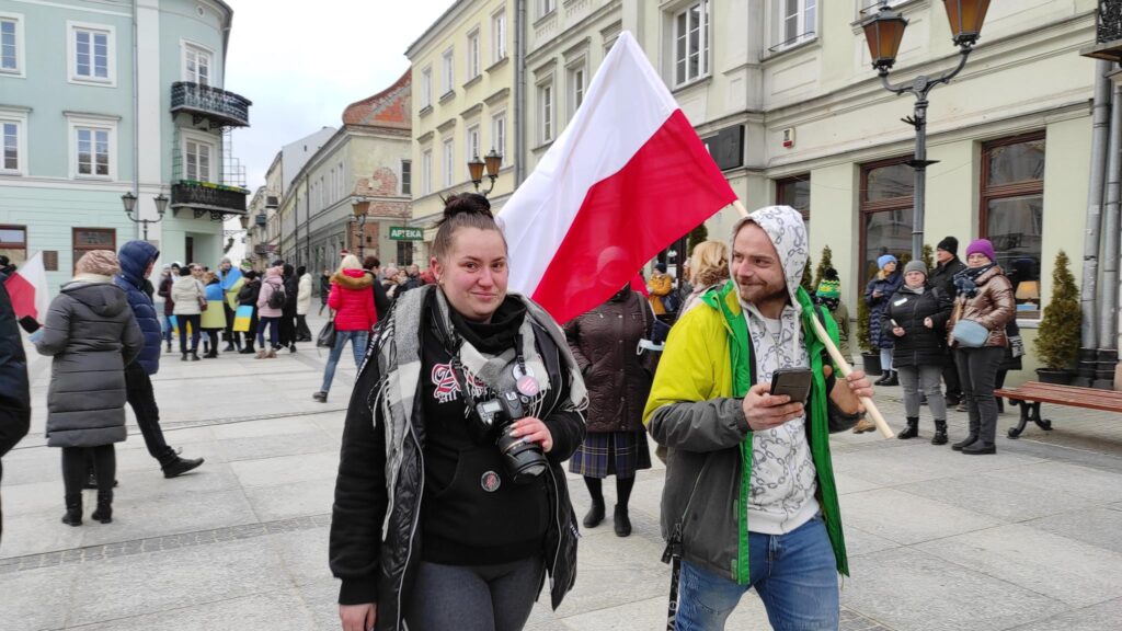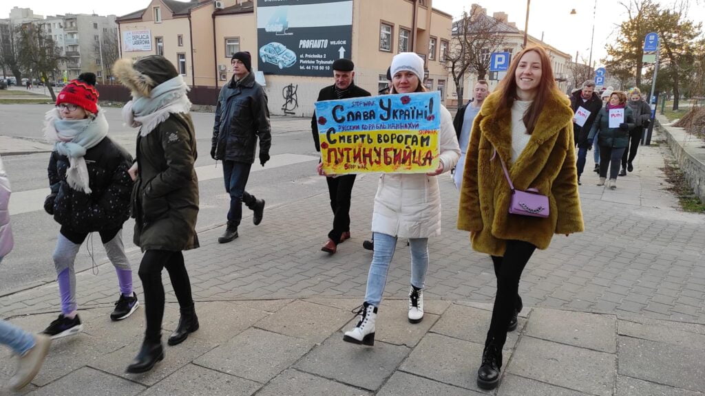 Podobnie jak poprzednio, oprócz Polaków, na starówce byli także Ukraińcy. Wielu z nich przyniosło narodowe flagi i własnoręcznie wykonane transparenty. Po krótkich przemówieniach i odśpiewaniu hymnów Ukrainy i Polski, kilkaset osób które zgromadziło się na Rynku, w milczeniu przeszło ulicą Sieradzką, Słowackiego, Sienkiewicza, Narutowicza i Szewską.