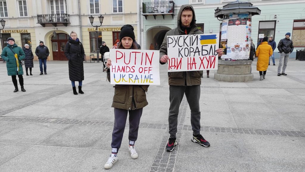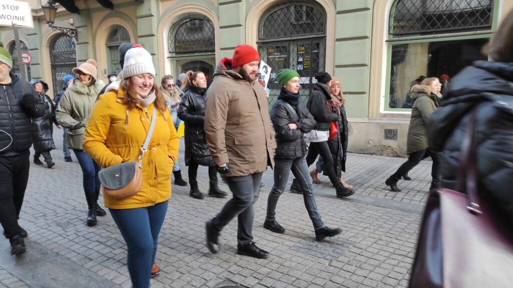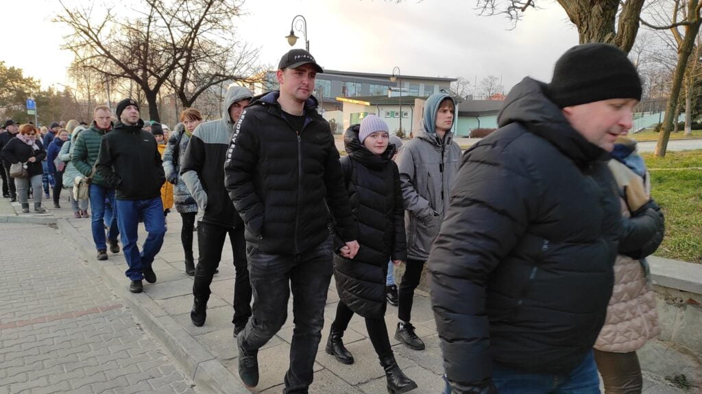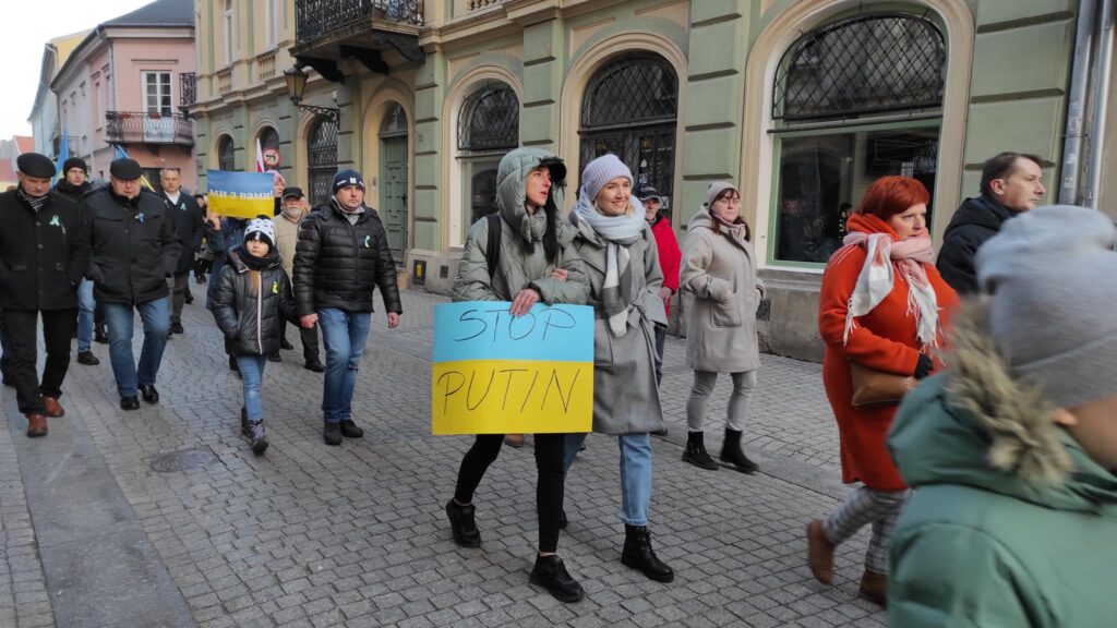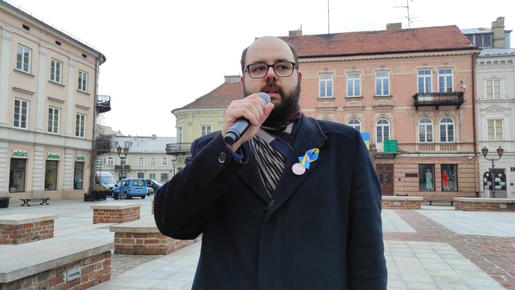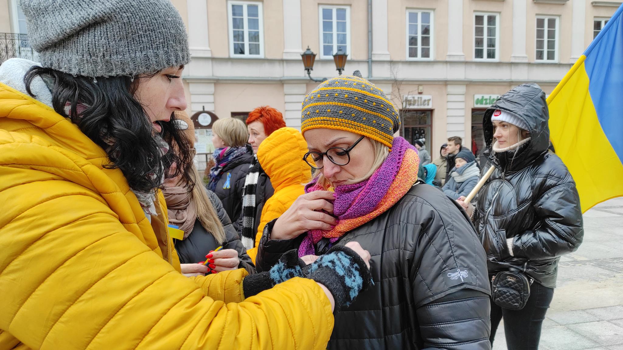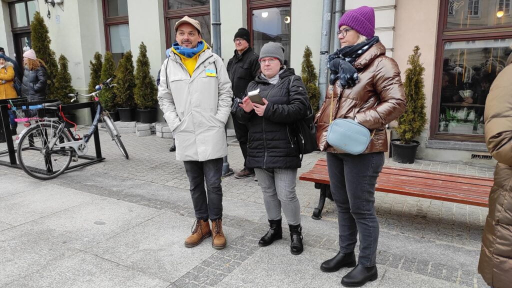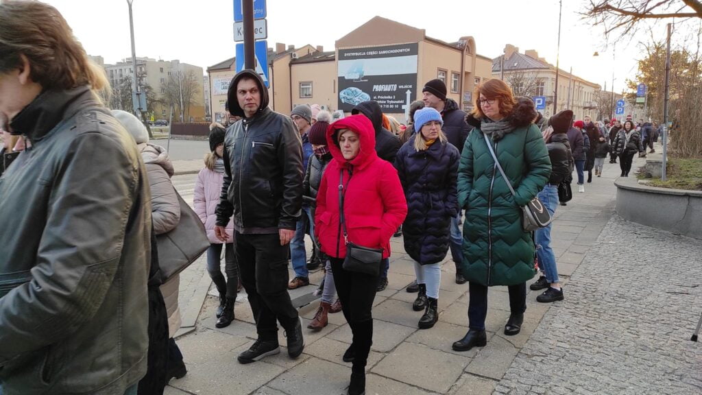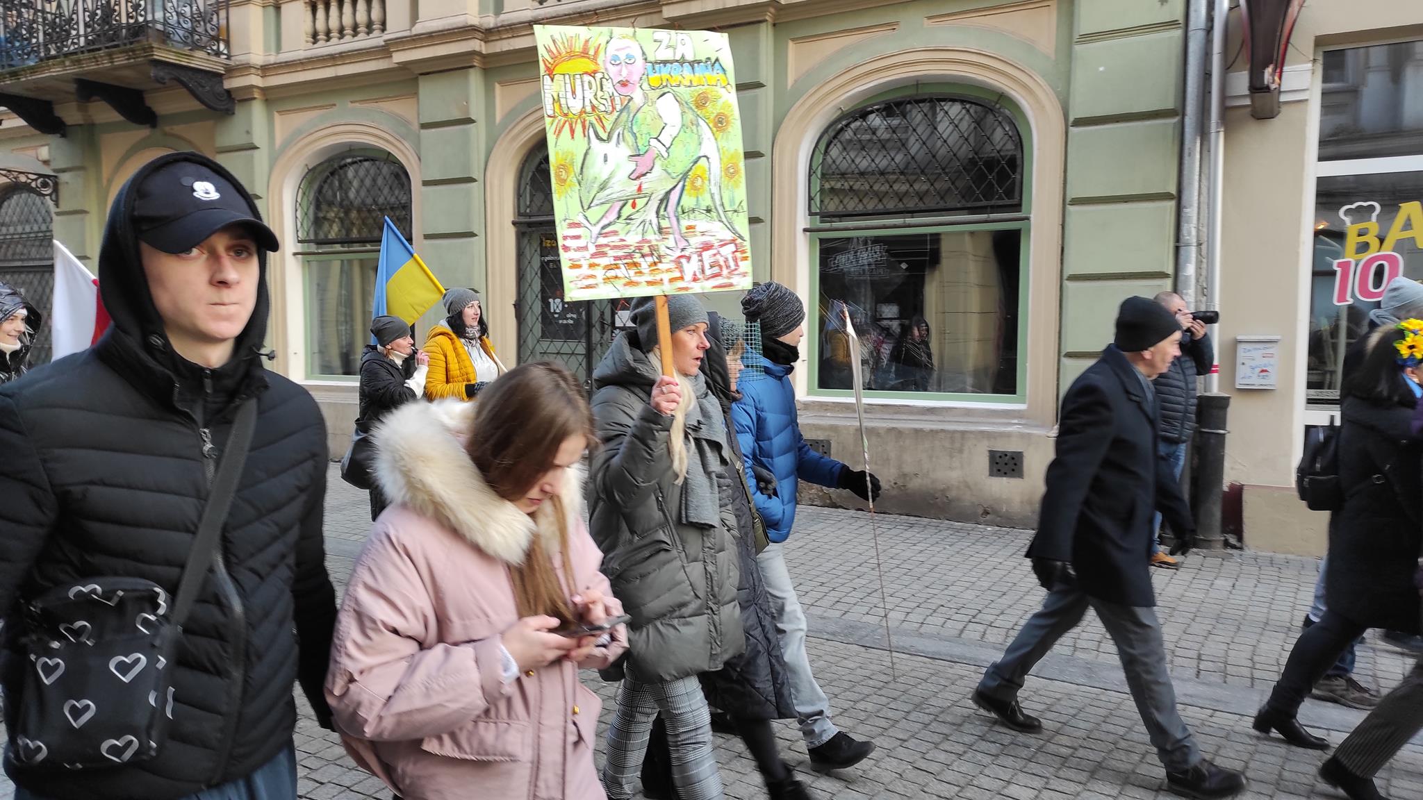 Podobnie jak poprzednio, oprócz Polaków, na starówce byli także Ukraińcy. Wielu z nich przyniosło narodowe flagi i własnoręcznie wykonane transparenty. Po krótkich przemówieniach i odśpiewaniu hymnów Ukrainy i Polski, kilkaset osób które zgromadziło się na Rynku, w milczeniu przeszło ulicą Sieradzką, Słowackiego, Sienkiewicza, Narutowicza i Szewską.