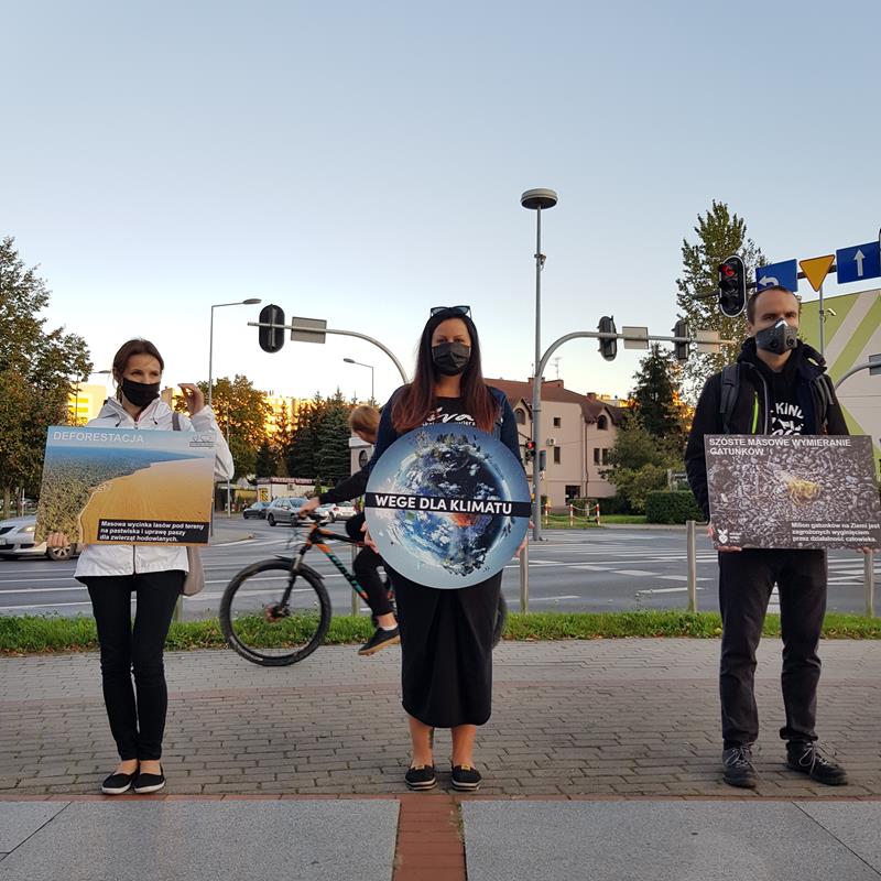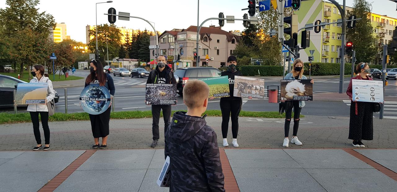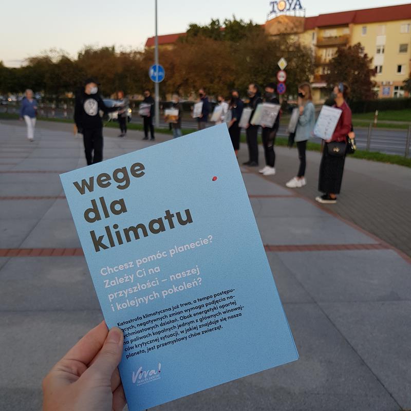 Przyszłość naszej planety, kolejnych pokoleń i milionów innych gatunków jest zagrożona. Katastrofa klimatyczna już trwa, a tempo postępujących, negatywnych zmian wymaga podjęcia natychmiastowych działań. Obok energetyki opartej na paliwach kopalnych jednym z głównych winowajców krytycznej sytuacji, w jakiej znajduje się nasza planeta, jest ogromny apetyt ludzkości na mięso oraz przemysłowy chów zwierząt. Fundacja Viva! rozpoczyna serię akcji ulicznych o nazwie Wege dla klimatu. We wtorek akcja odbywała się w Piotrkowie Trybunalskim przed galerią Focus Mall. Akcje uliczne mają charakter edukacyjny. Aktywiści za pomocą plansz prezentujących przyczyny i konsekwencje zmian klimatu objaśniają problem kryzysu klimatycznego.