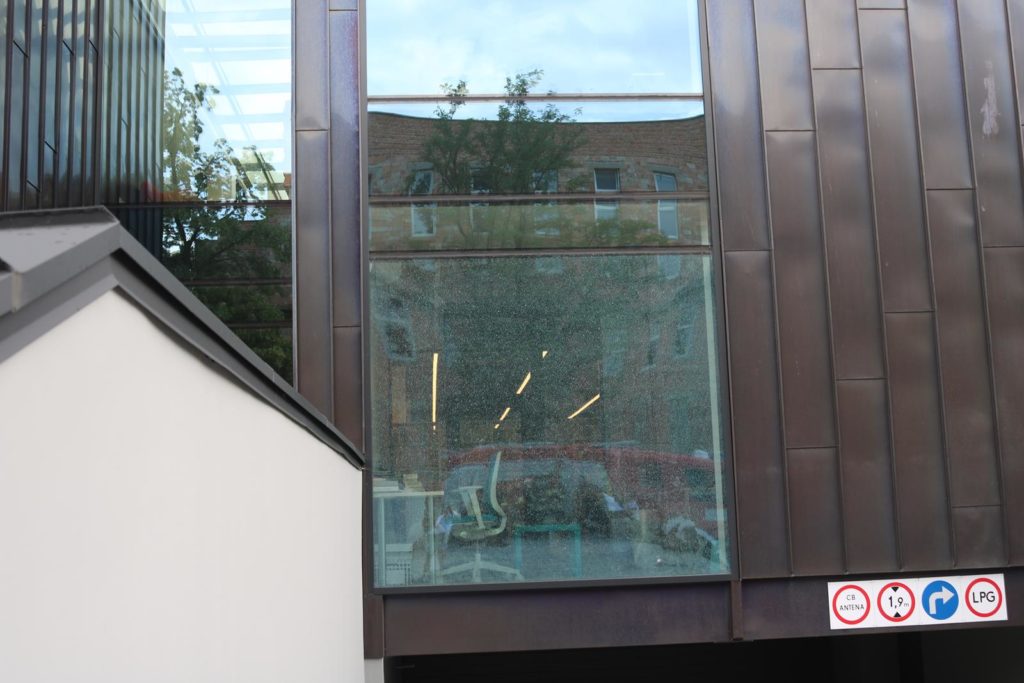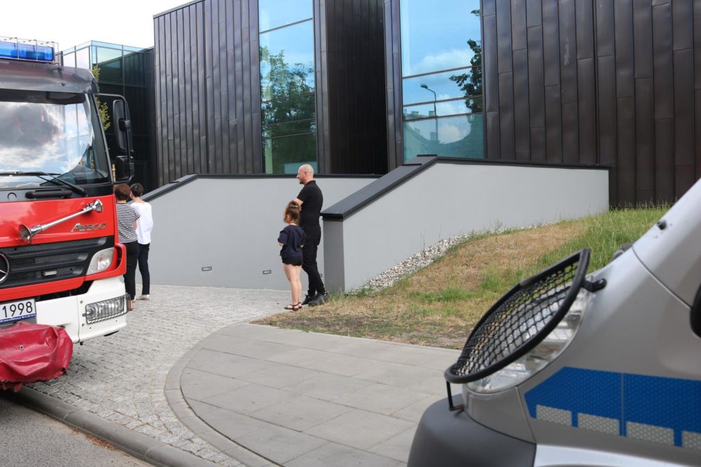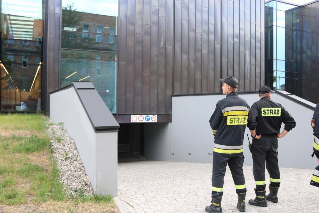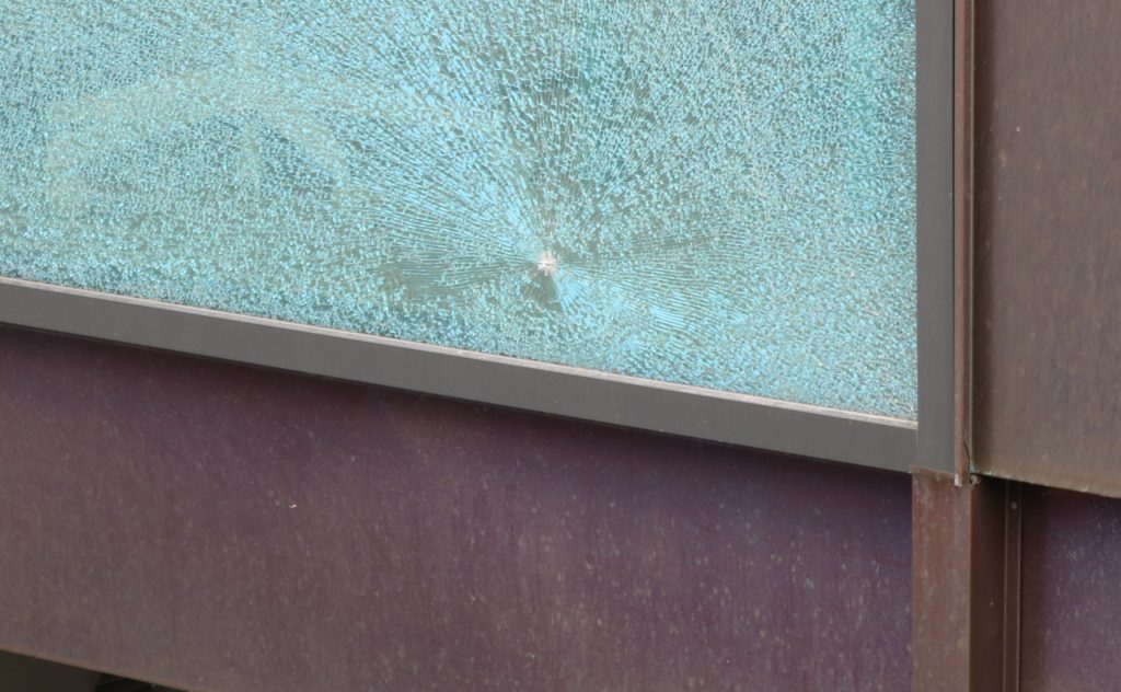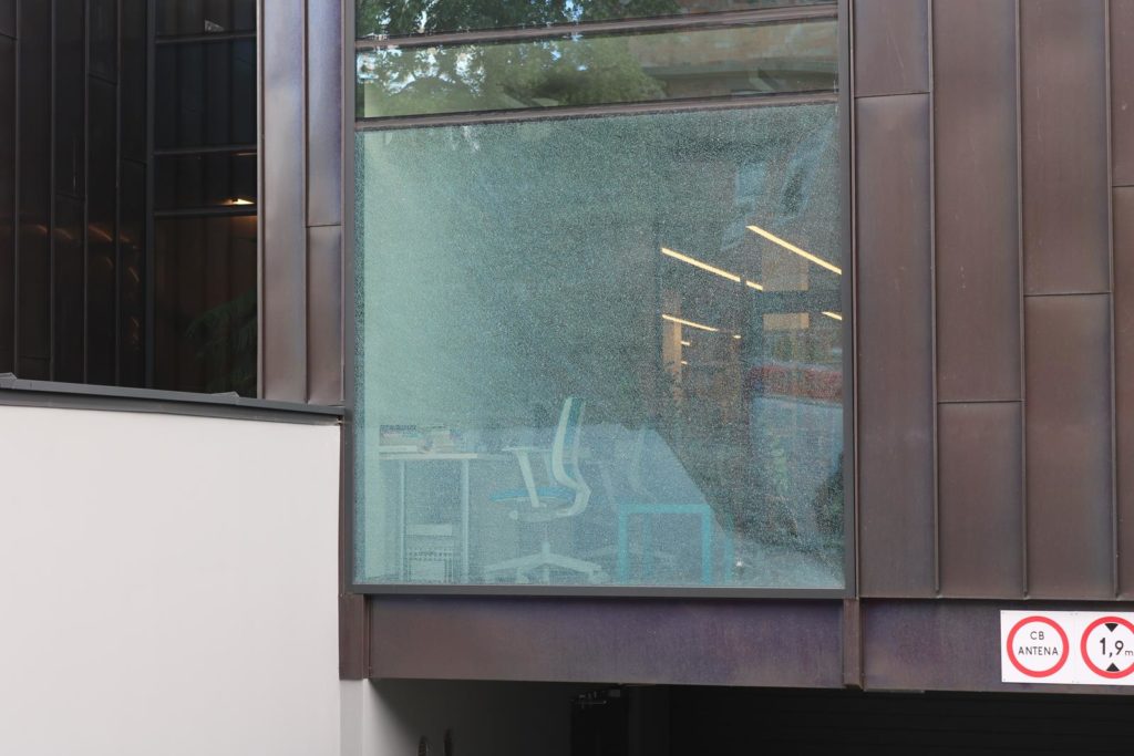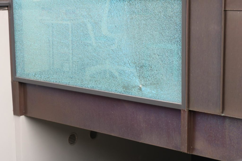 Okno znajduje się tuż nas zjazdem na podziemny parking. Ktoś rzucił kamieniem lub strzelił z wiatrówki. Na miejsce wezwano straż pożarną oraz policję. Po oględzinach i sporządzeniu dokumentacji dla ubezpieczyciela, zdecydowano się usunąć rozbitą szybę. Policja sprawdzi monitoring wokół budynku. Być może widać na nim sprawcę uszkodzenia szyby.