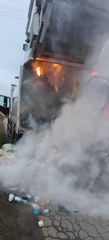 Pamiętajmy, gdzie wyrzucać baterie. Jeden mały błąd mógł doprowadzić do wielkiego pożaru. We wtorek, 23 grudnia 2025 roku, we wsi Krzewiny w gminie Sulejów, doszło do bardzo niebezpiecznej sytuacji. Śmieciarka, która zbierała odpady, nagle zaczęła dymić! Okazało się, że w środku pojazdu zapaliły się plastikowe śmieci. Dlaczego? Bo ktoś wrzucił zużyte baterie do zwykłego kosza.