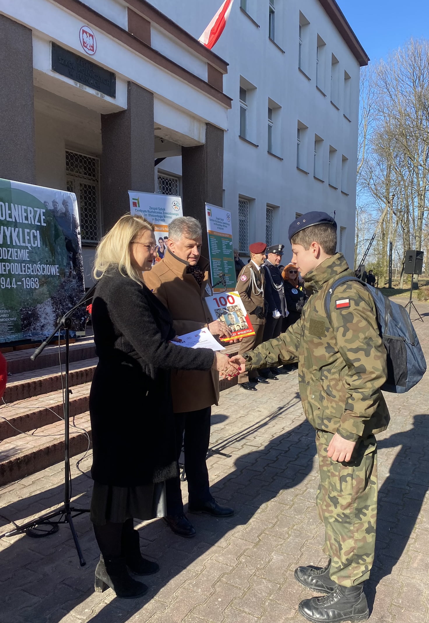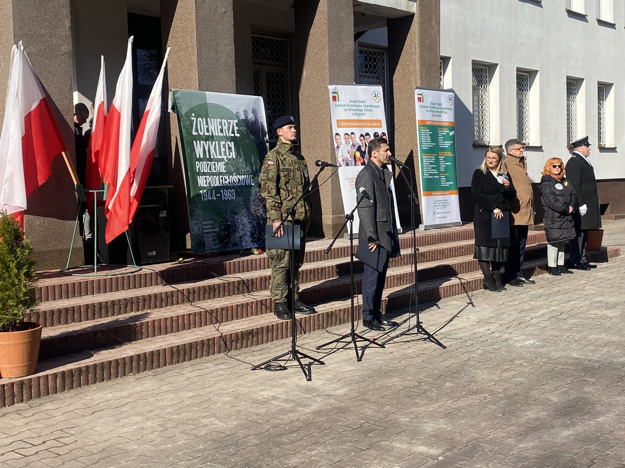 Uroczysty apel w hołdzie Żołnierzom Niezłomnym prowadził uczeń klasy I Oddziału Przygotowania Wojskowego Oliwier Wiernicki.Nikola Drozdek z klasy I OPW i Kacper Łągwa z klasy III LOW przedstawili rys historyczny związany z Narodowym Dniem Pamięci Żołnierzy Wyklętych oraz zaprezentowali postaci najbardziej znanych i zasłużonych bohaterów podziemia niepodległościowego. Apel Pamięci ku czci Poległych poprowadził Karol Spadło – również uczeń klasy I OPW.