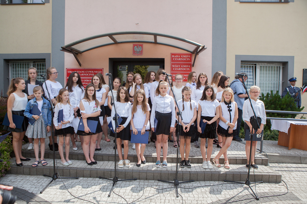Uroczyści rozpoczęły się mszą w intencji Ojczyzny. Następnie odsłonięto tablicę pamięci pułkownika Janusza Jagryma-Maleszewskiego. Znajduje się ona na ścianie urzędu gminy. Miejsce wybrano nieprzypadkowo, bowiem mieścił się tam kiedyś posterunek policji. Po głównych uroczystościach policjanci zaprosili najmłodszych mieszkańców gminy na „Piknik – mundurowi dzieciom”, który odbywa się na terenie ZSP CKU. W programie między innymi pokaz ratownictwa drogowego, prezentacja wyposażenia policjantów strażaków i żołnierzy, pokazy mundurowych grup rekonstrukcyjnych, a także dmuchane zamki i zjeżdżalnie.