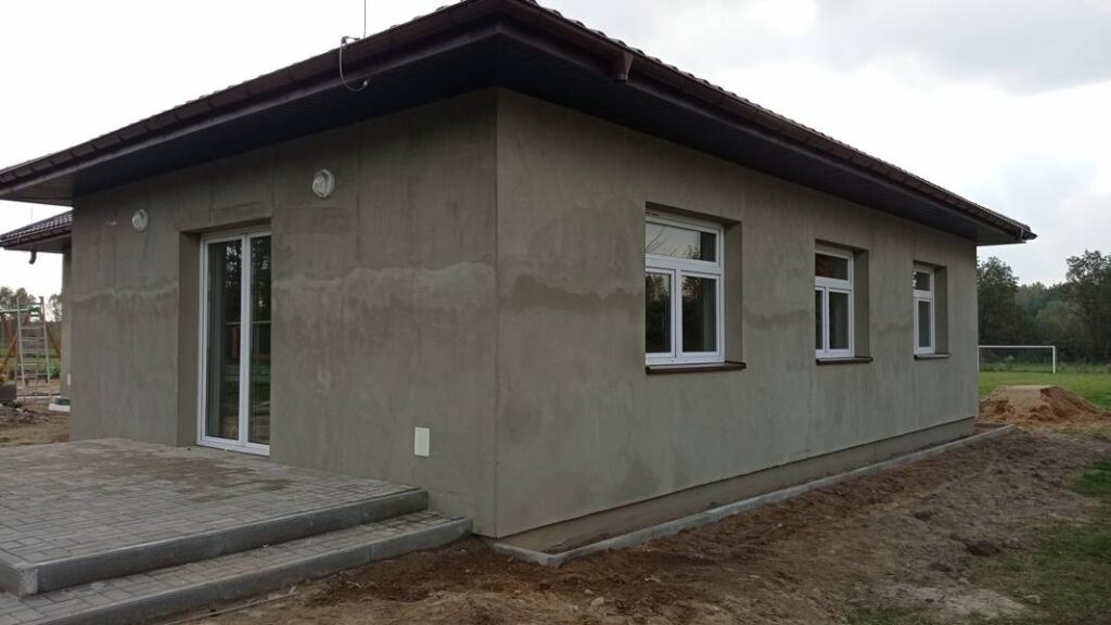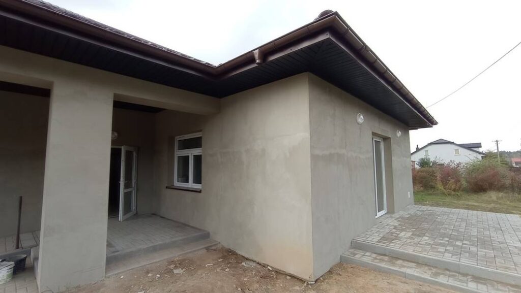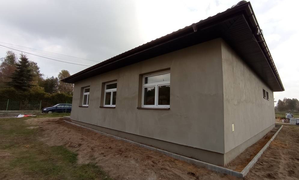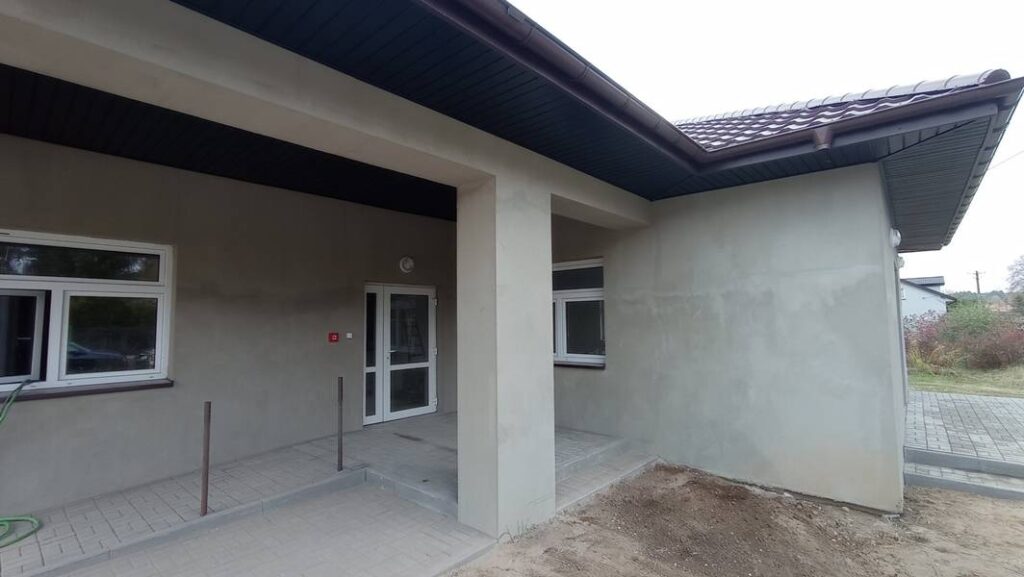 Trwają zaawansowane prace przy budowie budynku świetlicy wiejskiej w Grabostowie w gminie Gorzkowice. W ramach robót aktualnie wykonywana jest między innymi podbitka, opaska wokół budynku oraz wykończenie łazienek i kuchni.