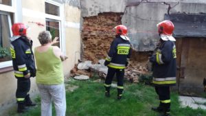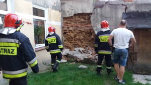 Do zdarzenia doszło w poniedziałek wczesnym wieczorem. – Siedziałam w fotelu, oglądałam telewizję i usłyszałam, że na podwórku coś runęło. Wyjrzałam przez okno i zobaczyłam, że nie ma kawałka ściany – mówi roztrzęsiona mieszkanka kamienicy na Starówce.