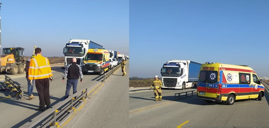Do tego zdarzenia doszło w poniedziałek około 9:40. Karetka jadąca autostradą A1 od strony Piotrkowa w kierunku Katowic, przewoziła noworodka w stanie zagrożenia życia. Ambulans utknął w korku na wysokości Parzniewic. Ratownicy medyczni poprosili o pomoc służby mundurowe. Na miejsce udali się strażacy z OSP KSRG Parzniewice. Druhowie w miarę sprawnie dotarli na miejsce, rozmontowali stalowe bariery oddzielające jezdnie i tym samym karetka wydostała się z zatoru. Medycy wraz z noworodkiem, bezpiecznie pojechali w dalszą drogę.