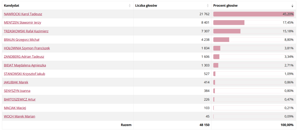 Poznaliśmy oficjalne wyniki wyborów ze 100% obwodowych komisji wyborczych w kraju. Jak głosowali mieszkańcy regionu? W Łódzkiem zwyciężył Karol Nawrocki, zdobywając 32,17% głosów. Na Rafała Trzaskowskiego zagłosowało 30,27% mieszkańców WŁ. W Piotrkowie wygrał z kolei Rafał Trzaskowski, ale za to w powiecie piotrkowskim zdecydowanie wygrał kandydat Prawa i Sprawiedliwości.