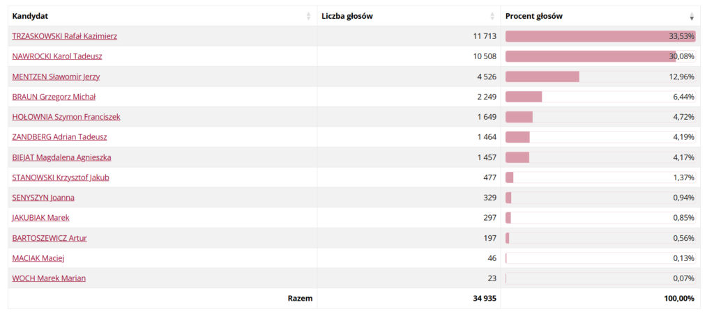 Frekwencja: 68,37%. Liczba kart ważnych: 48 388, liczba uprawnionych do głosowania: 70 774.