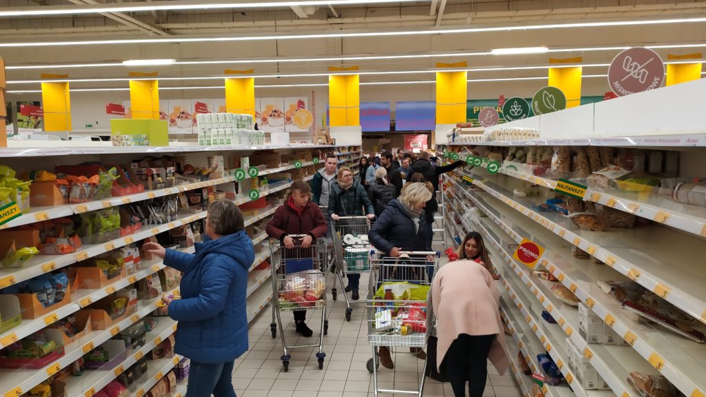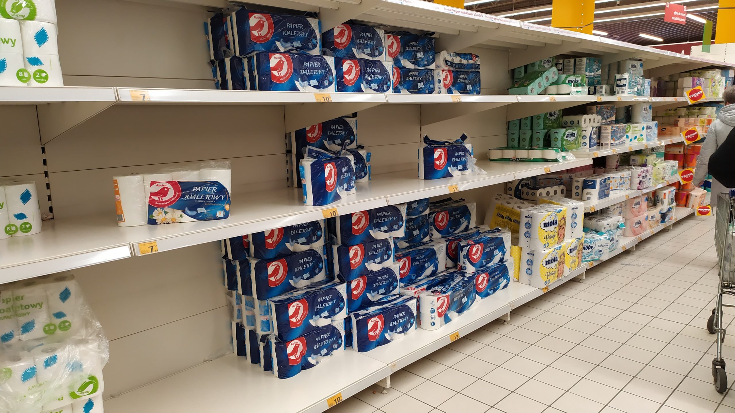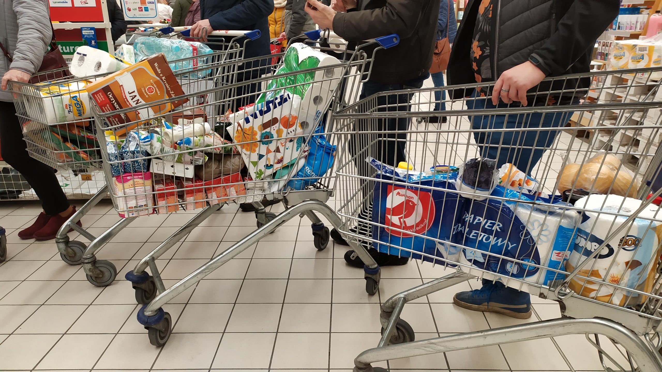 Wystarczyło, że rząd ogłosił zamkniecie szkół a ludzie zaczęli szturmować sklepy. Koszyki i wózki sklepowe wypełnione są po brzegi. Na niektórych parkingach brakuje miejsc, a kolejki do kas przypominają te sprzed Bożego Narodzenia.