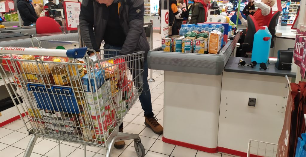 – Moje zakupy nie maja nic wspólnego z koronawirusem. Po prostu zrobił mi się długi weekend i dlatego kupuję aż tyle – mówi mężczyzna w koszyku którego było kilka kostek masła, kilka opakować przecieru pomidorowego i kilka paczek środków higienicznych. – Robię takie zakupy, ponieważ było ogłoszenie w telewizji o co najmniej dwutygodniowej kwarantannie w związku z tym wirusem. W koszyku mamy miód, płatki kukurydziane, mąka. Wszystko co potrzebne żeby przetrwać – mówi starsza pani.