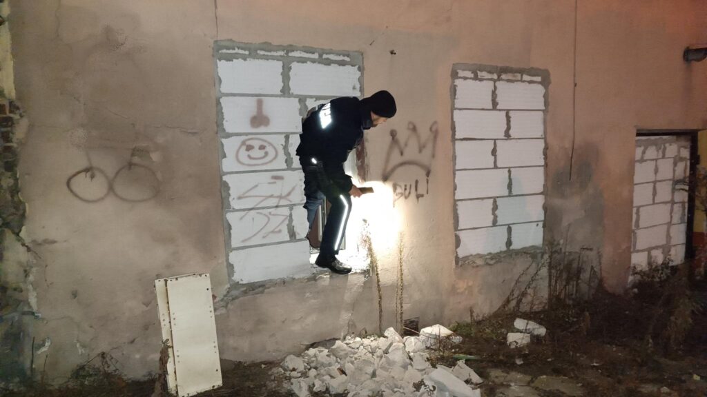 Minionej nocy towarzyszyliśmy patrolowi złożonemu z policjantów i pracowników socjalnych Miejskiego Ośrodka Pomocy Rodzinie. Umawiamy się na wieczór. Około godziny 20 patrolujemy okolice ulicy Okrzei, Mireckiego, 1 Maja. Sprawdzamy pierwszą kamienicę. Latem tam był pożar który zaprószyli prawdopodobnie bezdomni. – Prowadzimy dziś wspólny patrol z pracownikami Miejskiego Ośrodka Pomocy Rodzinie. Sprawdzamy pustostany, czyli przede wszystkim te miejsca te gdzie osoby bezdomne szukają schronienia przed niskim temperaturami. Pierwsza kamienica i pierwsze trafienie. Natrafiliśmy na miejsce w którym przebywają bezdomni. Świadczyć może o tym przygotowane do spania łózko i rzeczy osobiste. Nie ma tu jednak nikogo. Jest dopiero około godziny 21. dlatego podejrzewamy, że osoby te jeszcze przebywają w miejscach cieplejszych, czyli sklepy, galeria handlowe czy poczekalnia dworca – mówi w rozmowie z nami asp. sztab. Izabela Gajewska z KMP w Piotrkowie.