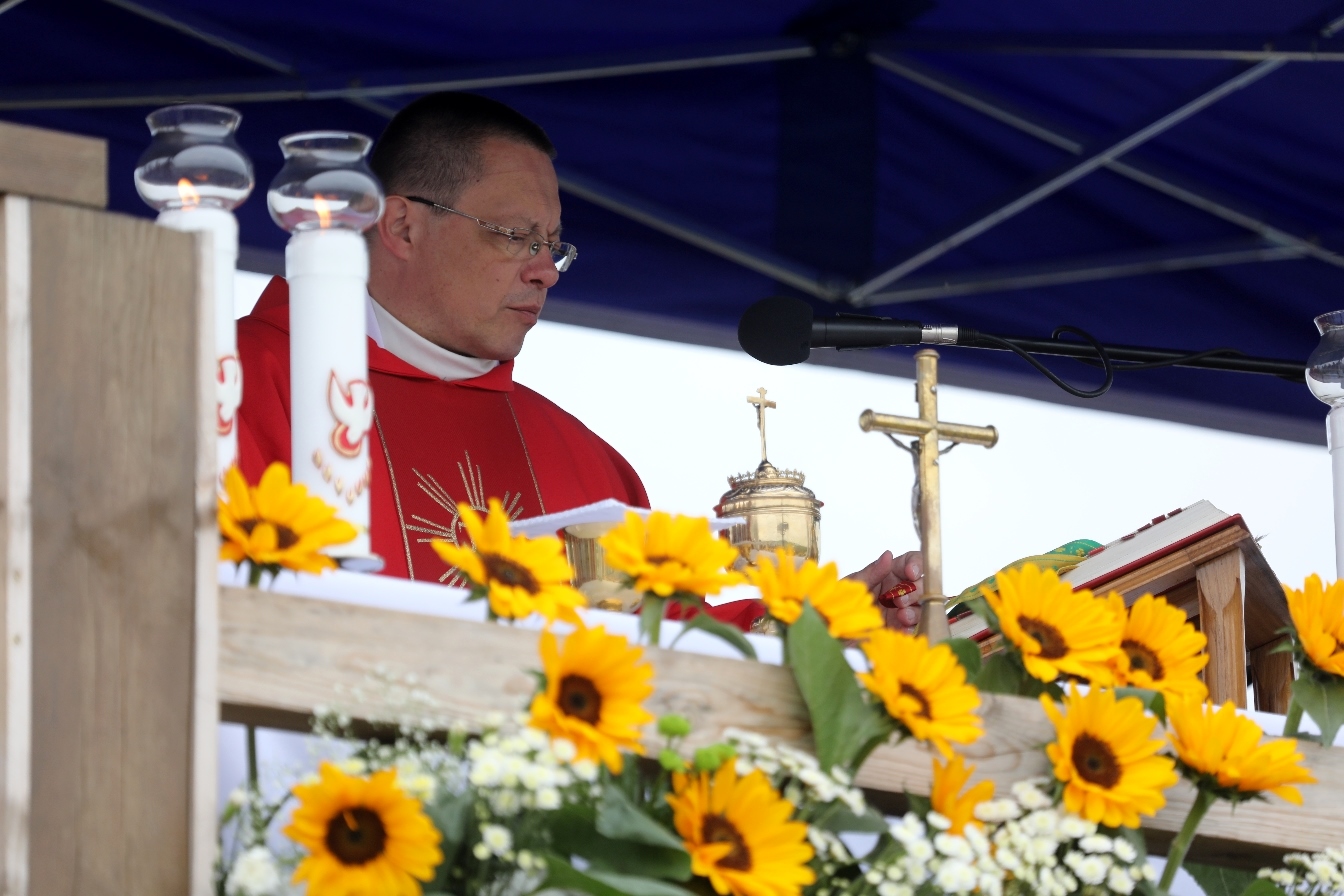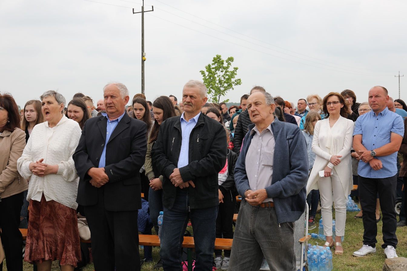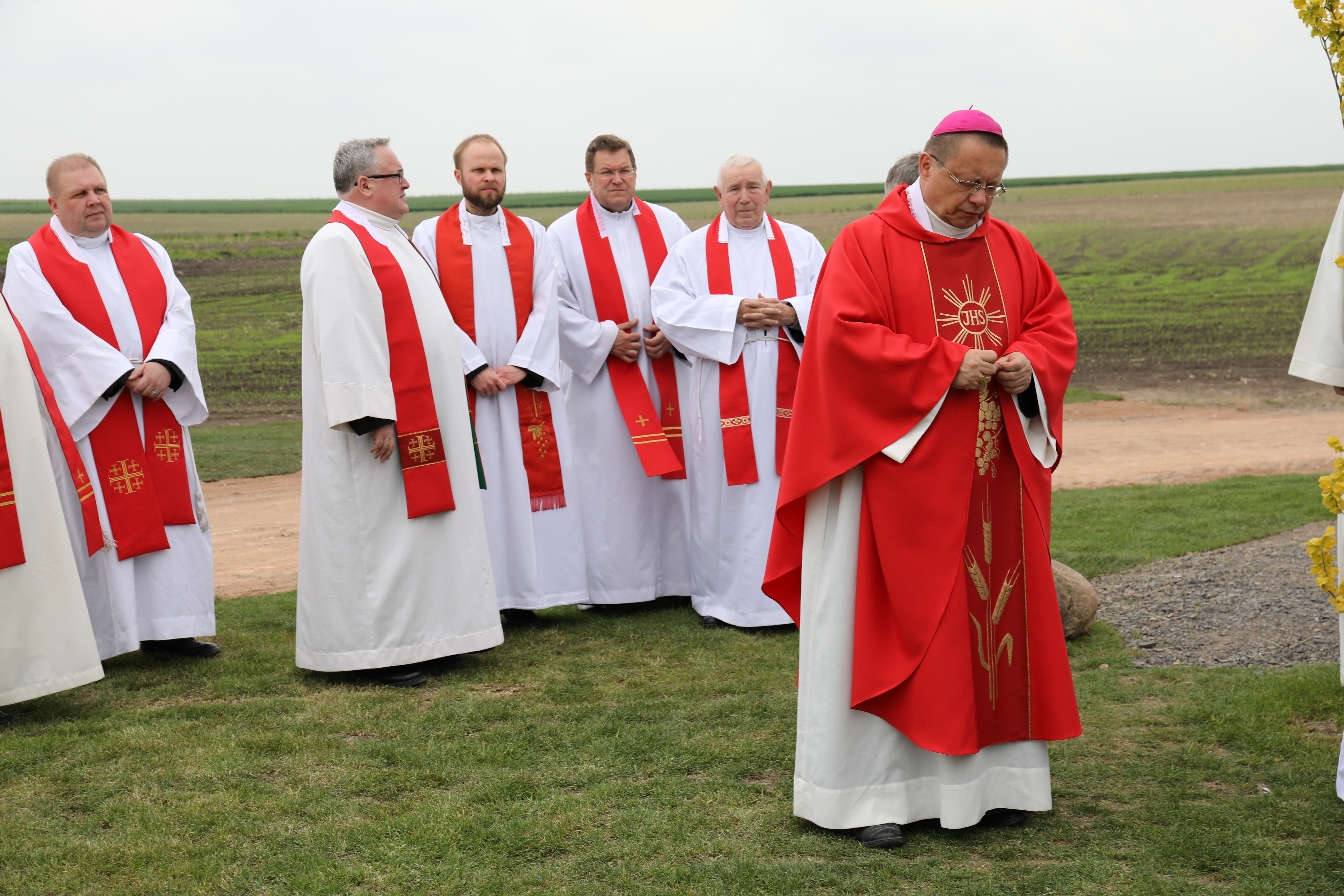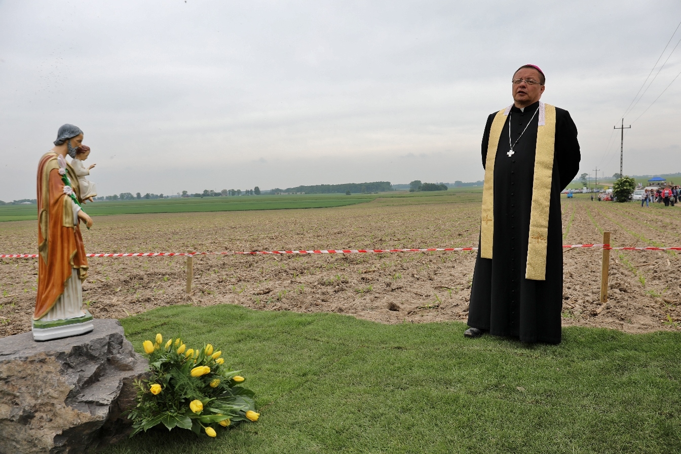 Poświęcenie zostało poprzedzone Mszą świętą sprawowaną na ołtarzu polowym usytuowanym w pobliżu pola, na którym w niedługim czasie rozpocznie się budowa. Podczas homilii metropolita łódzki zachęcił zebranych na uroczystości. – Trzeba się modlić już dzisiaj za tych ludzi, którzy będą tutaj przybywać. Trzeba nam modlić się za każdego z tych czterdziestu na raz, bo takie są pomysły, żeby każdy z tych, którzy tu przyjadą, odkrywał w sobie godność dziecka Bożego. Co oznacza, że będzie w Bogu odkrywał swojego Ojca – podkreślił arcybiskup.